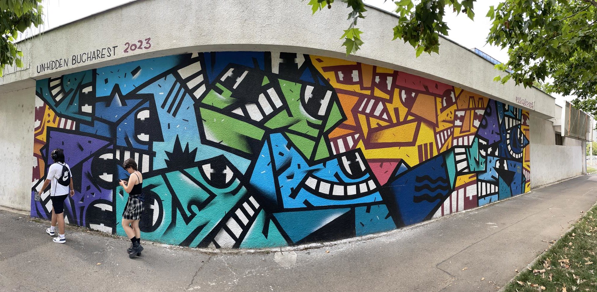 This artwork is part of an urban art series from the great culture project UN-HIDDEN ROMANIA. Have a look on their website, they highlight history, culture, art, old memories and actual happenings from Romania. A part of the project inculdes of course also the urban arts, and meanwhile several cool murals on the Bukarest streets have been created. At the same time, musicians created soundtracks for the respective murals. This here is number #3. The mural was made by PISICA P?TRAT? with a musical interpretation by VLAD CAIA. Check out as well the other artworks of MISTER THOMS and DELIA CÎRSTEA. Meanwhile there are four artworks next to each other on a long wall at the north side of the Universitatea de ?tiin?e Agronomice ?i Medicin? Veterinar?, or in English the University of Agronomic Sciences and Veterinary Medicine. We don’t have photos of the first artwork from this series, as well nearly no material from Bukarest at all (yet). If you want to contribute to this city map, just write us to info@vagabundler.com.