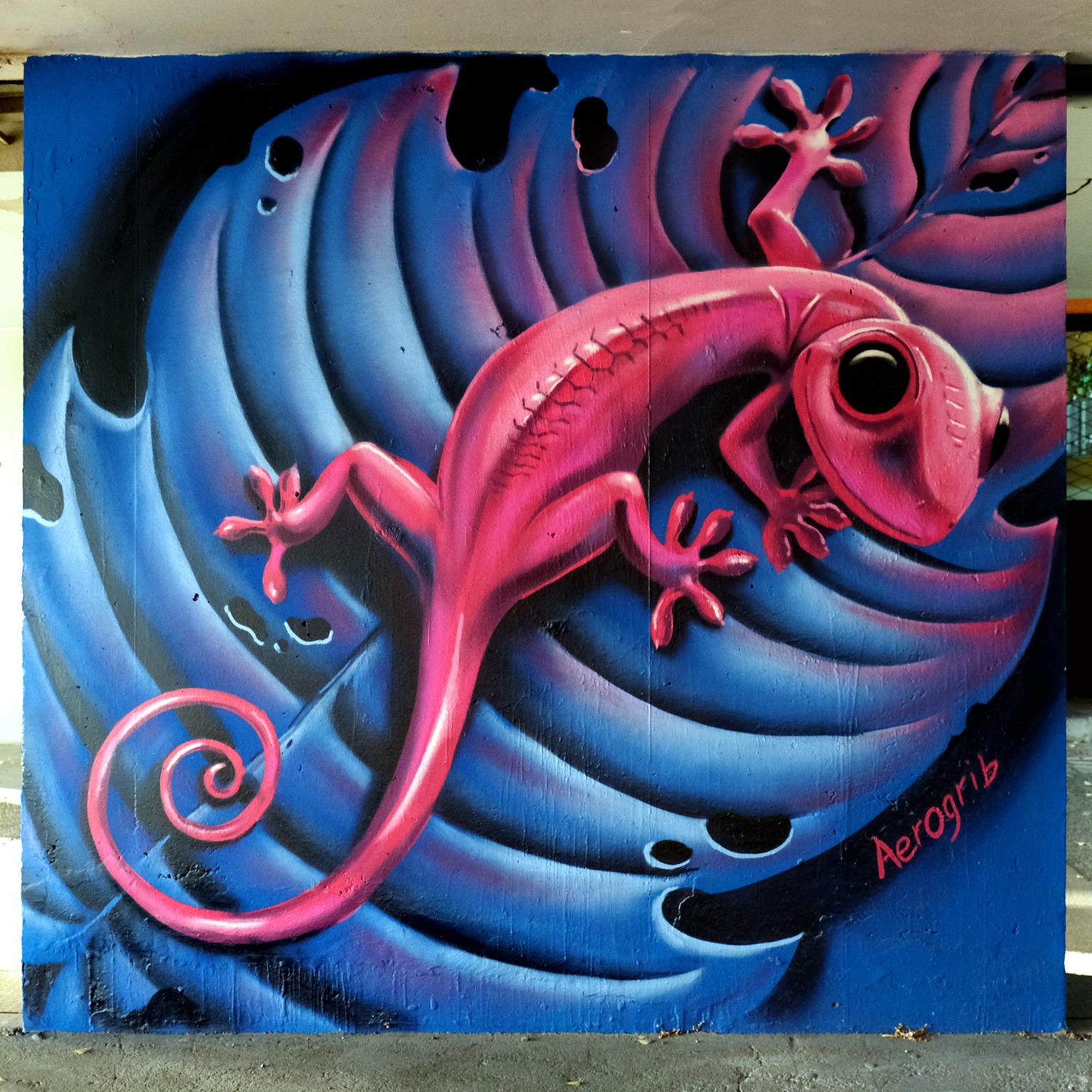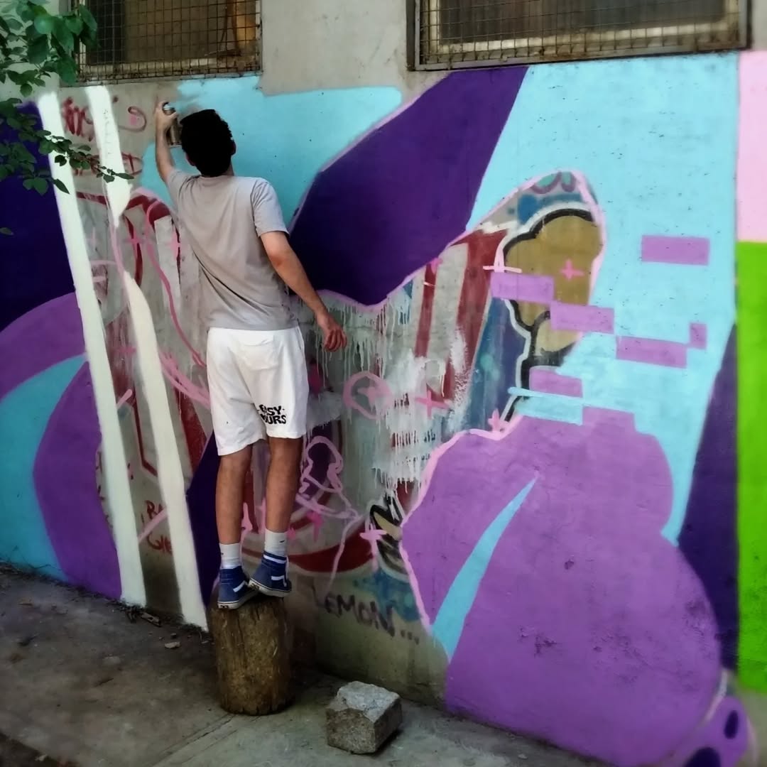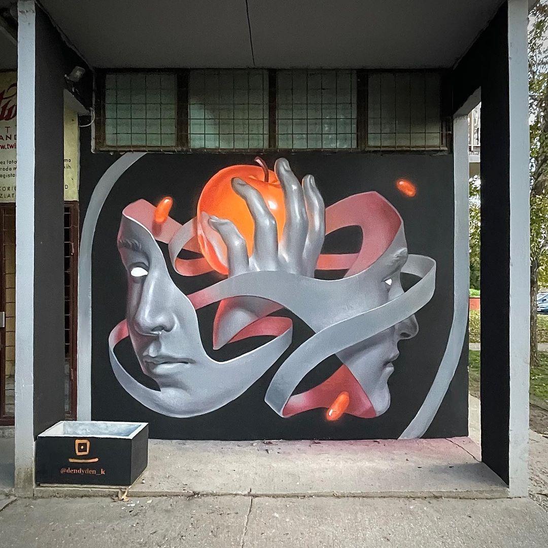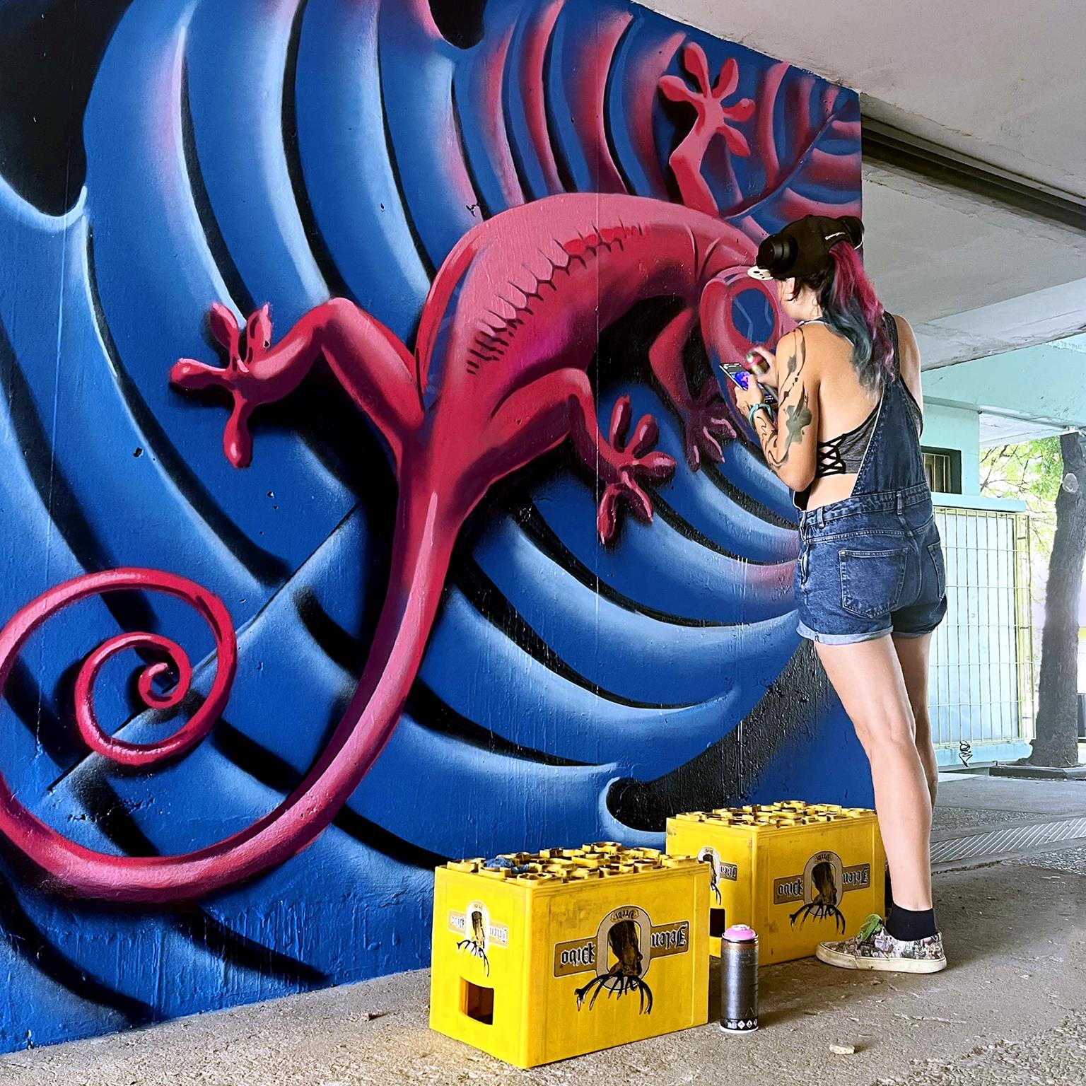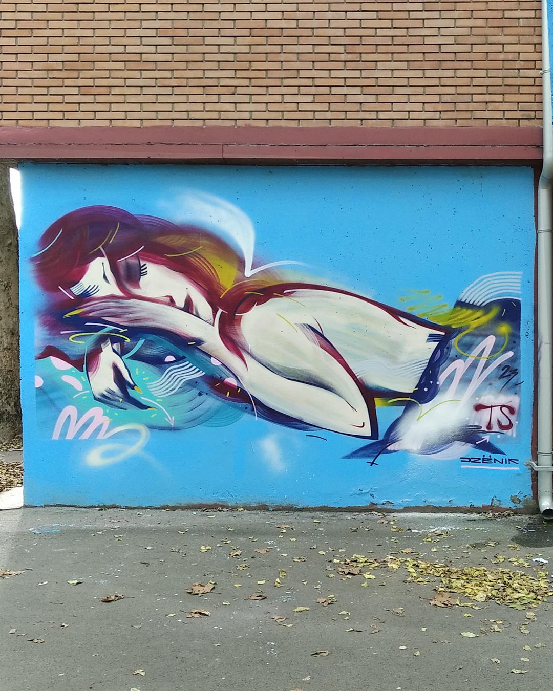Maria came with her family to live in Novi Sad in 2024, and this piece in Avijaticarska Gallery is the first one that she painted in our city. Besides streetart, she makes dolls, and does tattoos as AEROGRIB – Avijaticarska Gallery