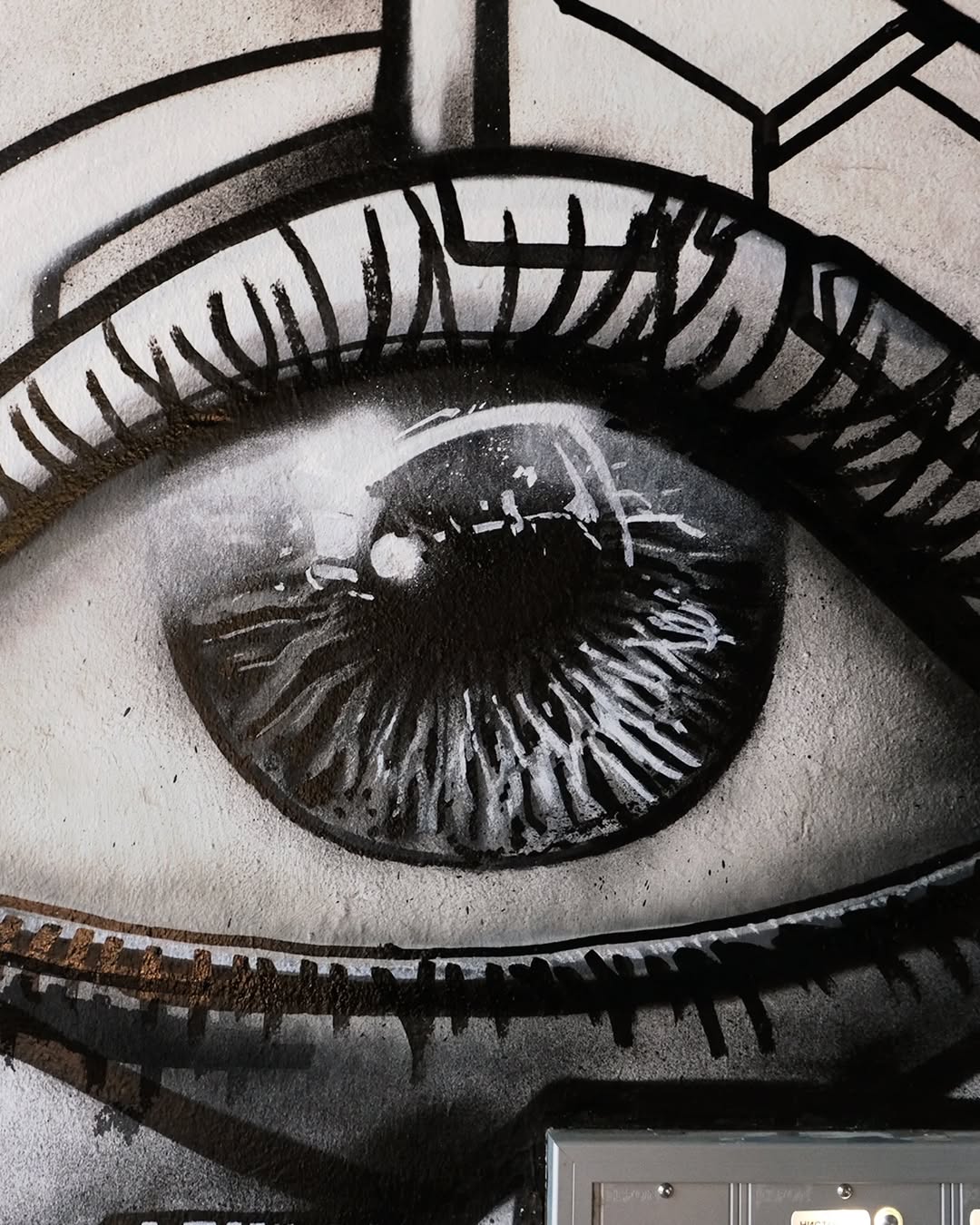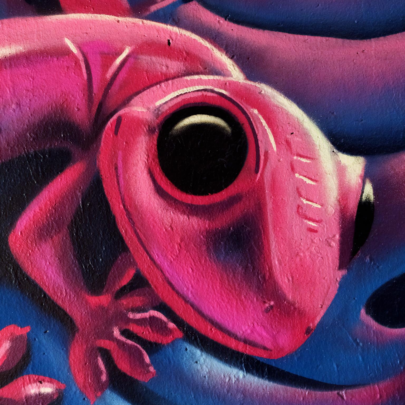 Space organizer and artist SHPIRA about the urban art gallery: „We do graffiti there since 1998 and during the years we painted all of these buildings, but back then we were doing bombings and tagging. But after some time we also started doing pieces and good graffiti. My first 3d pieces were here. Many years later, I stood at these walls and there’s the whole space. And I had some ideas for an urban art gallery. So we started painting the first walls, and then some other neighbours just asked me: Can you do this as well on our building? So at first there was one building. Then two buildings, three buildings, four buildings, and it kept on going. More and more neighbours asked, hey, can you do it also on ours? So it’s cool and really nice. Now we have filled seven buildings and number eight is in negotiations.“ – From the interview with SHPIRA