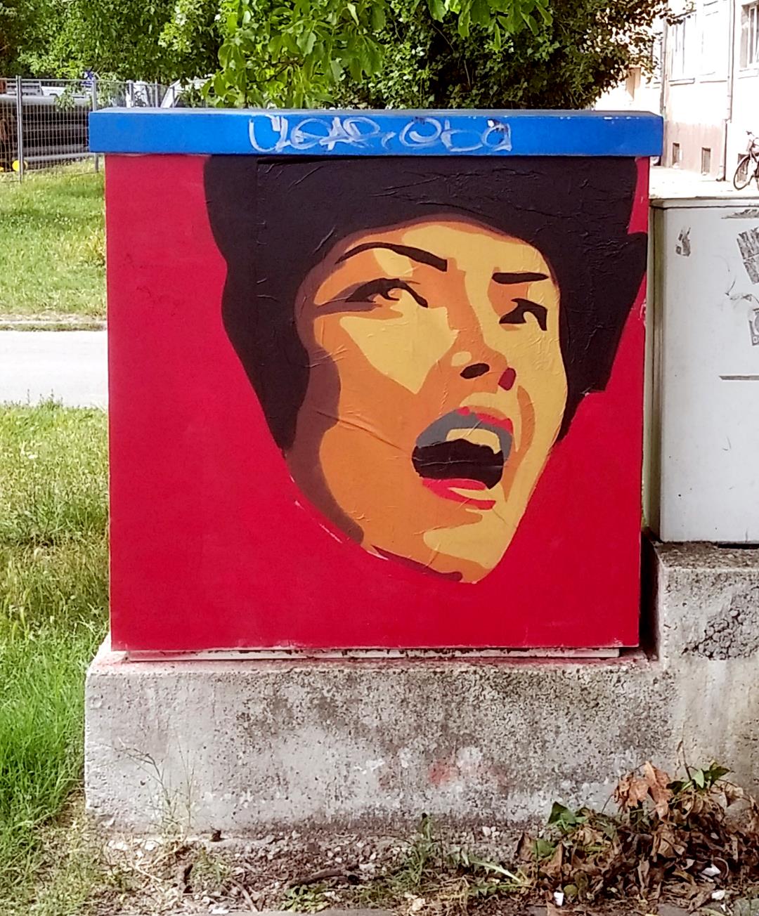 Last summer, we managed to catch some of KRALIJCA VILA’s artworks, better known as TKV. That was after she did a beautiful mural for Dobro Drvo in our neigbourhood. She also posted a few posters and did a stencil in our gallery. Thank you very much! – Avijaticarska Gallery