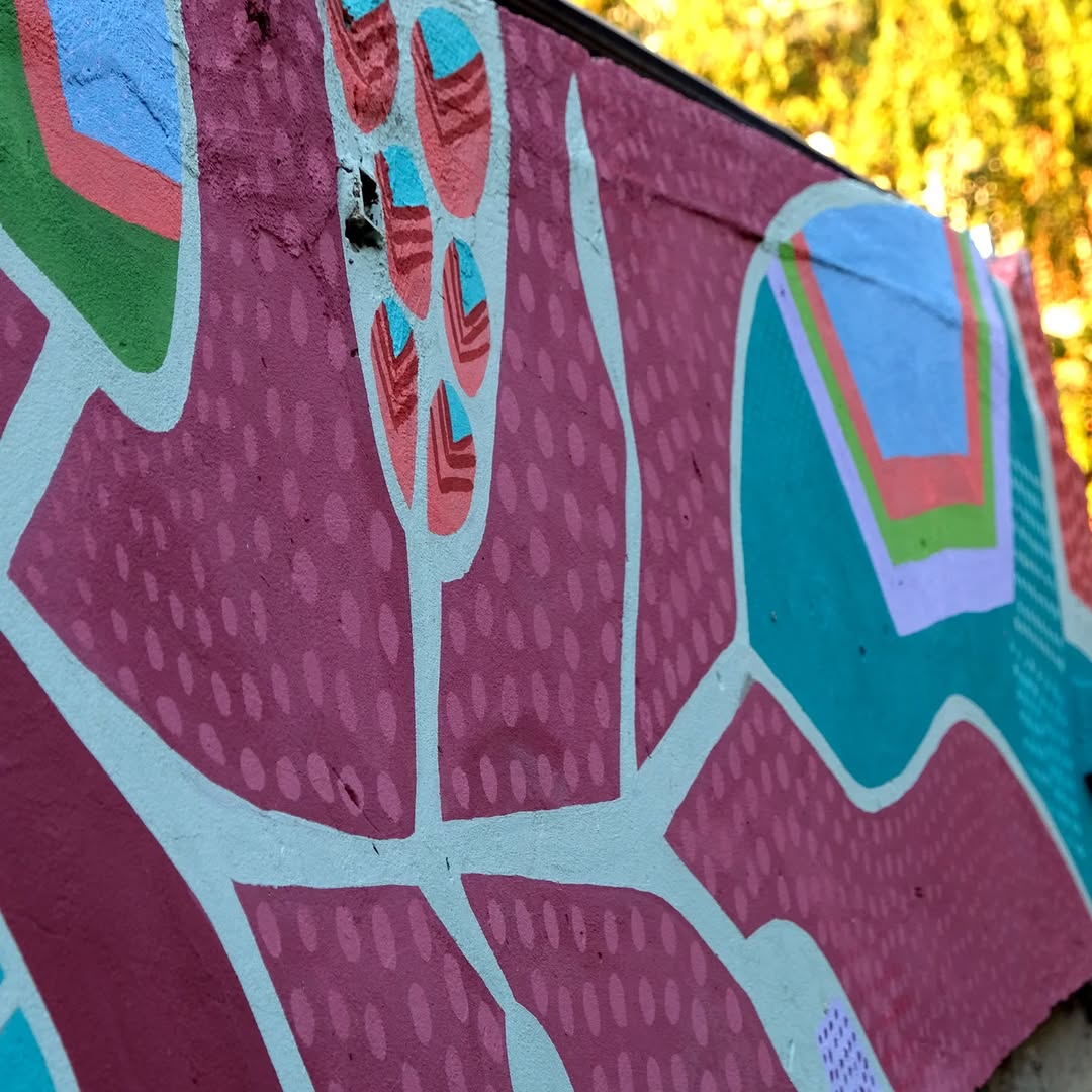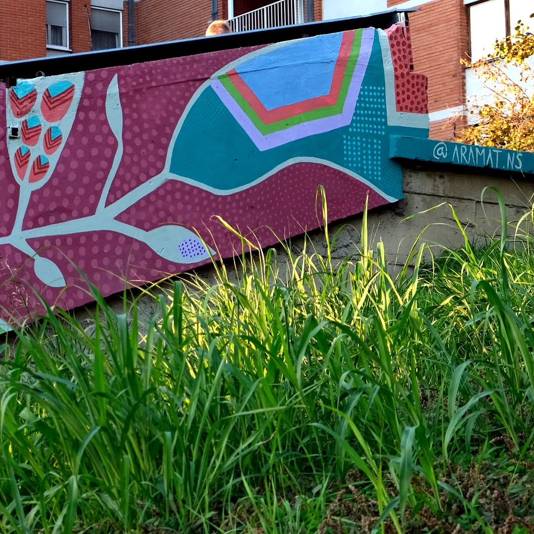 ARAMAT TAMARA is mostly engaged in painting scarves, batik technique, as well as acrylic painting on canvases and wood. She likes to experiment with techniques, and since she doesn’t do murals that often, this was the perfect opportunity to paint a wall at our gallery. – Avijaticarska Gallery