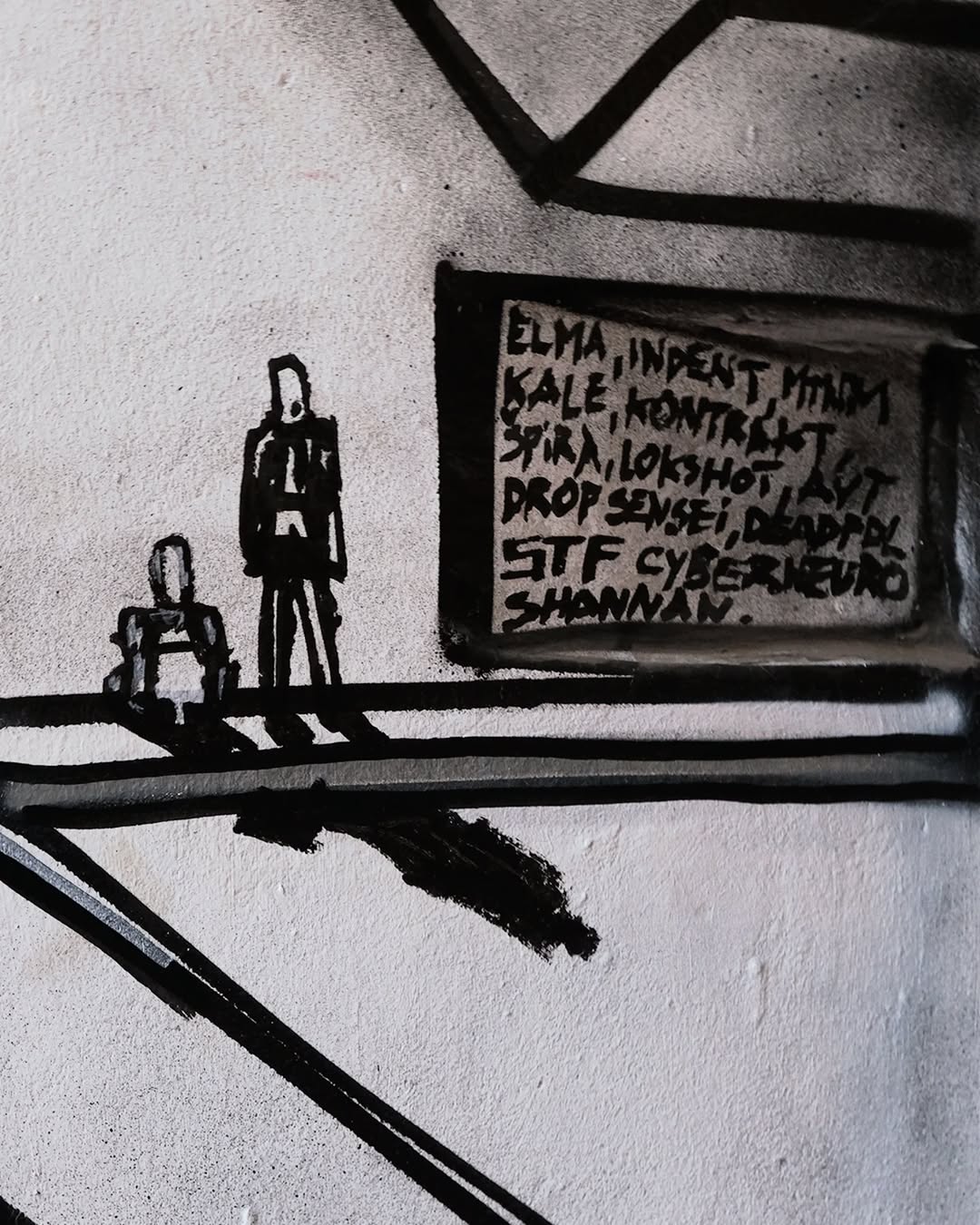 „Me and few of my friends from my street / primary school / secondary school started to paint around 1999 and 2000, and created „STF CREW“, which means „SAVE THE FUTURE CREW“. So we started to actively participate in that subculture. From learning the basics of graffiti, up to some new forms that I am trying to transcend by combining cybernetic and 3D forms, that stayed as a part of me up to this day.“ – SHPIRA