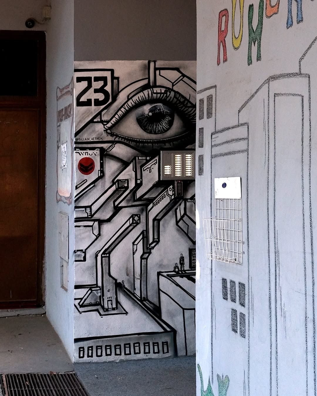 The fantastic AVIJATICARSKA GALERIJA is a growing urban art gallery in the neighbourhood around Rumenacki Put 25. It started with one building, but after the great results, the residents of the other buildings around also wanted such murals. The creative initiator of this project SHPIRA developed this idea and involved more and more artists and also residents, meanwhile the whole project includes eight large apartment blocks now covered with beautiful wall paintings in many different styles. Before they were grey and boring, now it is like an art gallery. And a lot more buildings are under discussion, the project is growing and when you see what is happening there, you understand how art can change a place. Check out the great artworks from this place in the following!