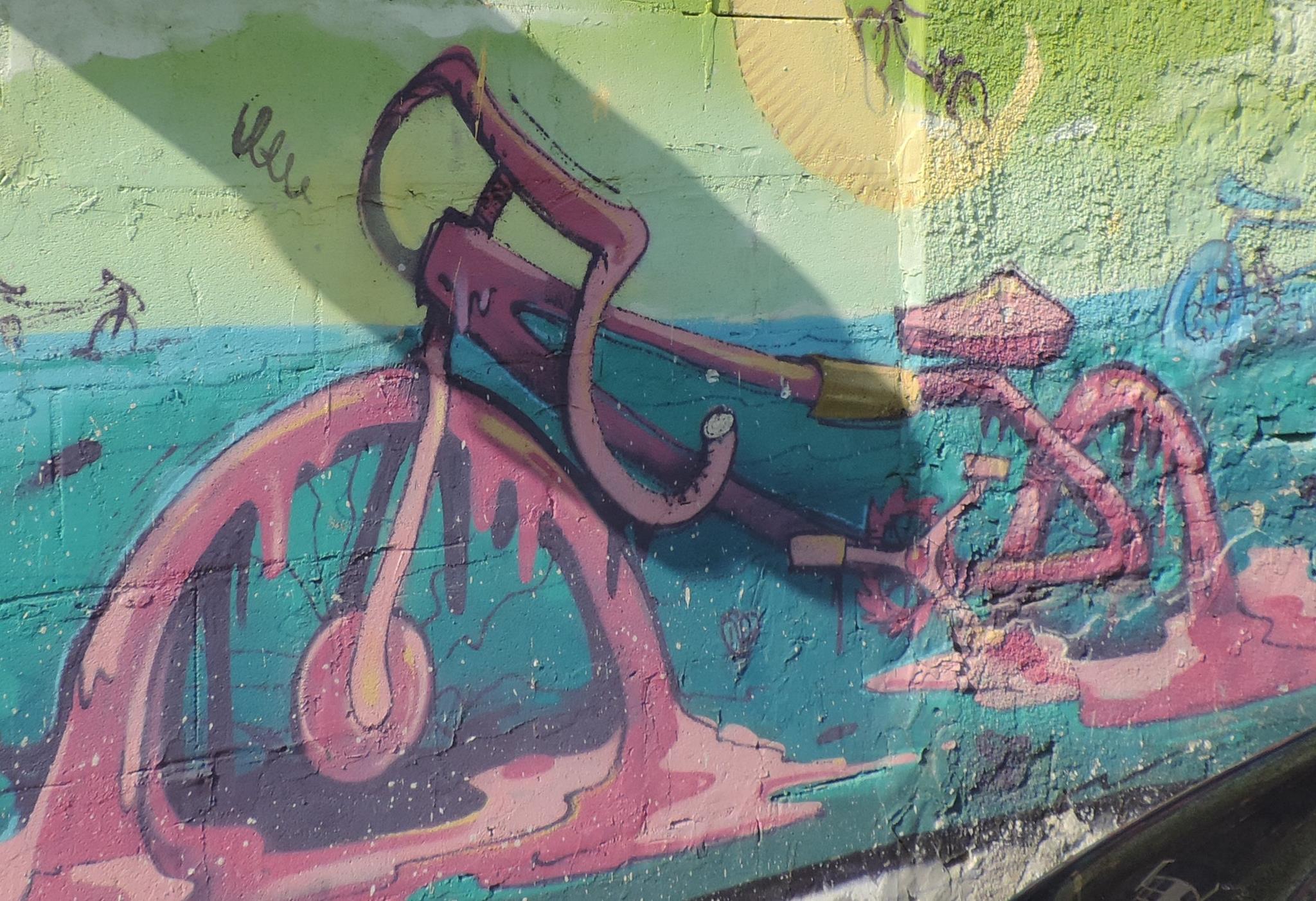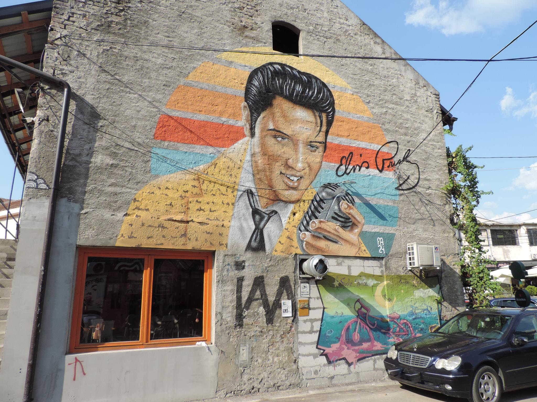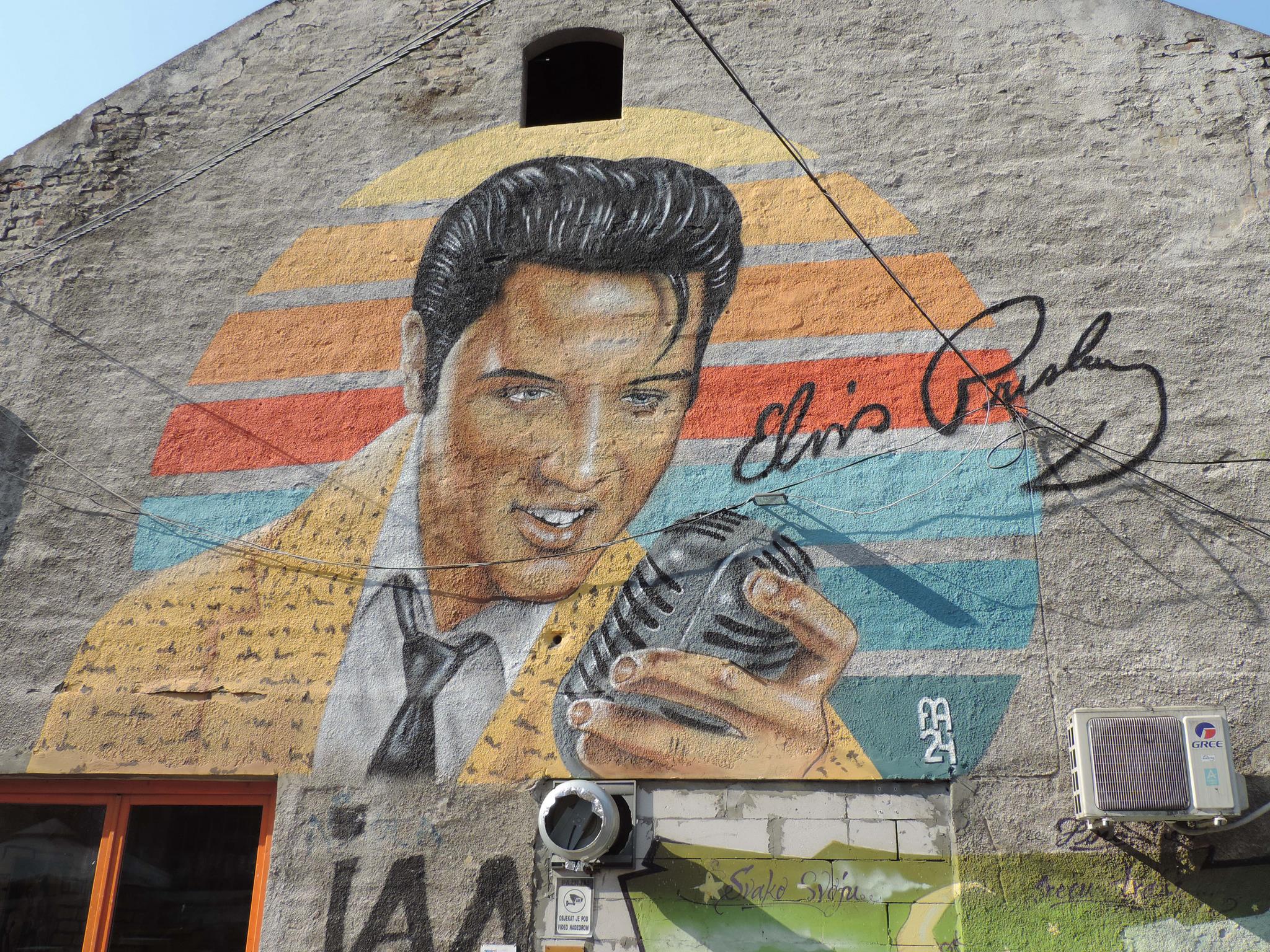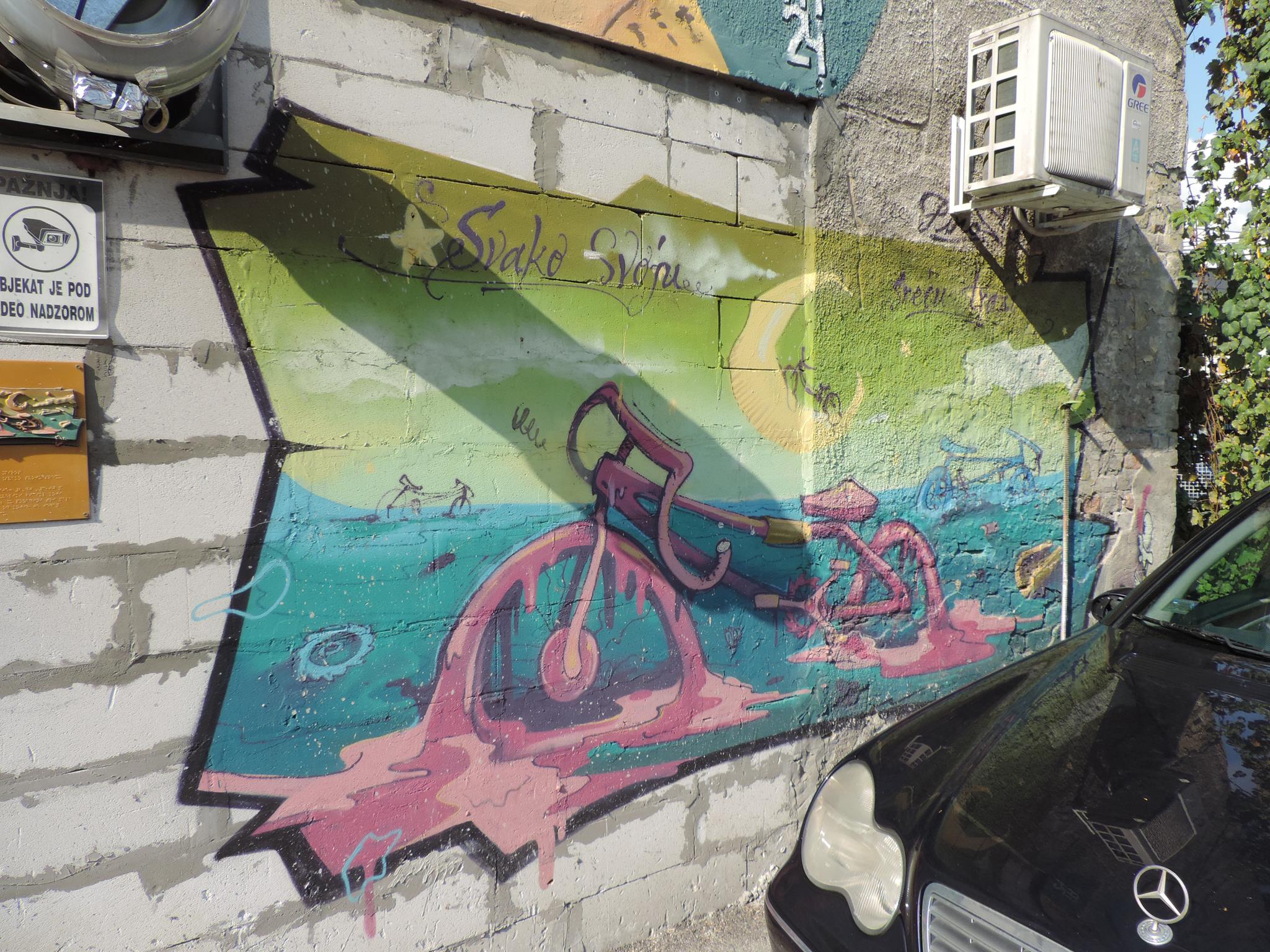 We don’t know who created the Elvis Presley mural, a beautiful tribute to the legendary King of Rock ’n‘ Roll. But the bicycle work below is definitely by PIROS. Next to it is also a 3D miniature model from the STREET ART BELGRADE project series. If you know more about the creator of Elvis, then write us to info@vagabundler.com. Also take a look at the countless other artworks via the main page to the old brewery.