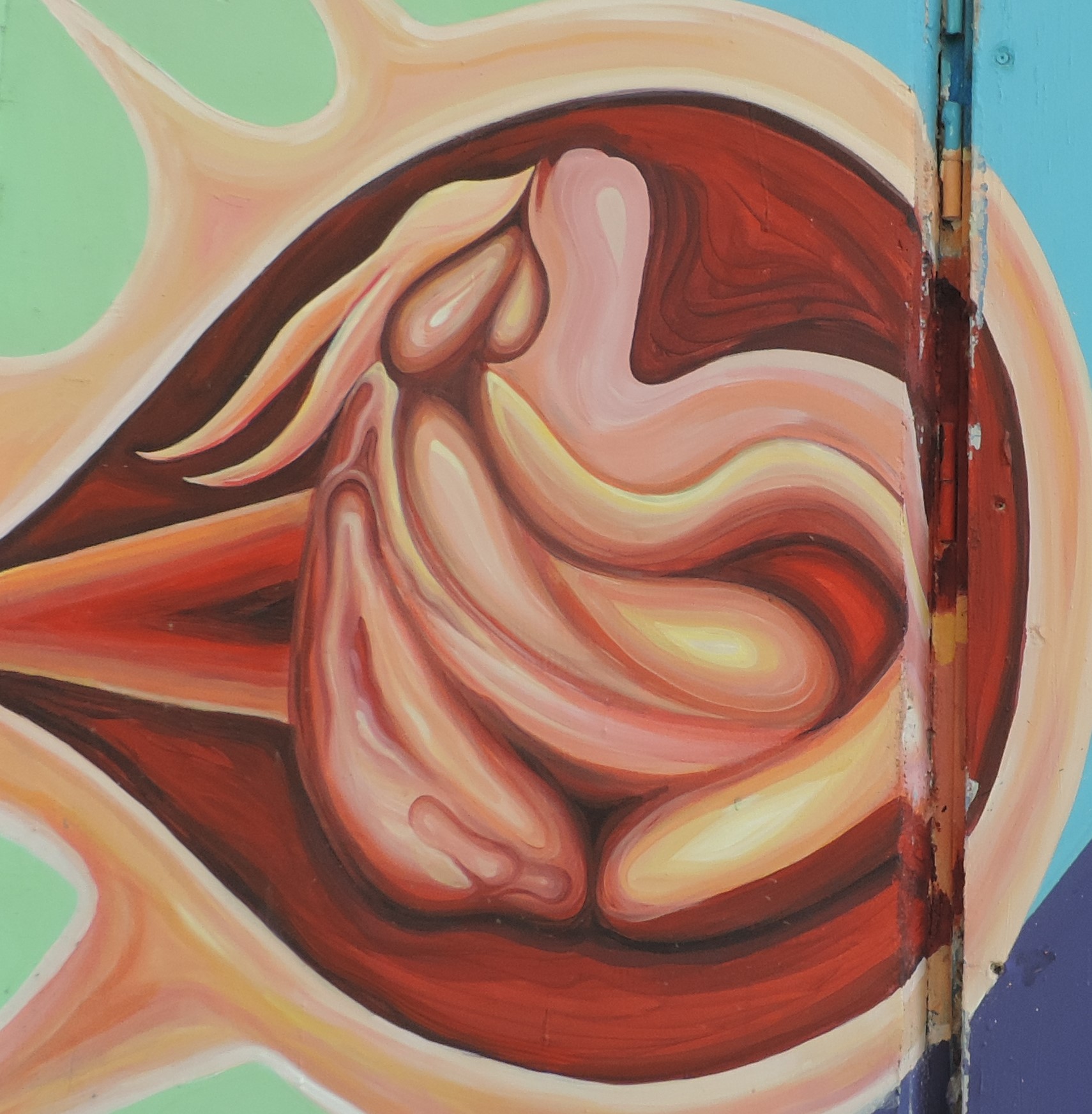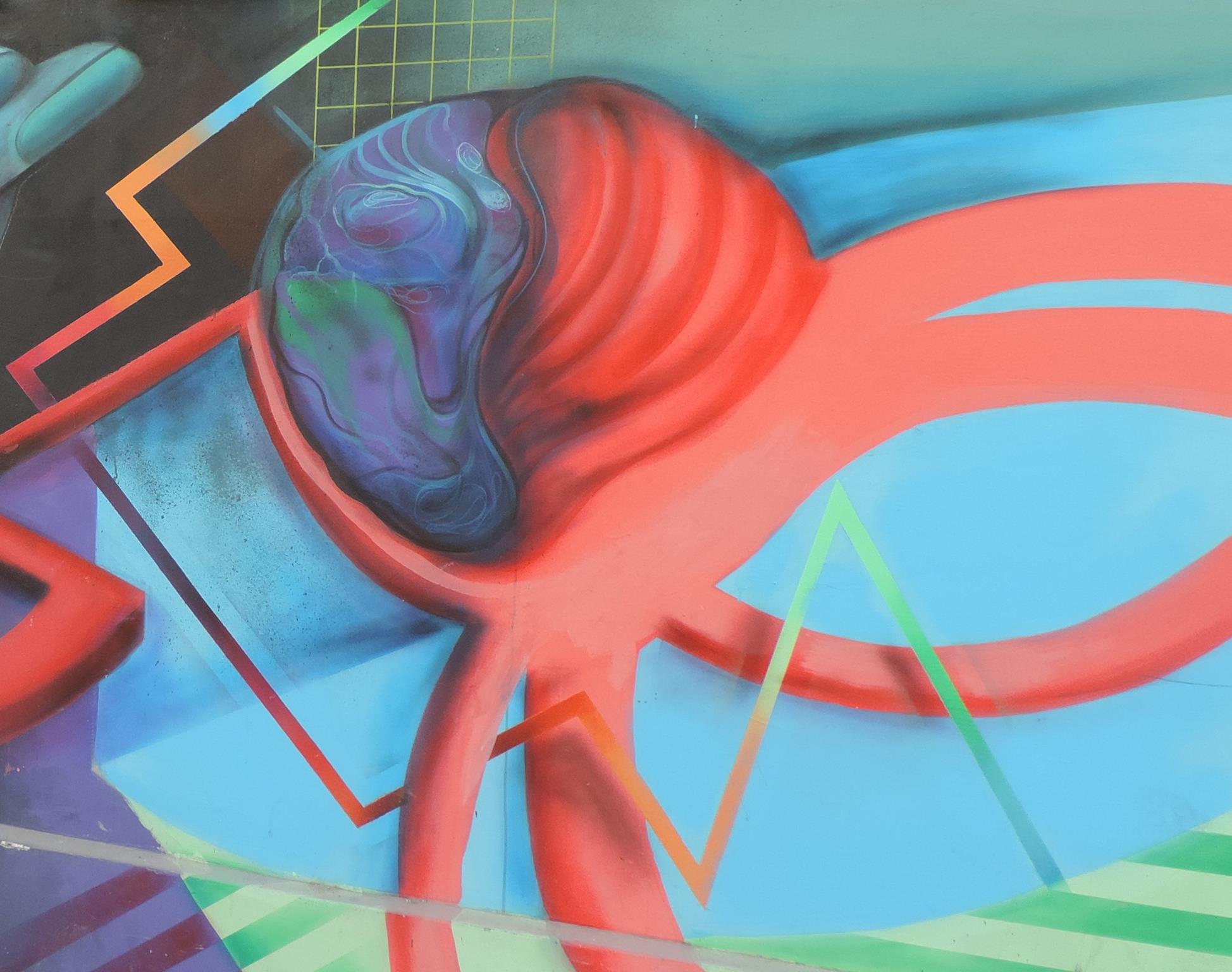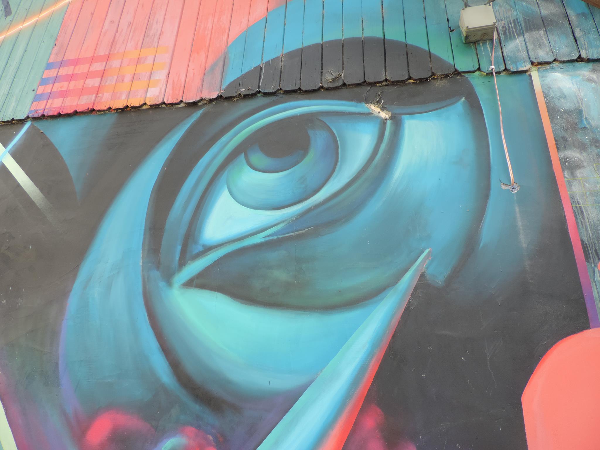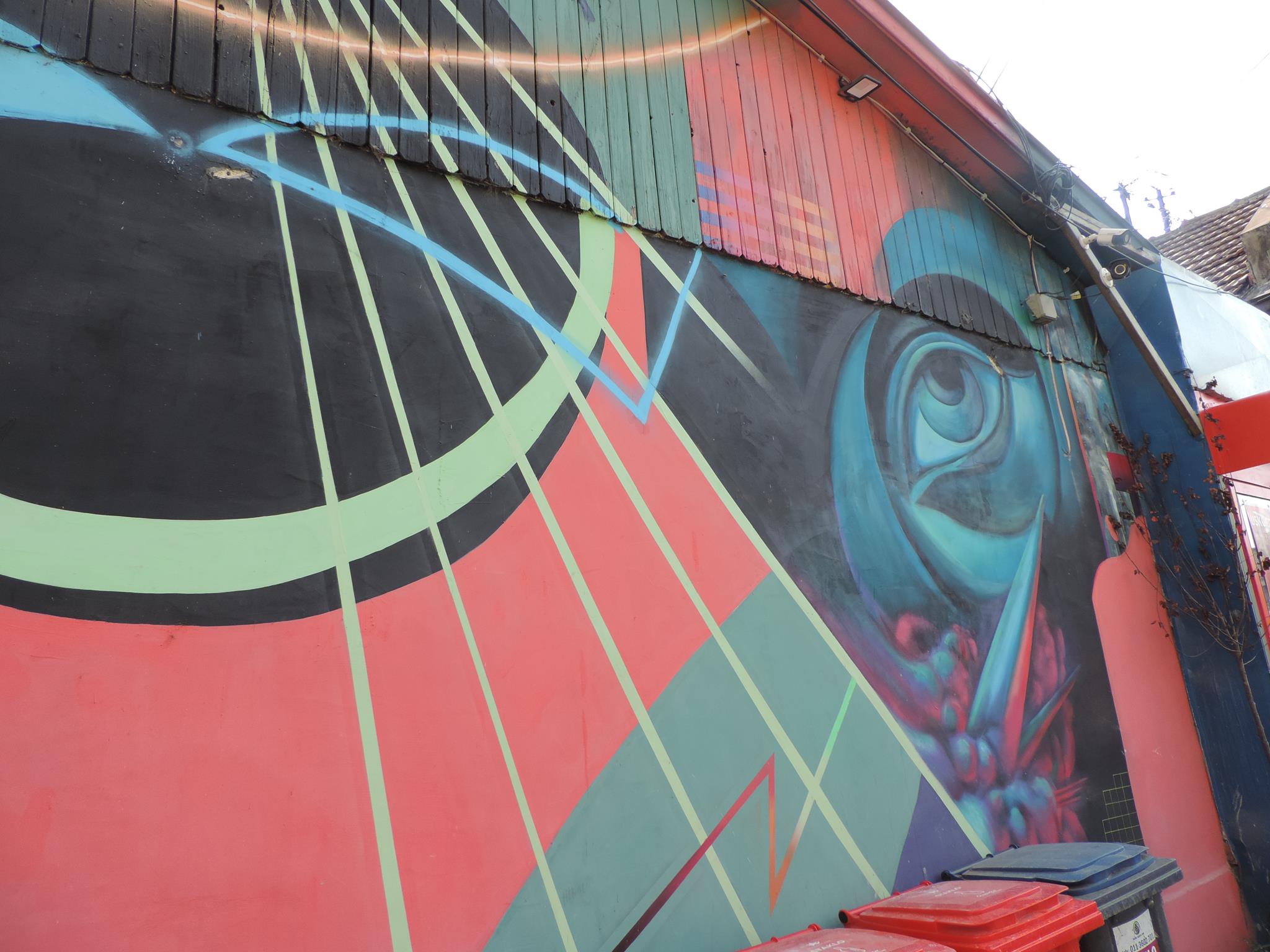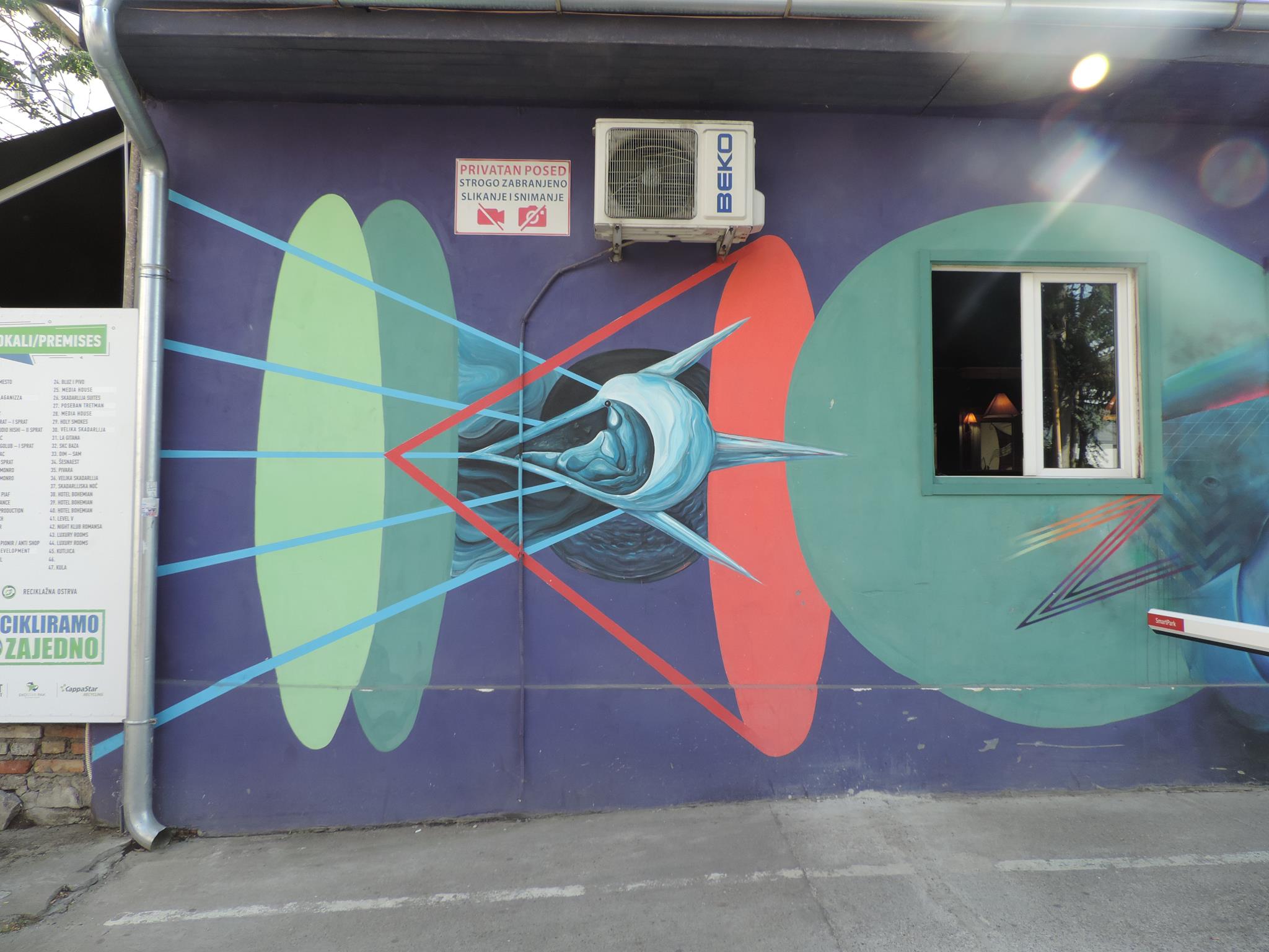 This elongated, large-scale mural at the southern entrance to the old brewery was created in September 2022 in a collaboration between local artists IGOR KANTAR and RONTES. Also take a look at the countless other artworks via the main page to the old brewery.