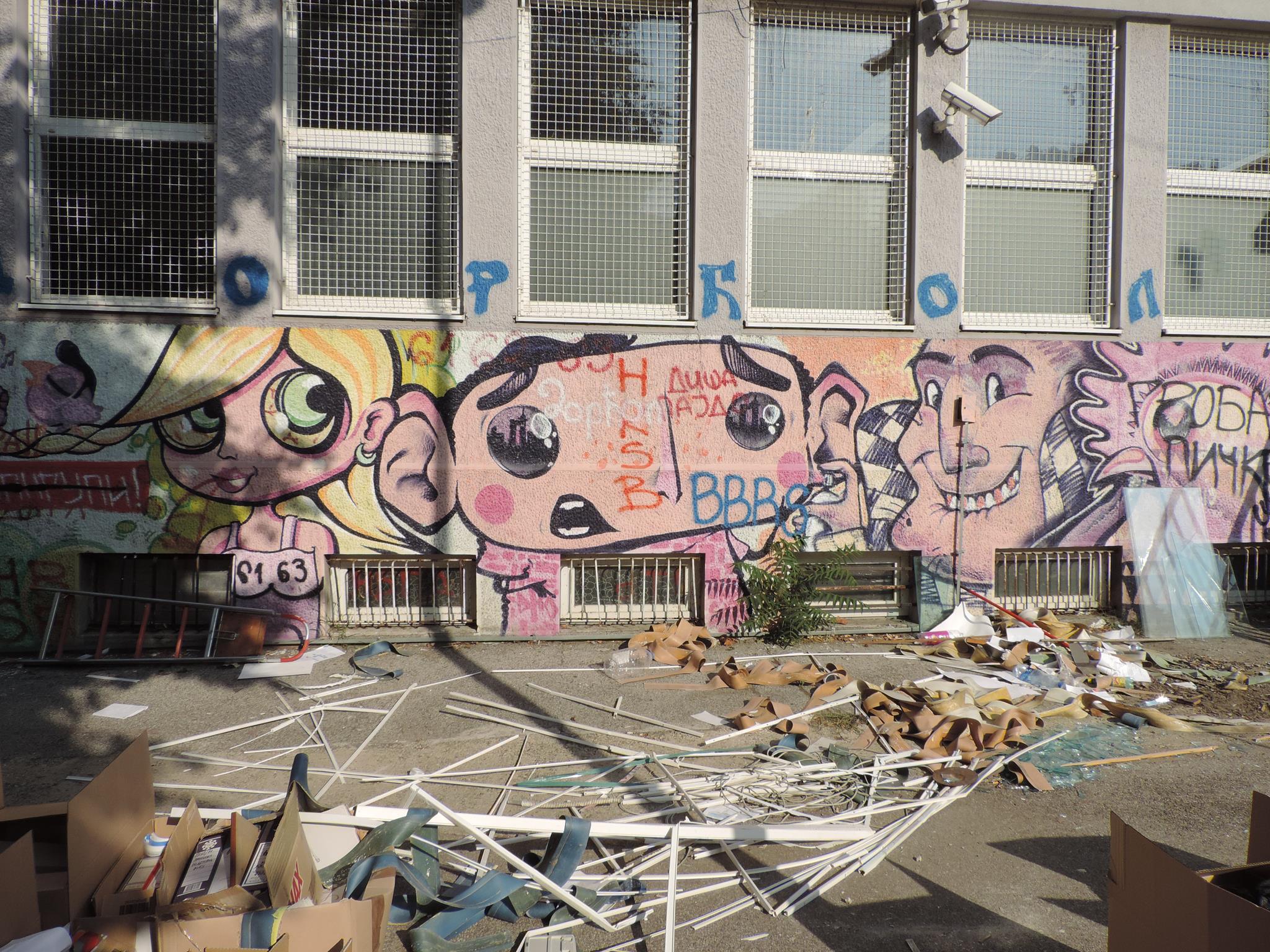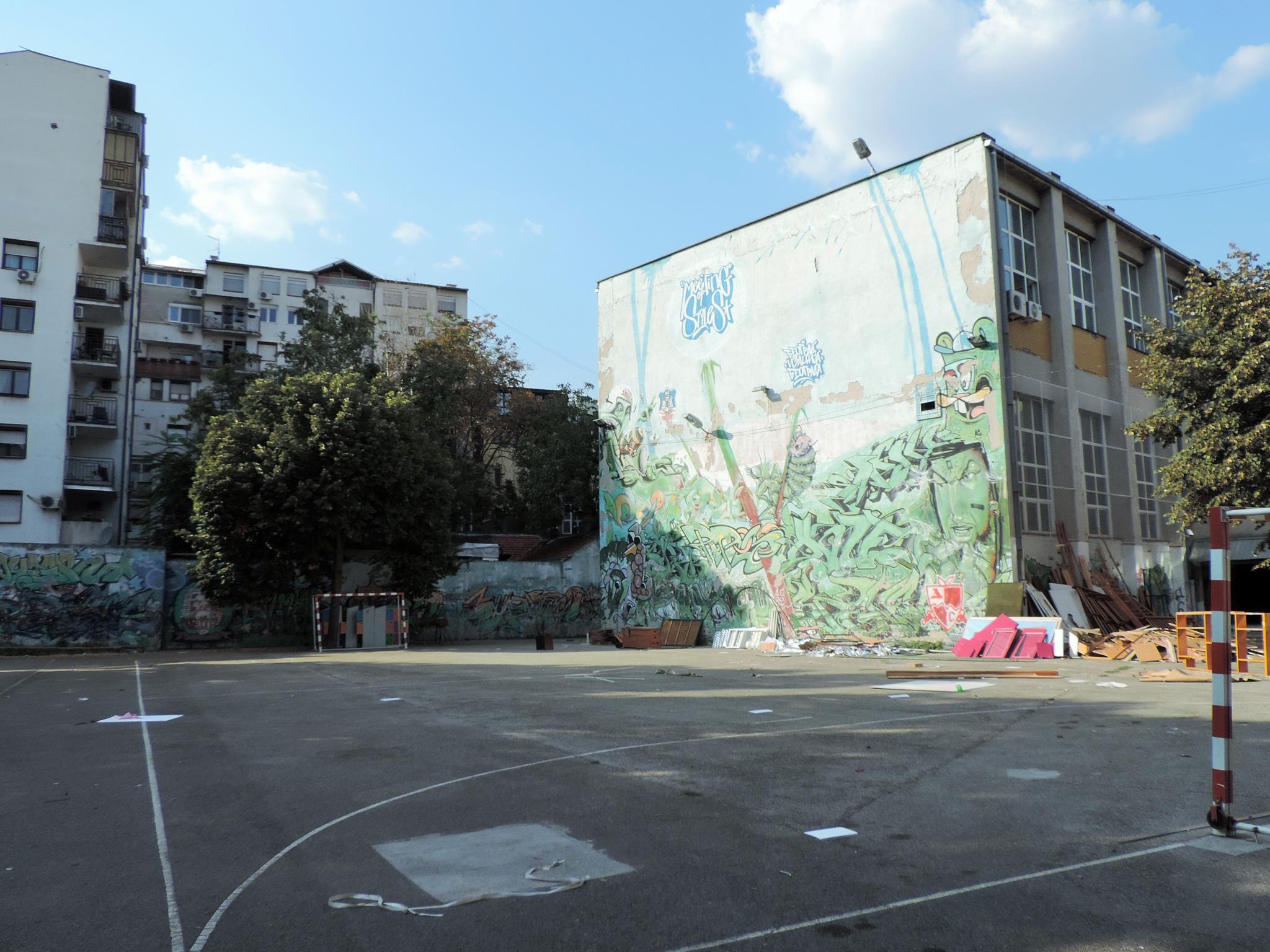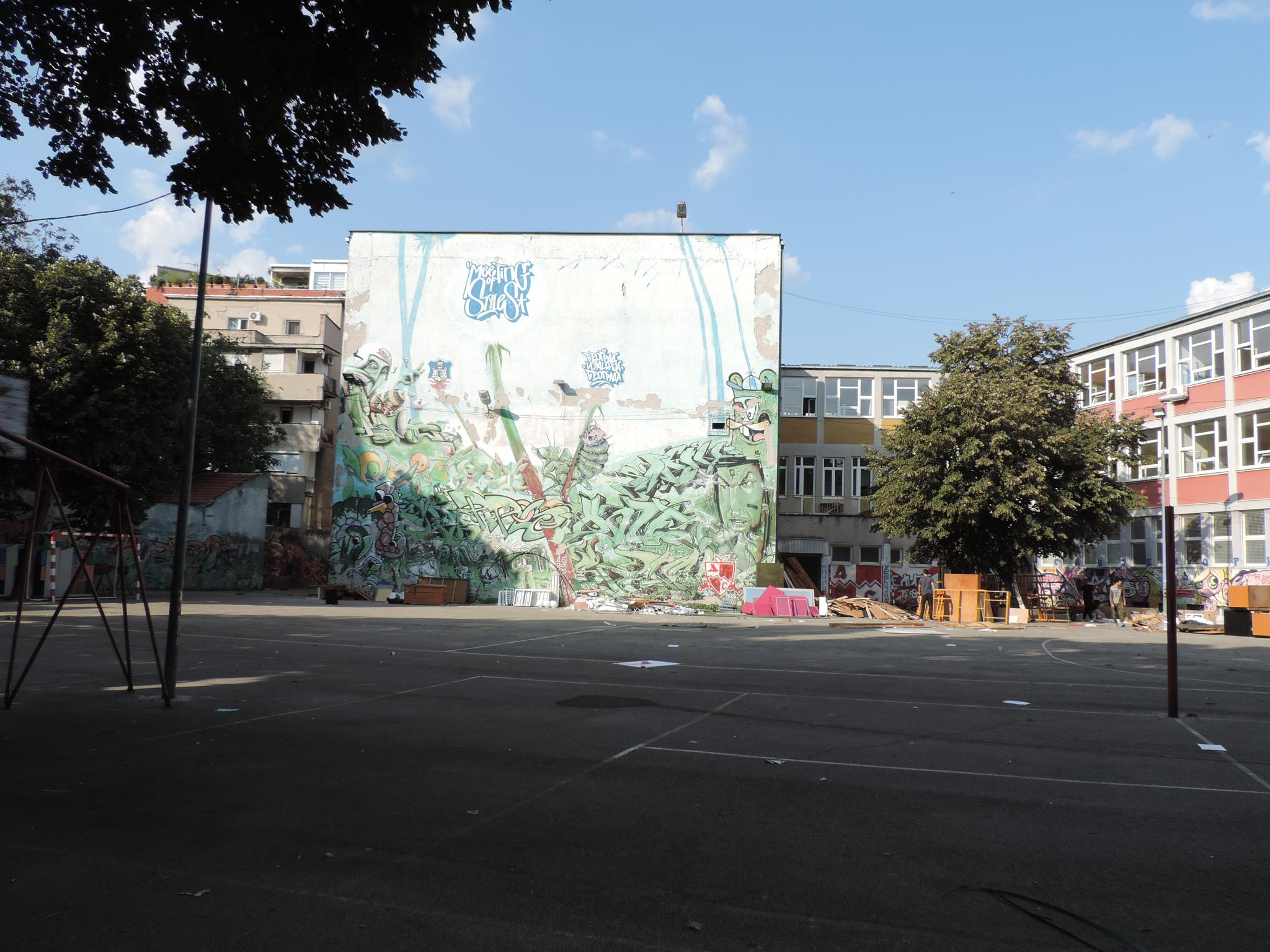 MOS about the event: Once again on the path of colours MOS meets Serbia! Check out the nice spot! A nice and awful greyish school-yard will be lightened up by the power of colours. Beside some of Serbia`s finest Graff-Artists changing the yard into a gallery a breakdance-battle is scheduled for sunday. – Meeting of Styles