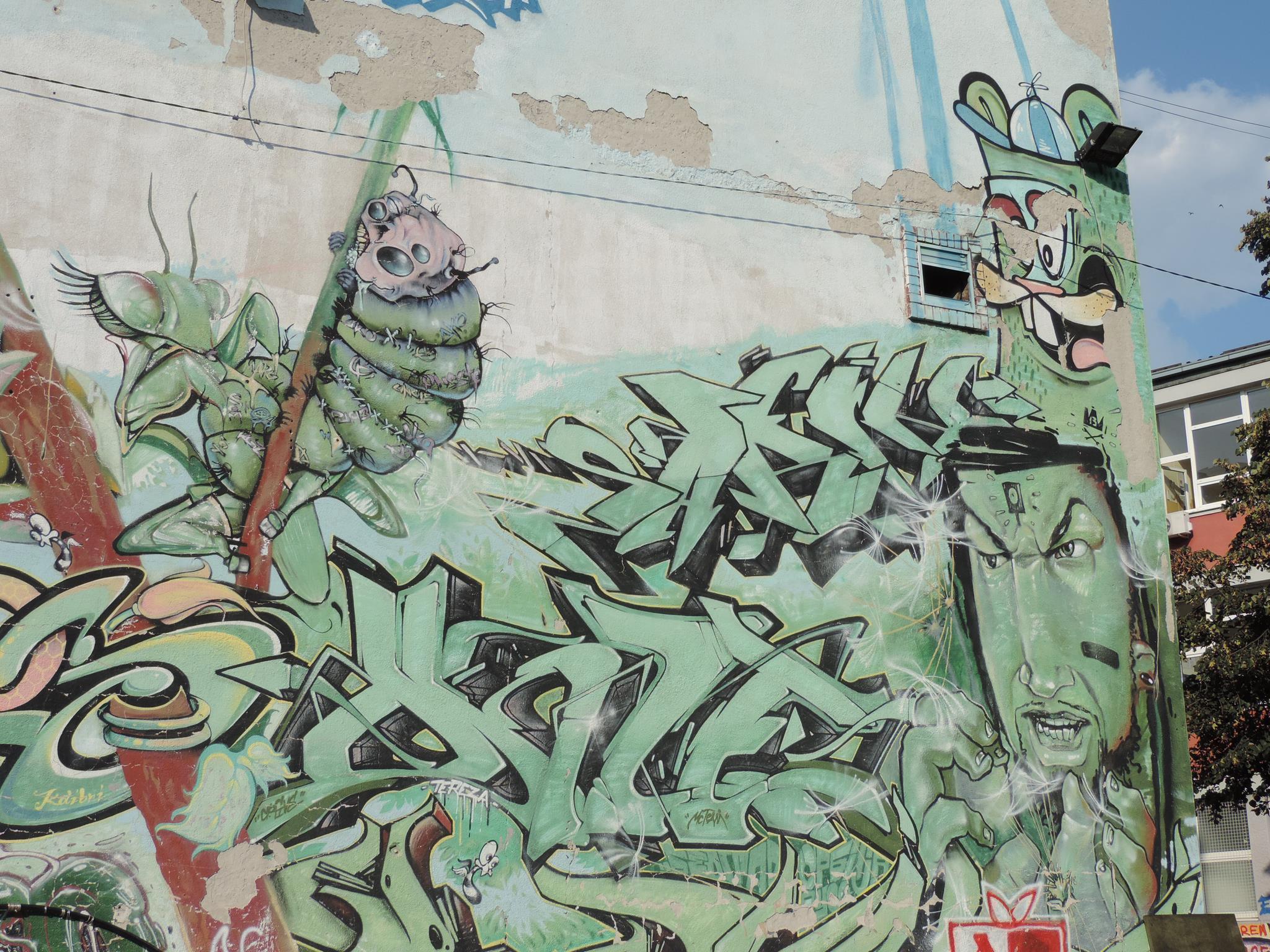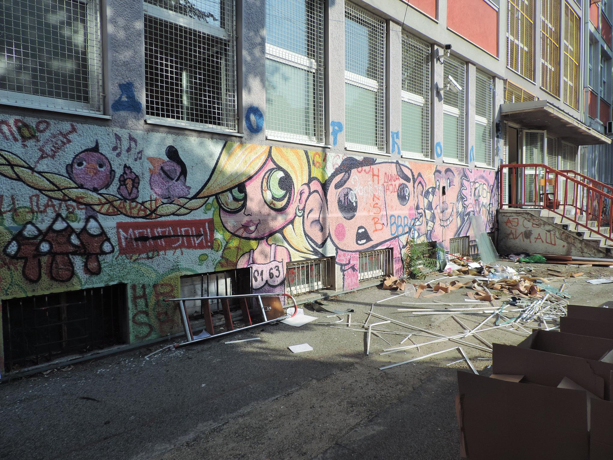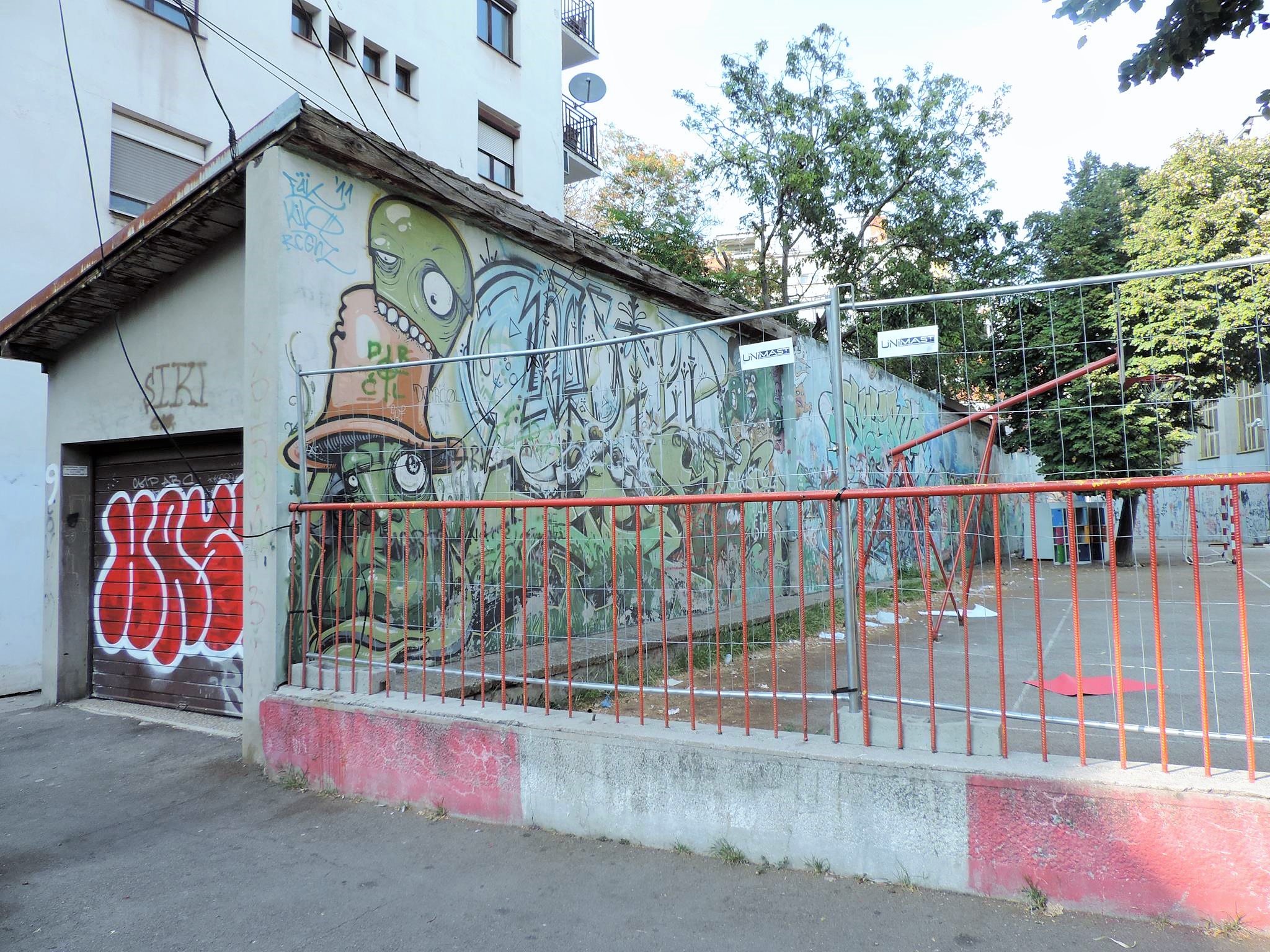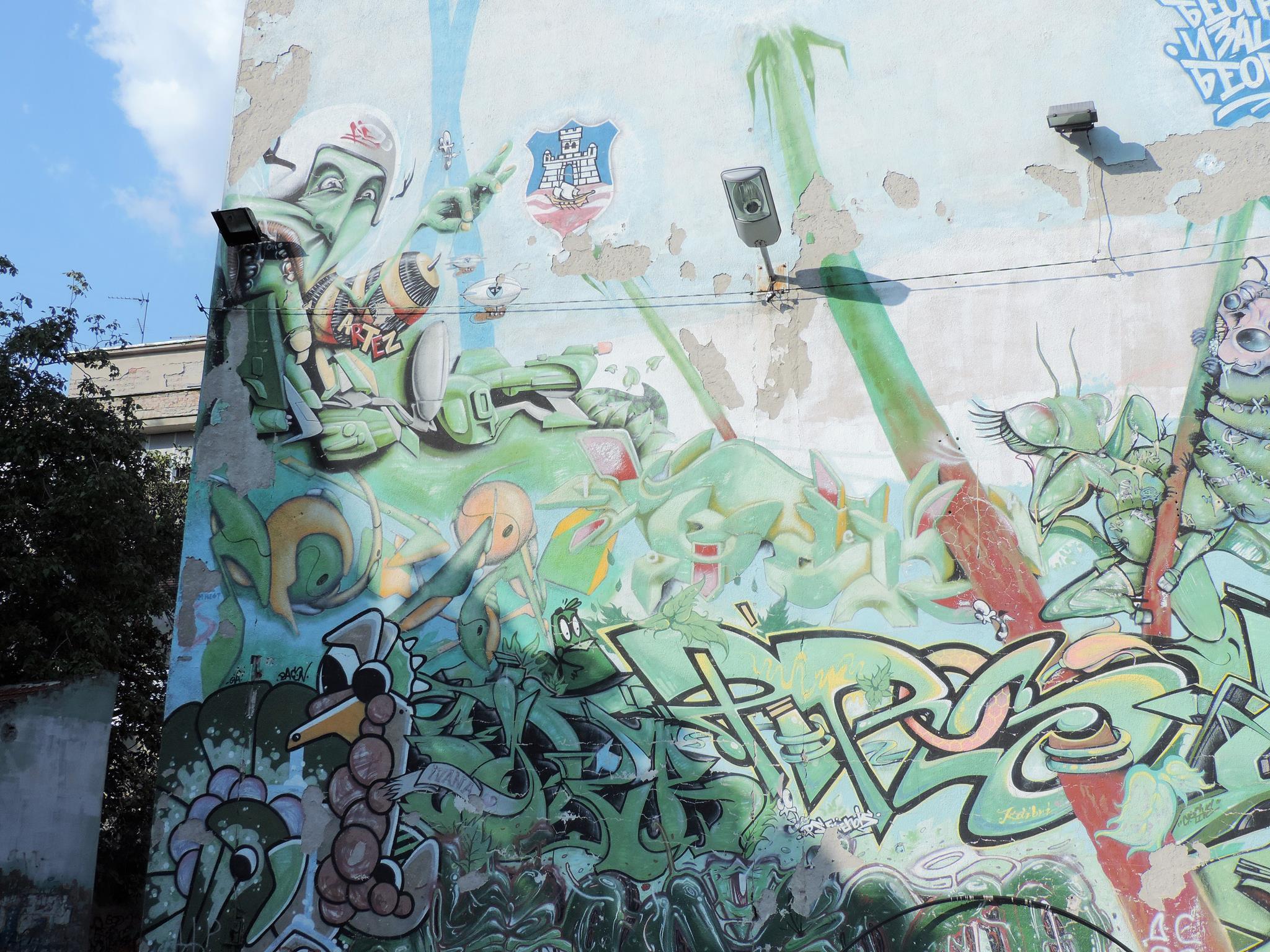 In 2011 from August 26th till 28th the walls of the Eleventh Belgrade High School or Sports High School were completely and magnificently redesigned at a MEETING OF STYLE event over three days with a creative festival programm, and it’s amazing that you can still see these works of art almost 13 years later. But it is probably coming to an end, or rather the school is being renovated and redesigned. We were still lucky enough to be allowed onto the grounds, but at that point everything was being sarnished. The question is whether the walls will be left as they are. Or you could also make a new jam… 😉