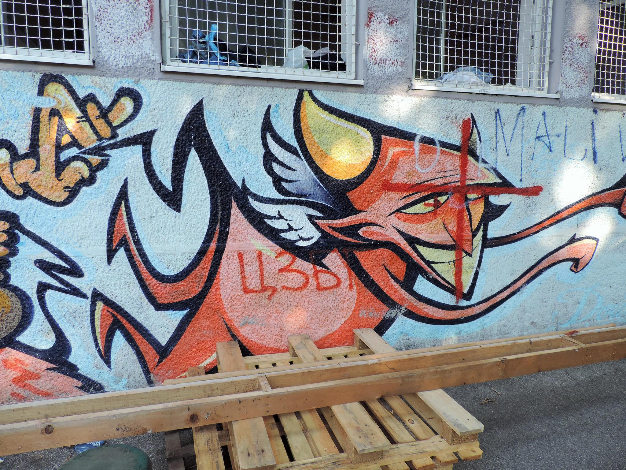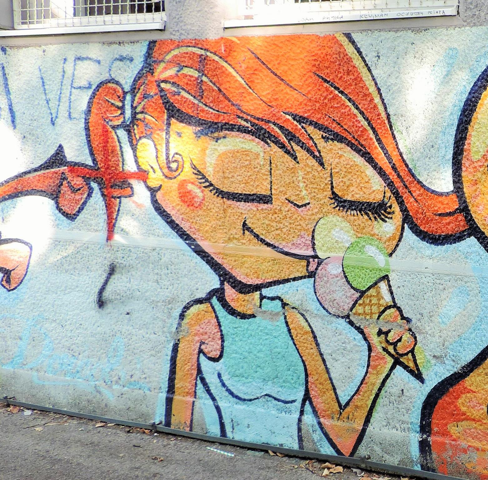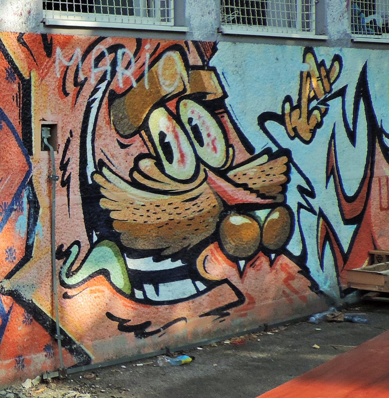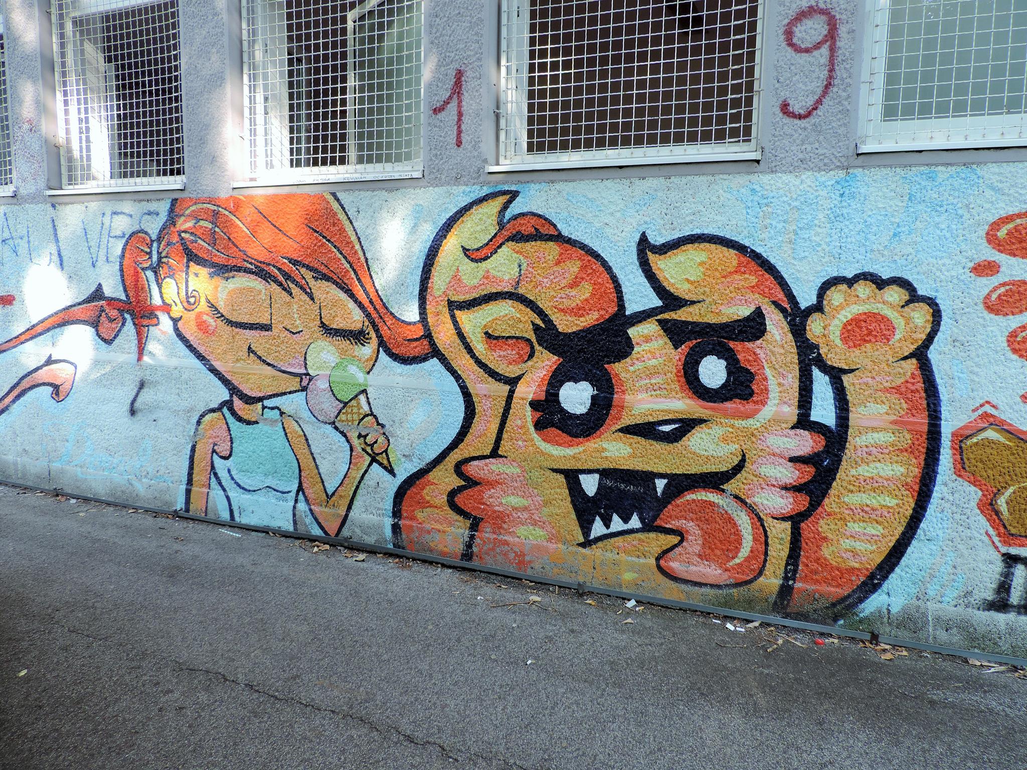 In 2011 from August 26th till 28th the walls of the Eleventh Belgrade High School or Sports High School were completely and magnificently redesigned at a MEETING OF STYLE event over three days with a creative festival programm, and it’s amazing that you can still see these works of art almost 13 years later. But it is probably coming to an end, or rather the school is being renovated and redesigned. We were still lucky enough to be allowed onto the grounds, but at that point everything was being sarnished. The question is whether the walls will be left as they are. Or you could also make a new jam… 😉