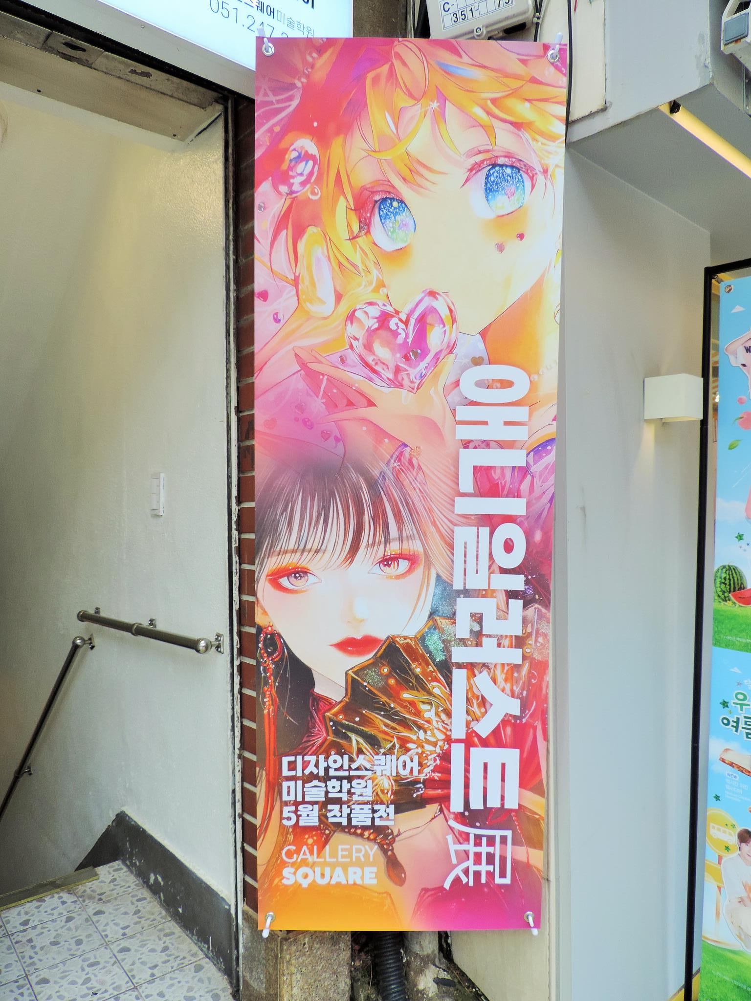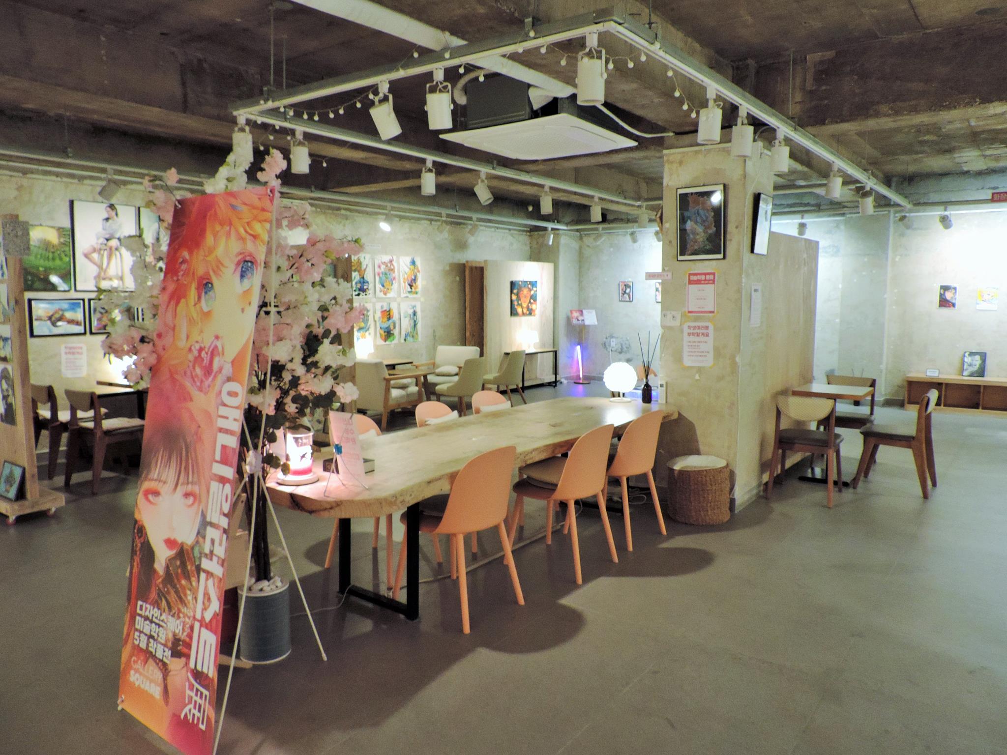 Hello listeners, we have another interview for you from Korea and from the city of Busan. By accident we just passed a gallery with the name GALLERY SQUARE. We thought it’s an art gallery because there were some anime, manga and comic signs in the front. But this place is much more than just a gallery. It’s an art space where young creative people can learn how to draw, how to paint, and they also have exhibitions. I’m talking now to the art teacher who is running this space, and his name is BYEONG YONG JEONG. So tell us more about this place, when did you start this project?