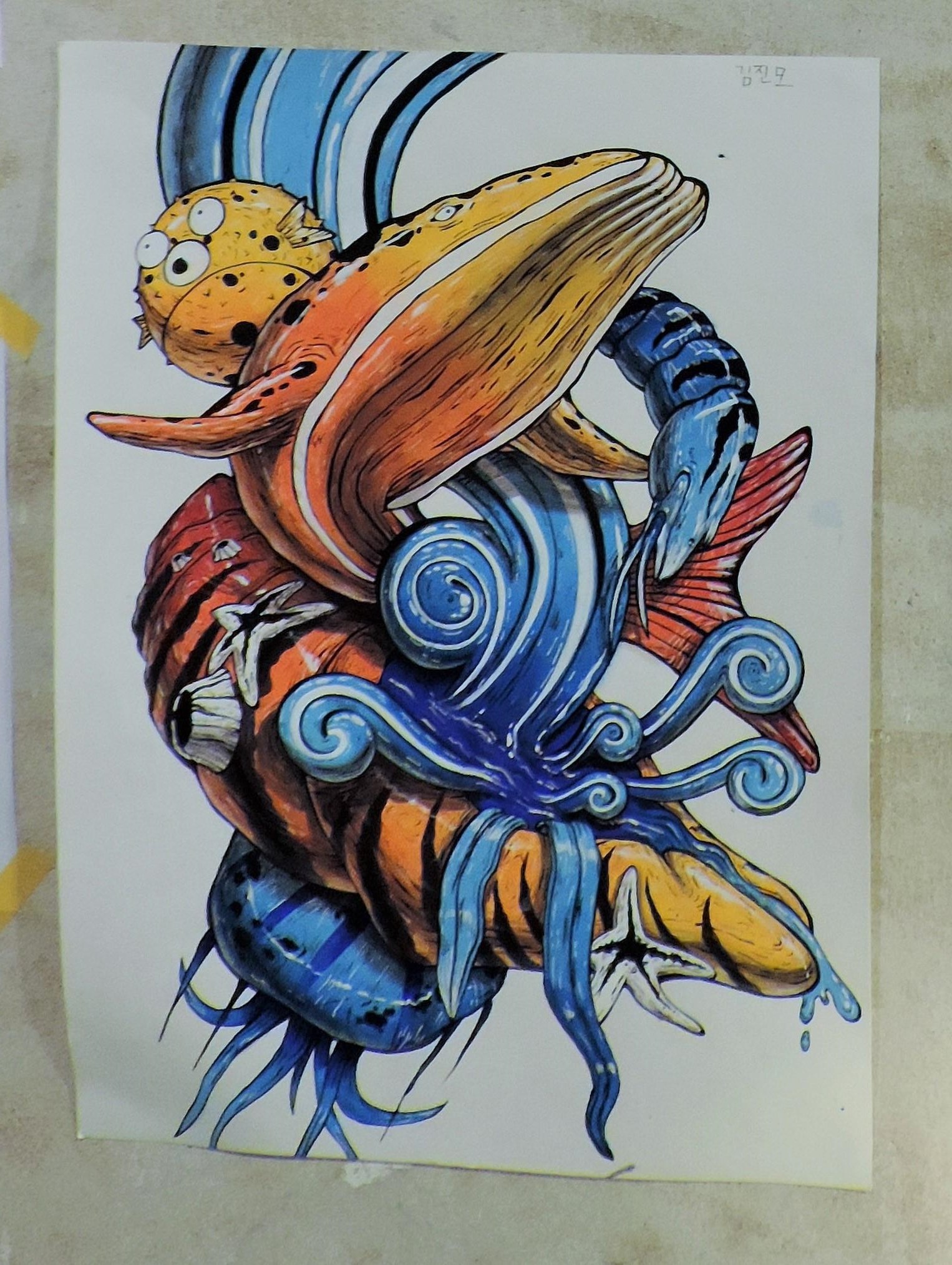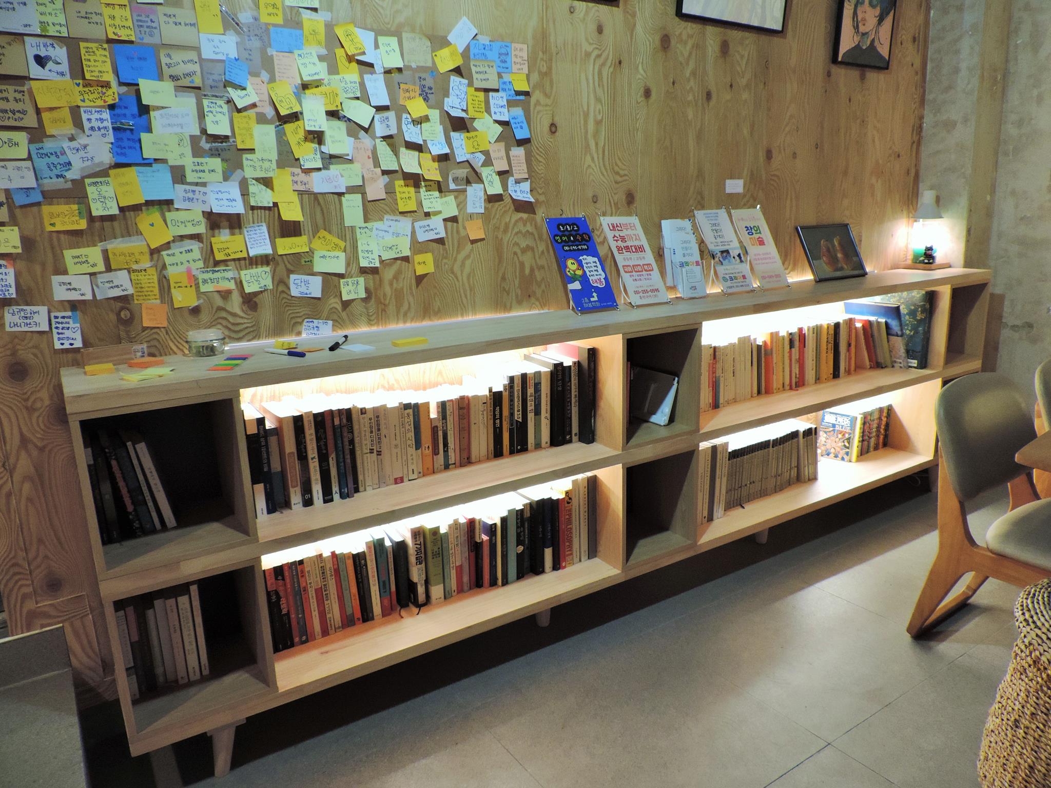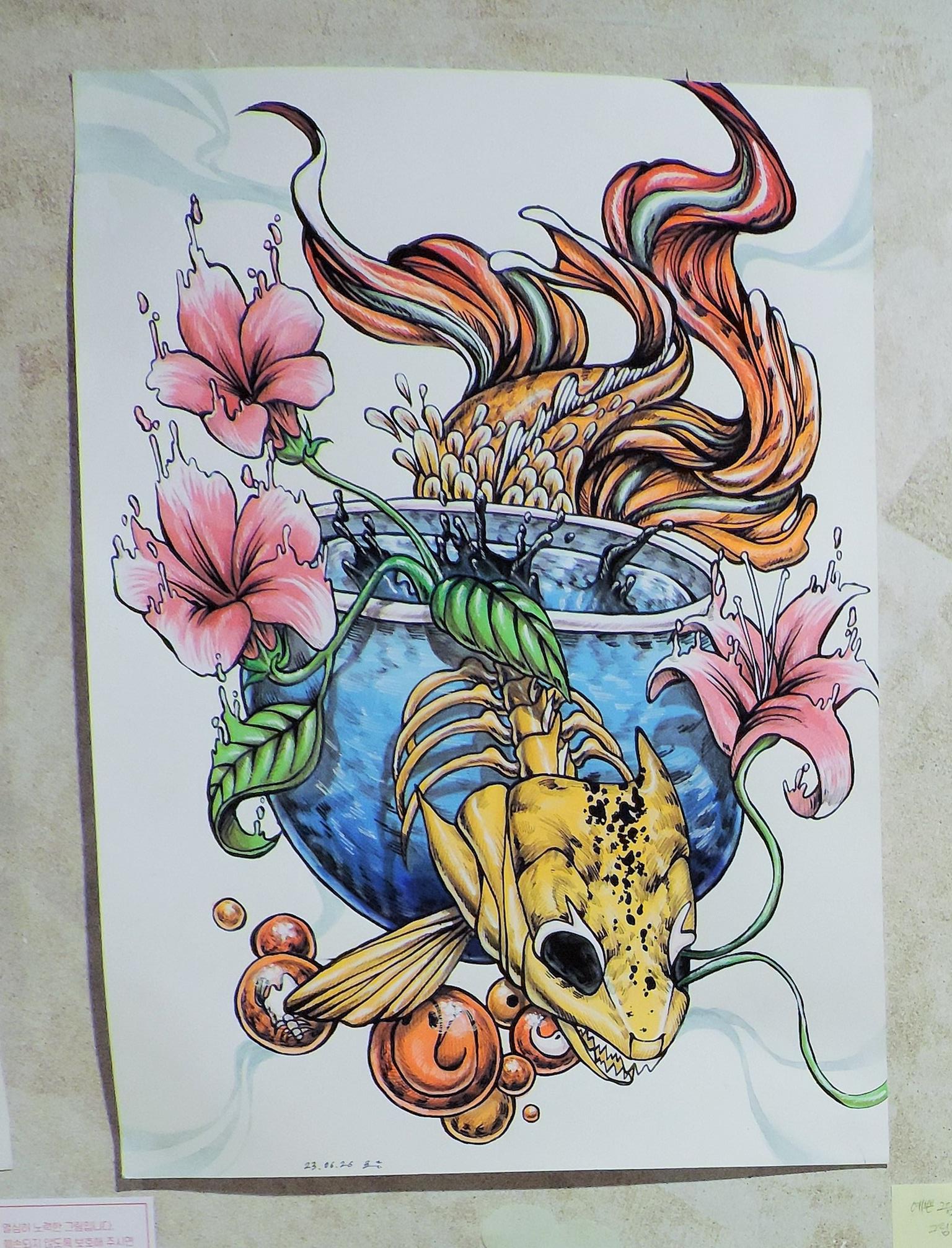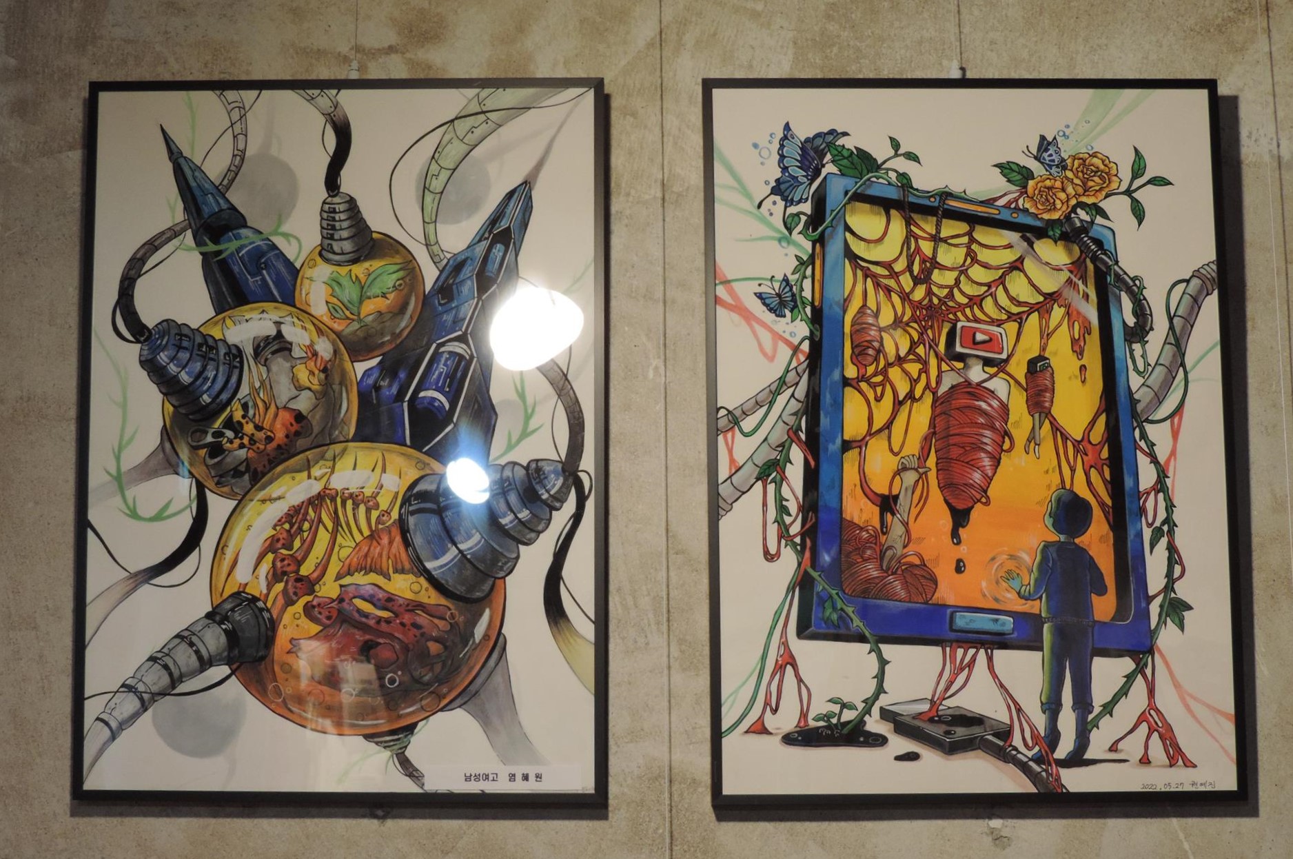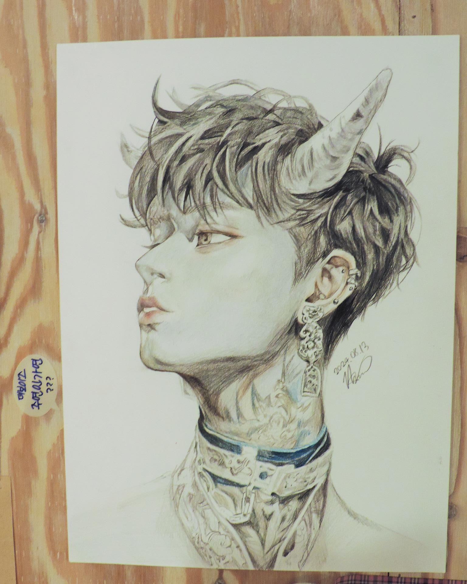 Yes, we have here art education and art exhibition at one place. And during the time a lot of artworks got created. We present them on our walls to show what kind of art you can do. There are portraits of people, also animals, abstract paintings, comic heroes or manga drawings. Everybody is welcome and when you are in Busan come by and have a look at our creative space.