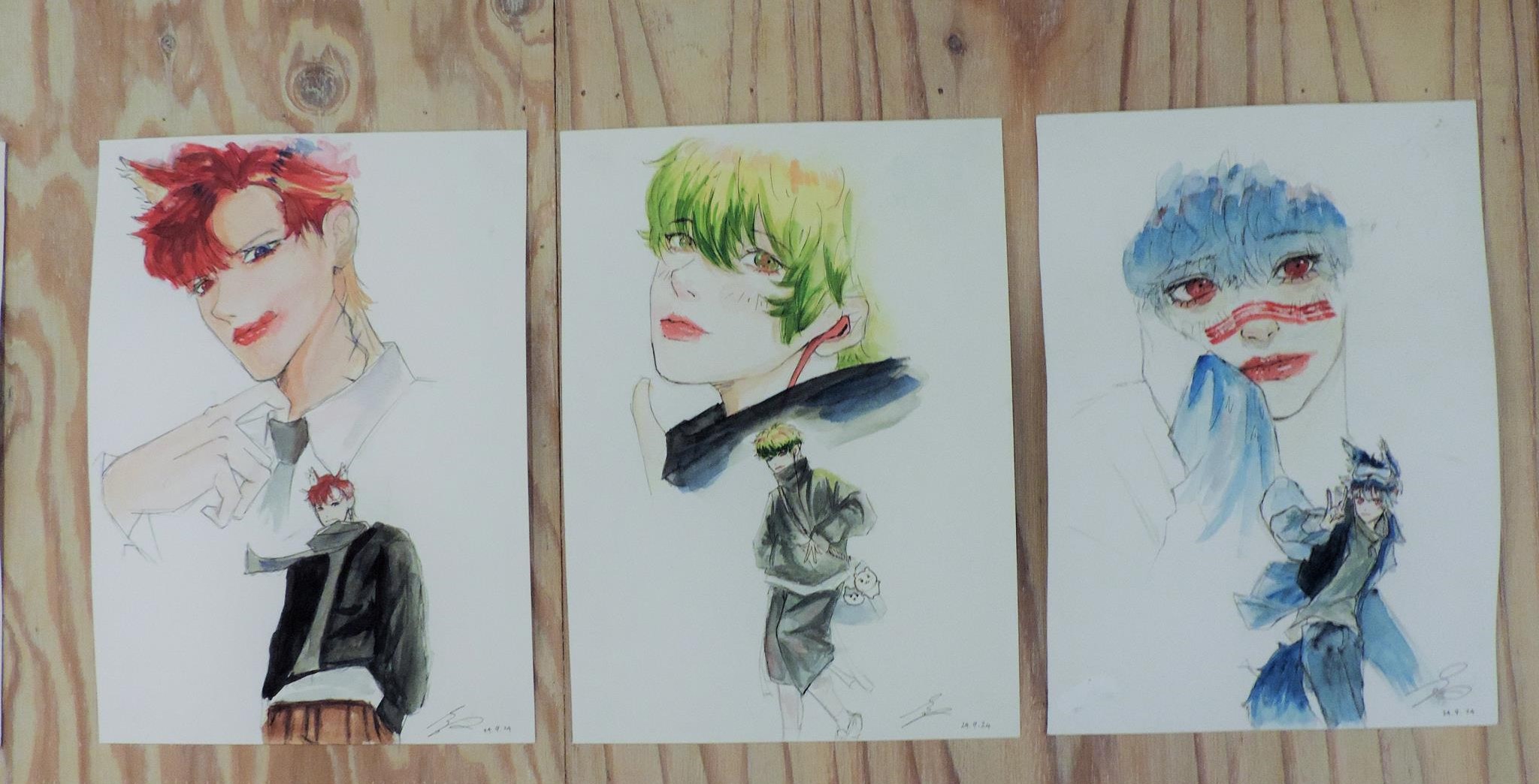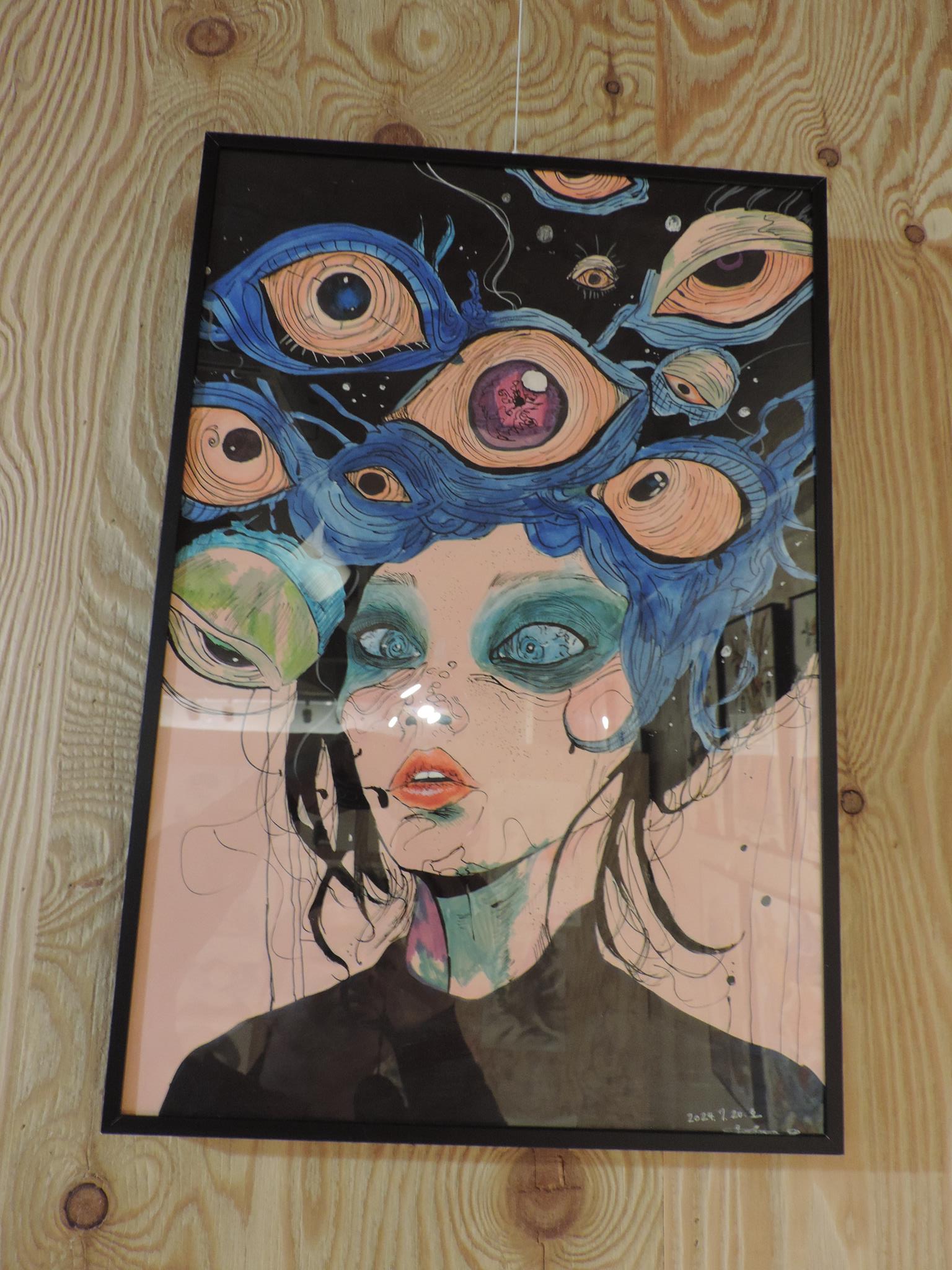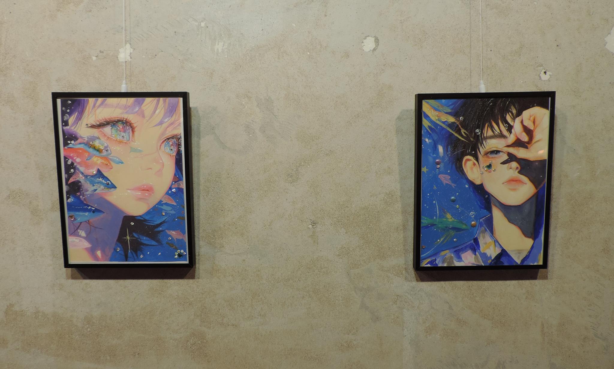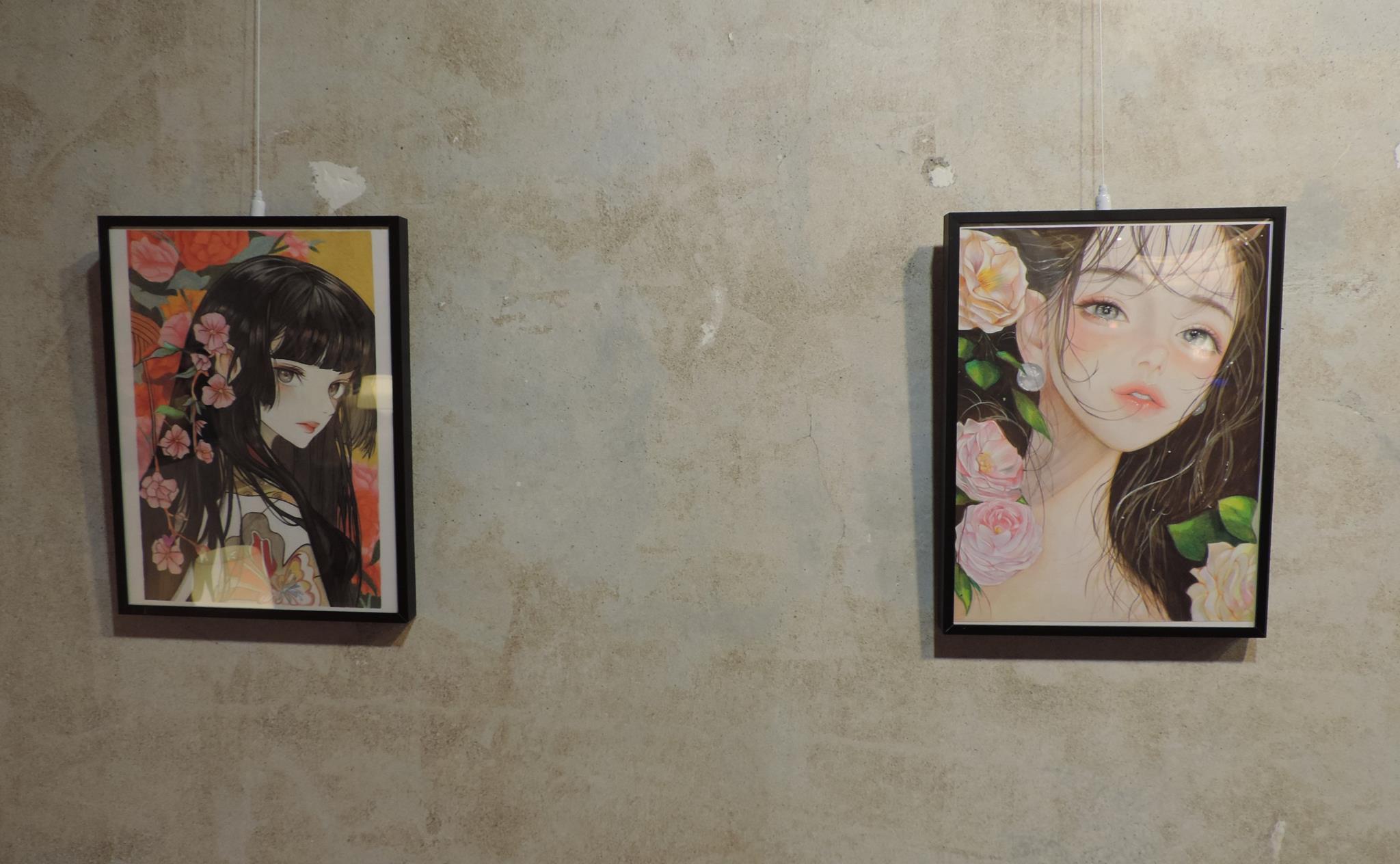 Some of them, others are from the art academy above. So these works on that wall are from our students. The drawings from visiting people are on this wall and here we also have special exhibition works which are also from our students. Or let’s say from our pre-students, because they are preparing for college and university. At our academy they learn and practice to pass the entrance examinations.