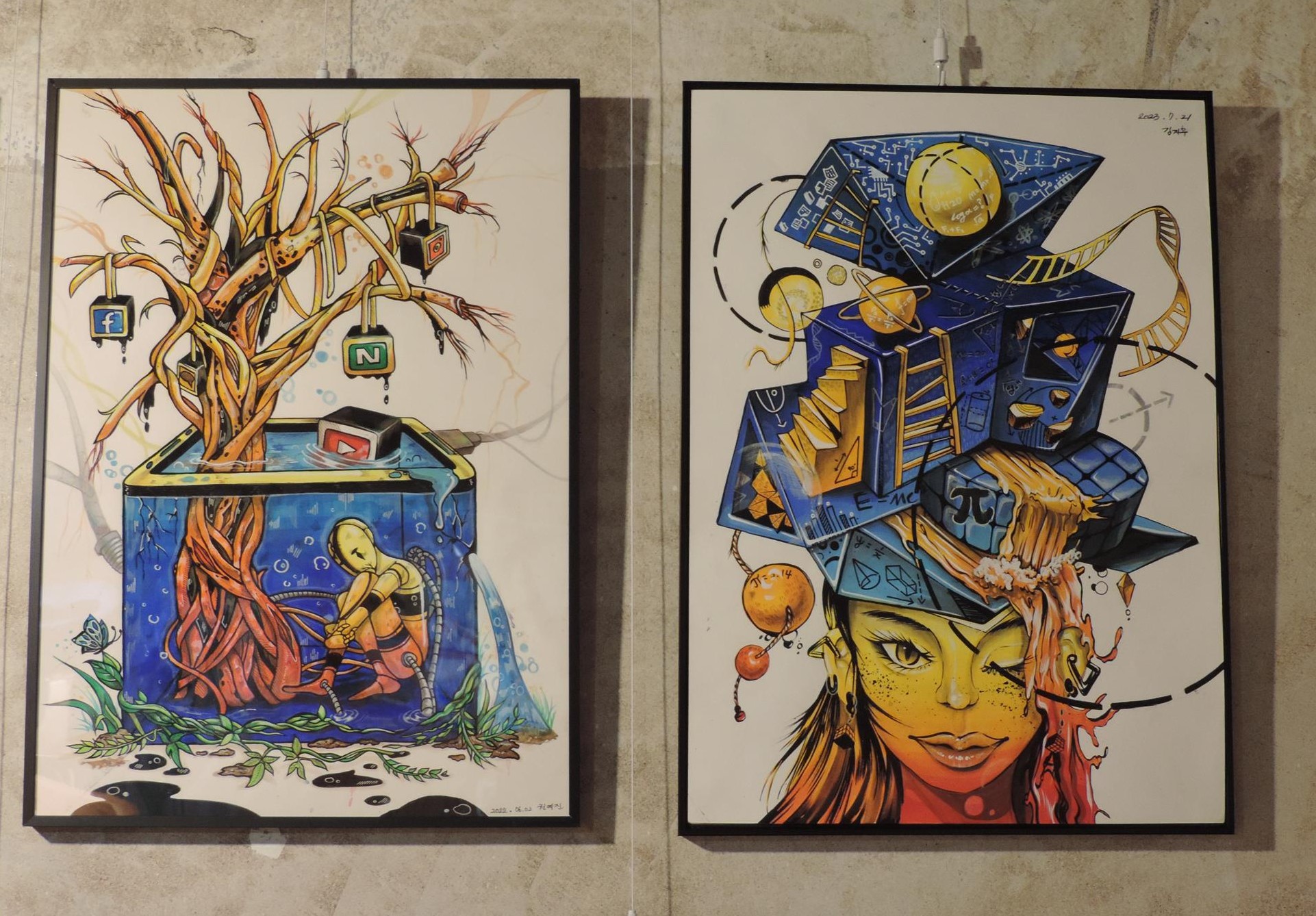 You said this place opened around six months ago and since then other people can come and paint. But you also have already a lot of artworks on the walls, so I think there are around 150 artworks. Each of them different and they inspire the visitors, so it’s a space to be creative, but it’s also a small exhibition with artworks from your students.