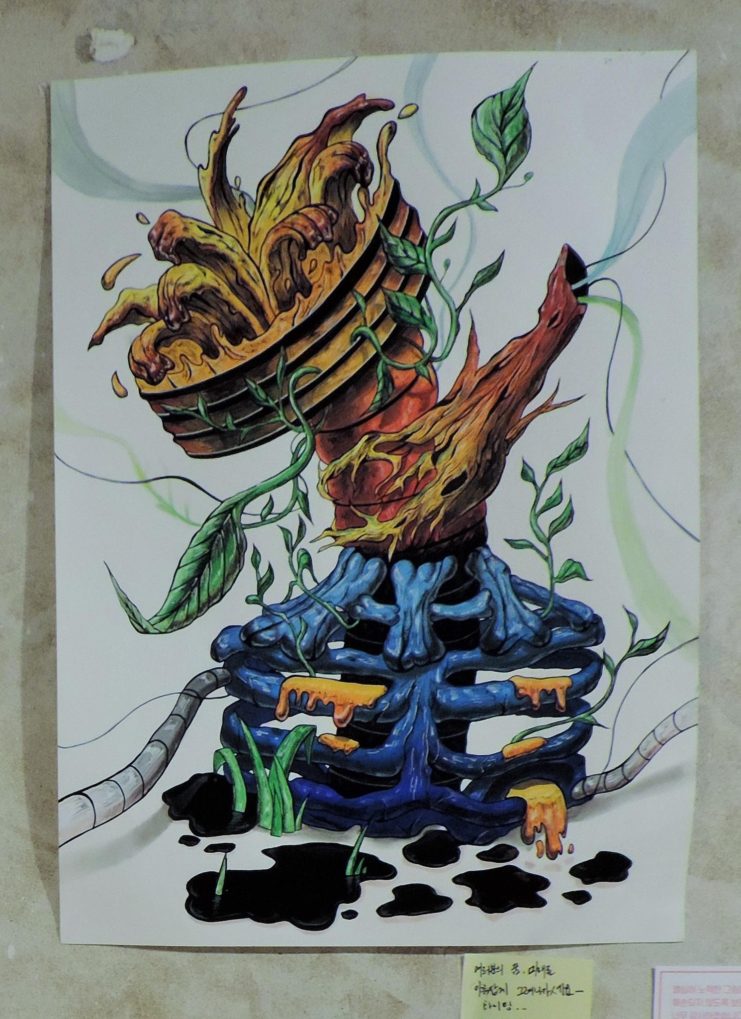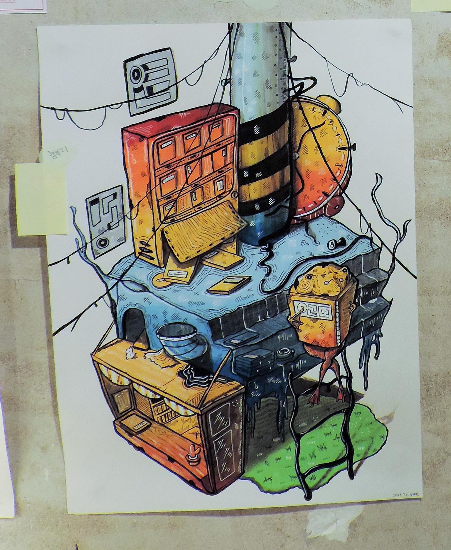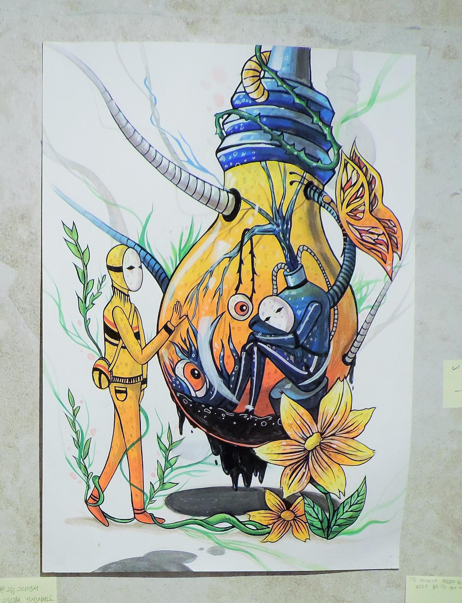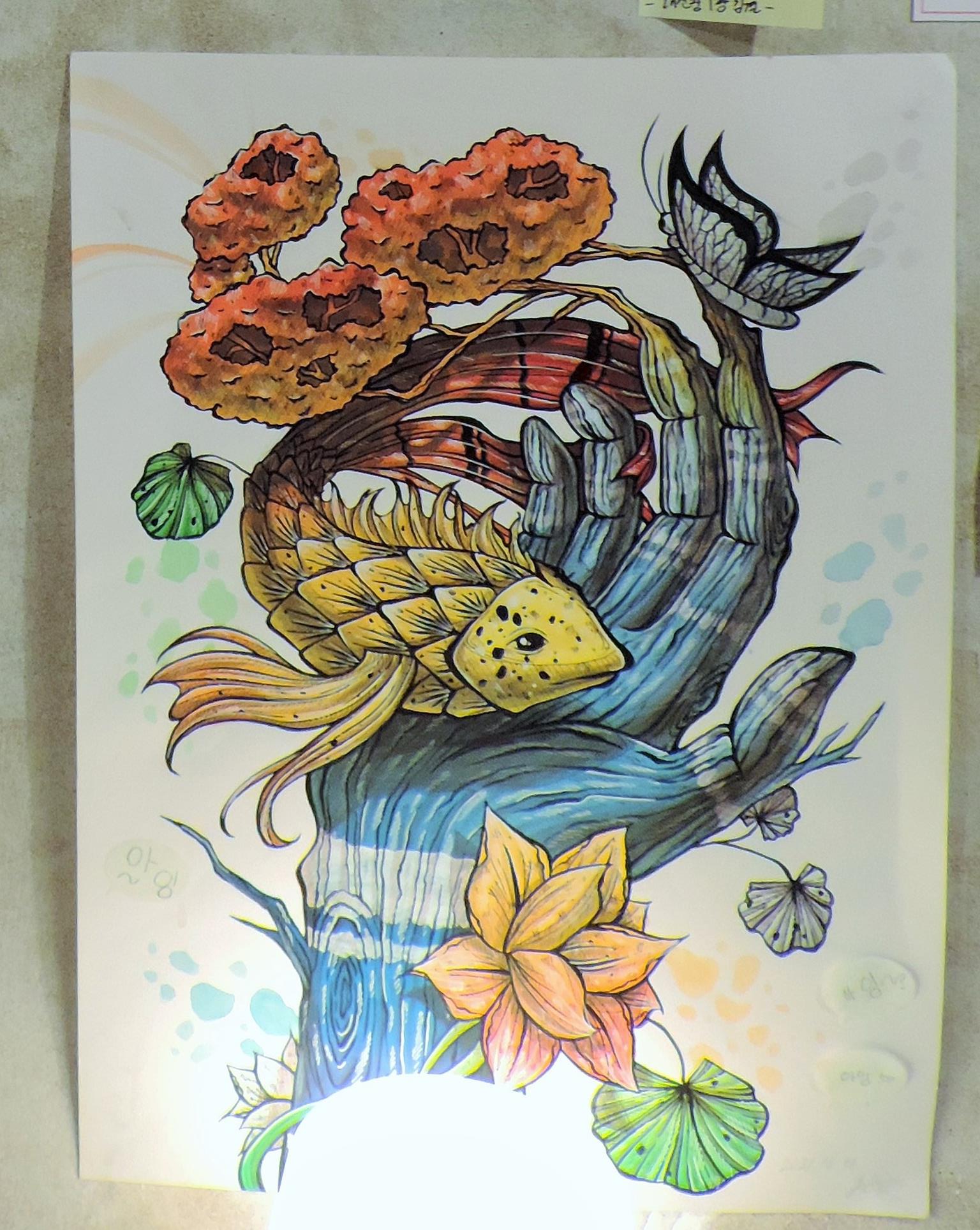 Yes, I also create artworks. I studied visual arts at the Busan National University. Nowadays when I do art myself, I just want to draw abstract art, but it’s difficult with the time management. Because there is not much free time for that. I have to teach students so I have no time for doing art myself. But when I draw, then I do abstract art.