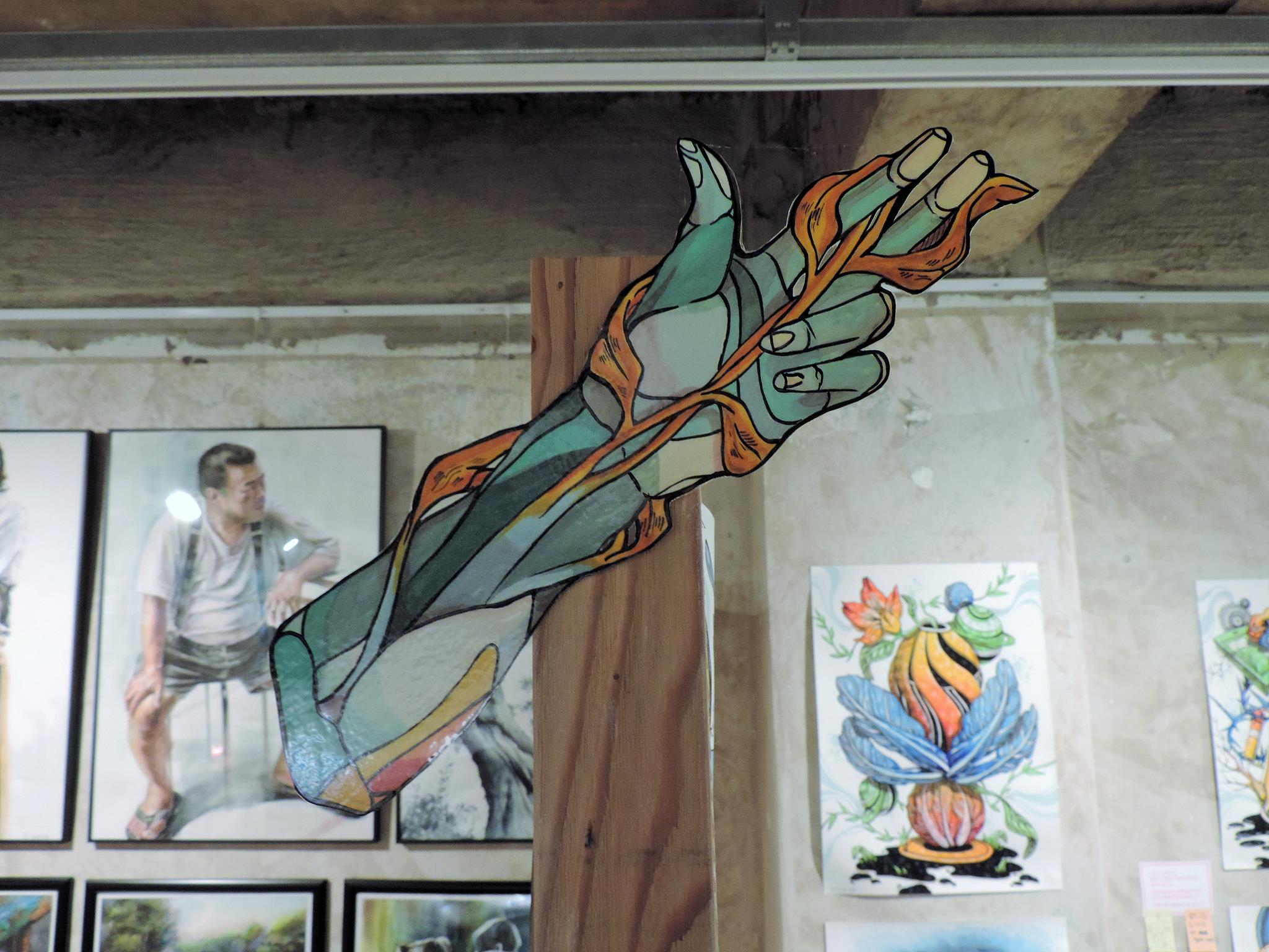 I work on the fourth floor and above this space GALLERY SQUARE there is the art academy DESIGN SQUARE. It’s a study place for students and to prepare them for the entrance at the art college. So I basically work there as an art teacher and this space here is an addition. We are usually open every day during the week at the time when the art academy is also open. But it depends on the time the teachers have. Besides the worksshops we try to be open in the afternoons and there is somebody around to give advice.