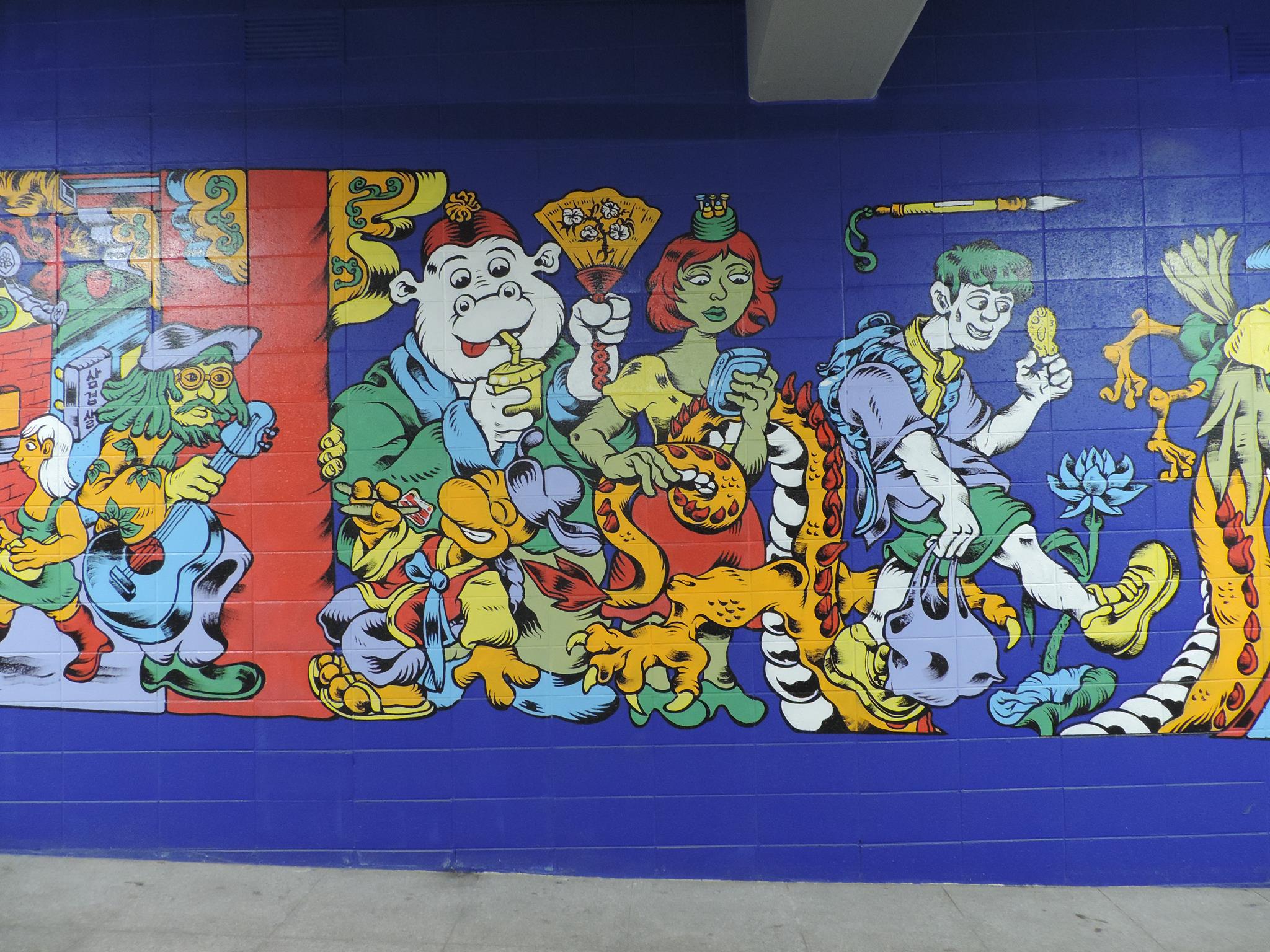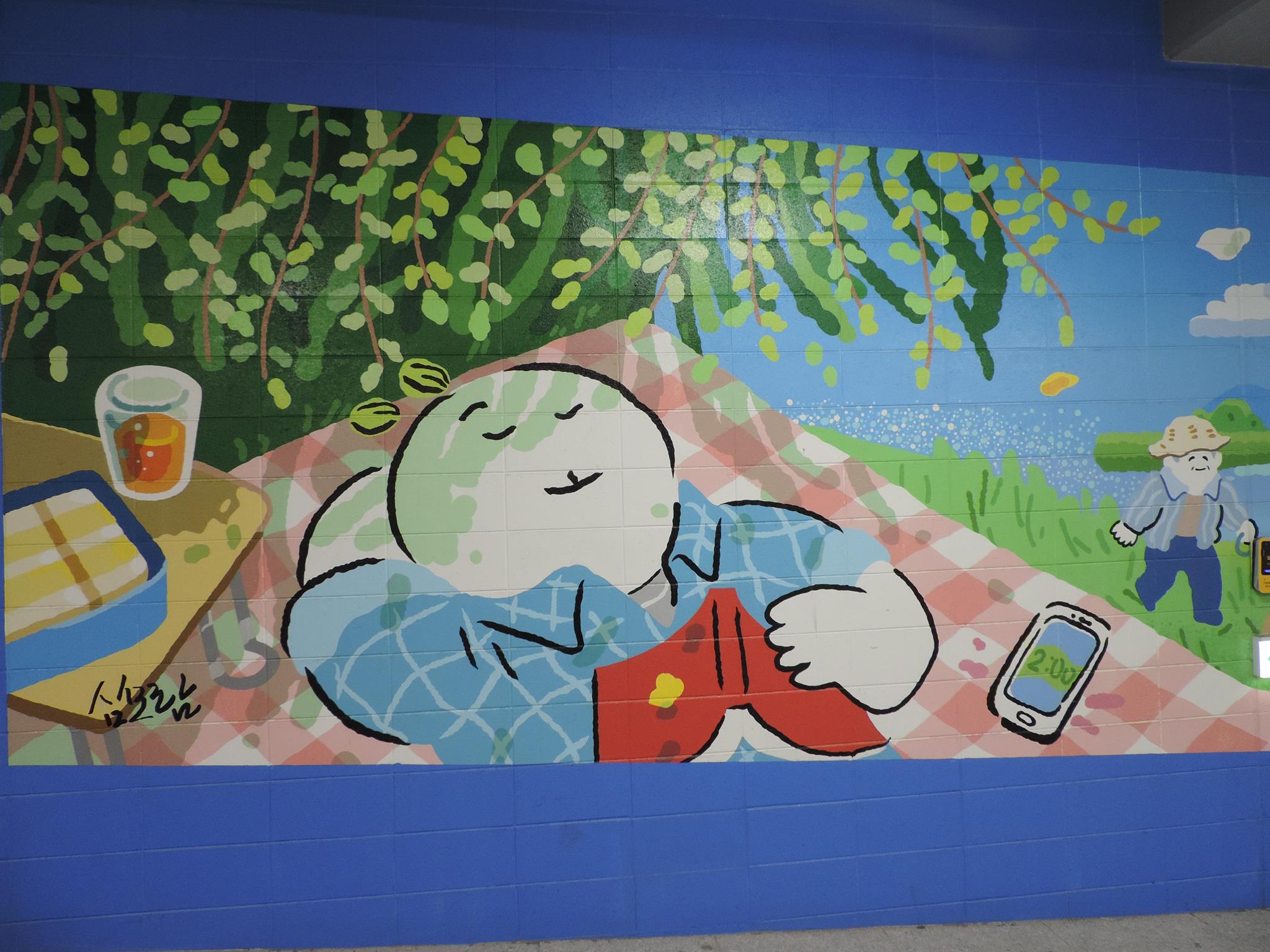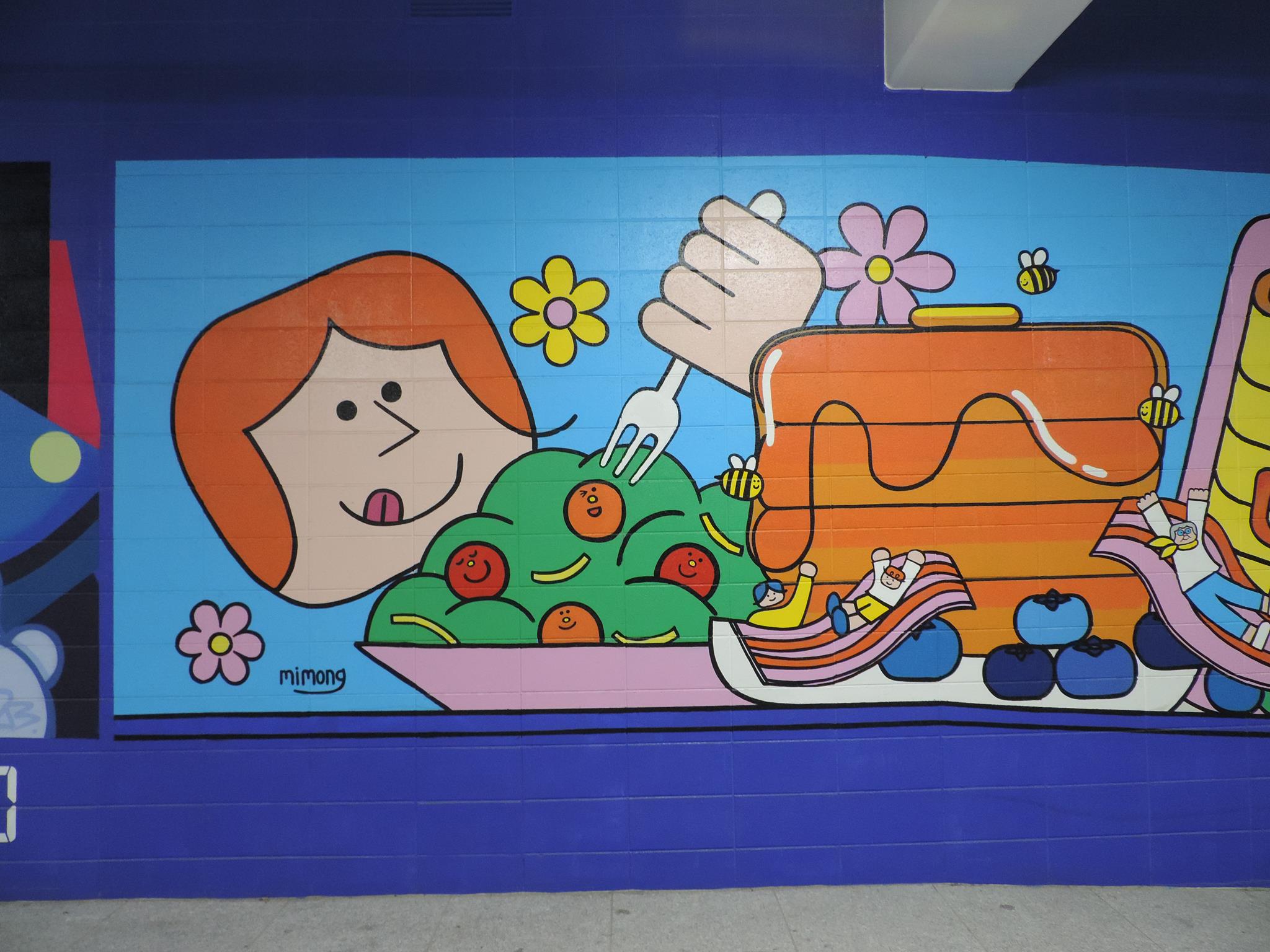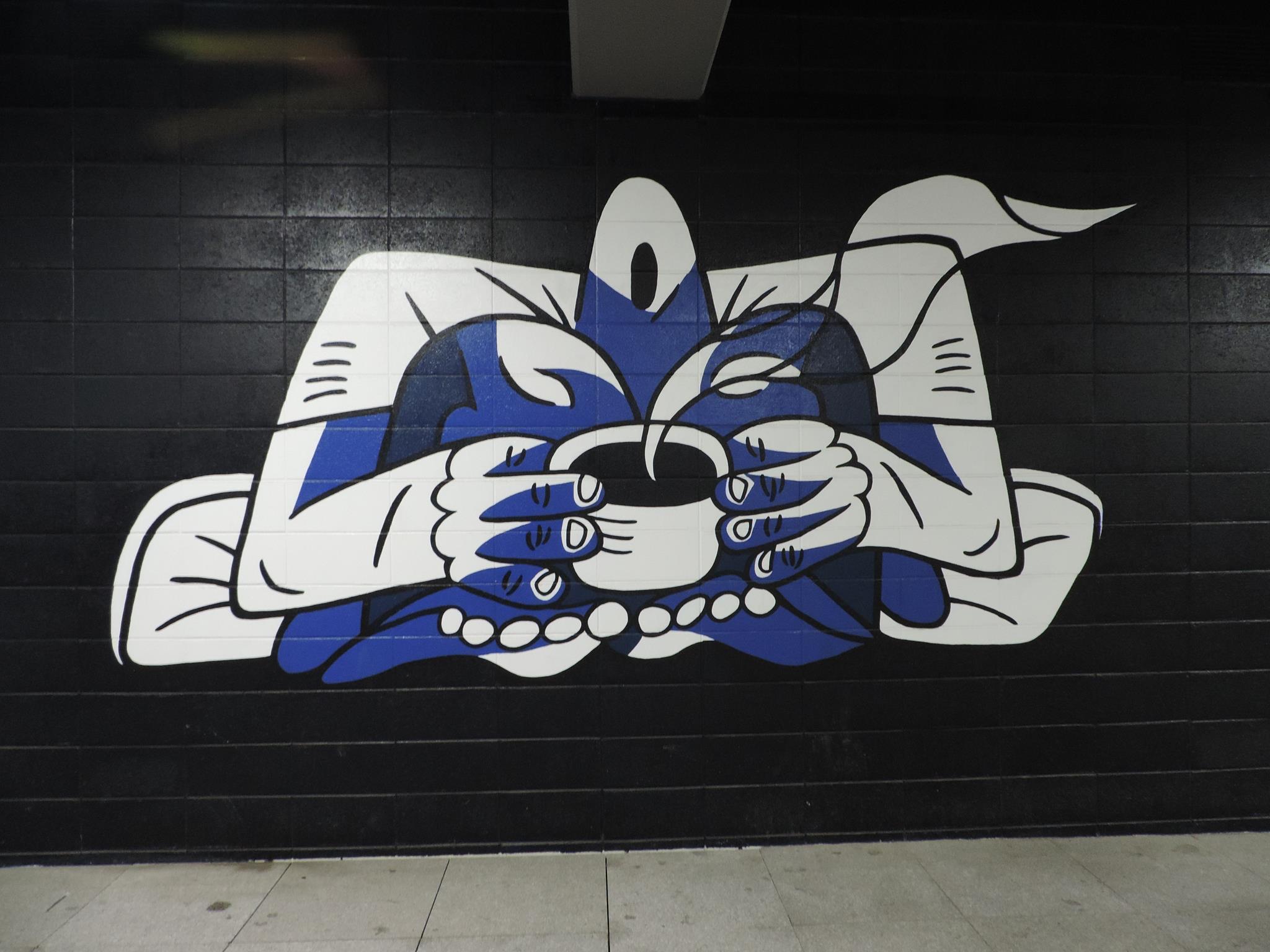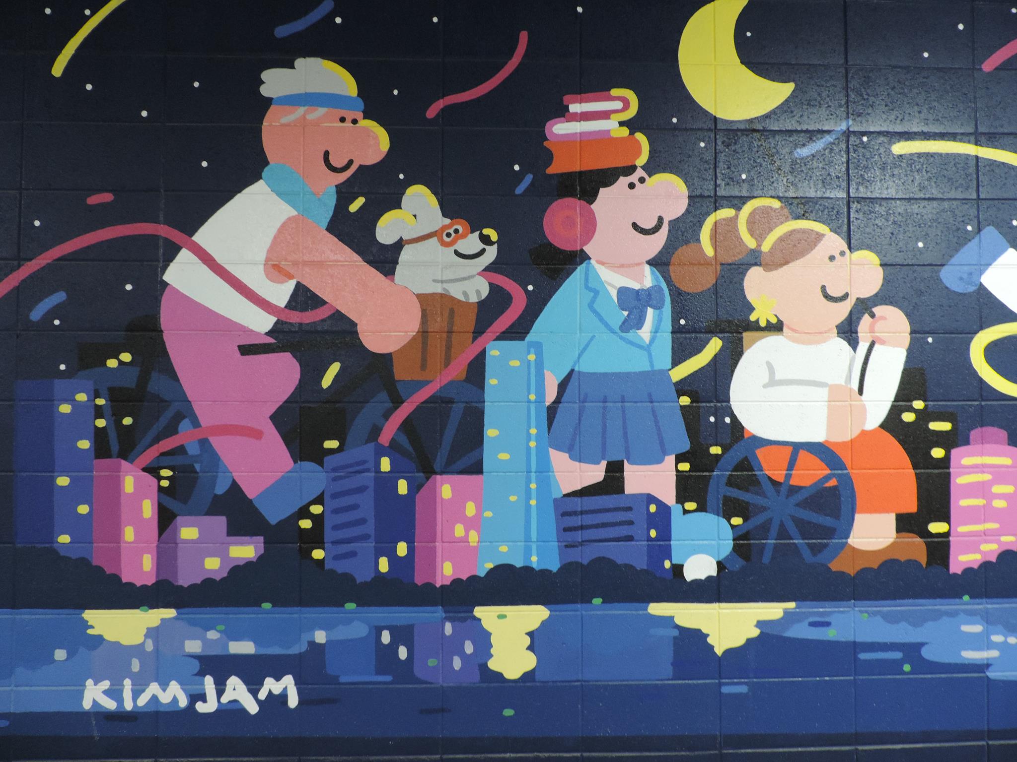 Each artist has interpreted the hour in their own style, resulting in a wide variety of techniques, from graffiti to comics to manga and abstraction. The passage has become an extensive underground gallery that provides a good insight into the Korean streetart scene. While you’re there, you should also stop by the tourist office, which is highly recommended. The staff can provide lots of information about streetart locations around and other tips. When you reach the end of the tunnel, assuming you started in the south, another masterpiece by Spanish artist LALONE awaits you in the northern foyer, featuring Picasso motifs to mark the city partnership between Seoul and Malaga.