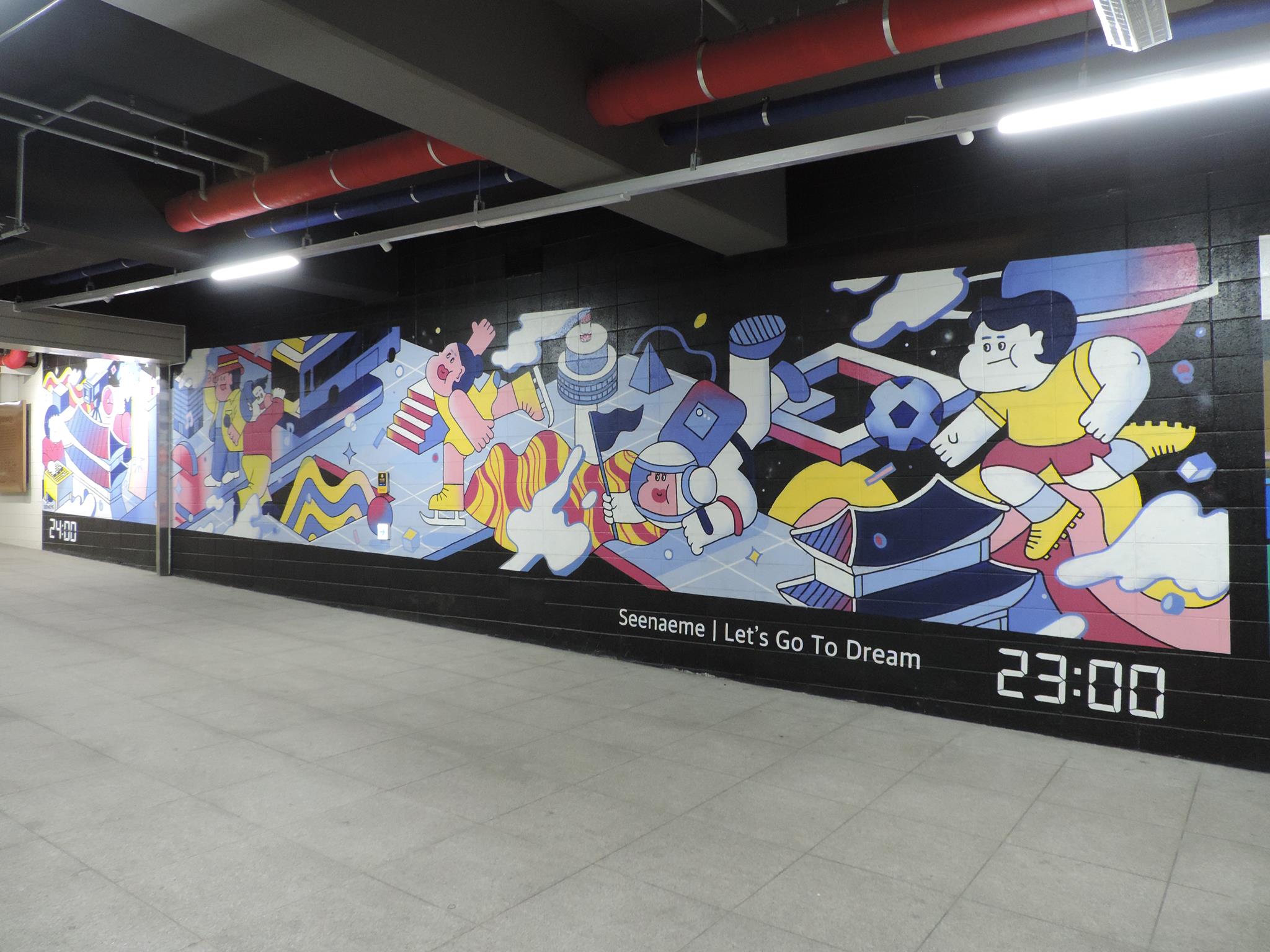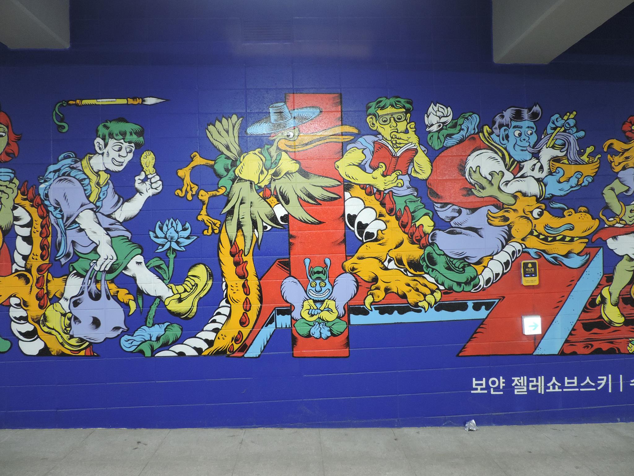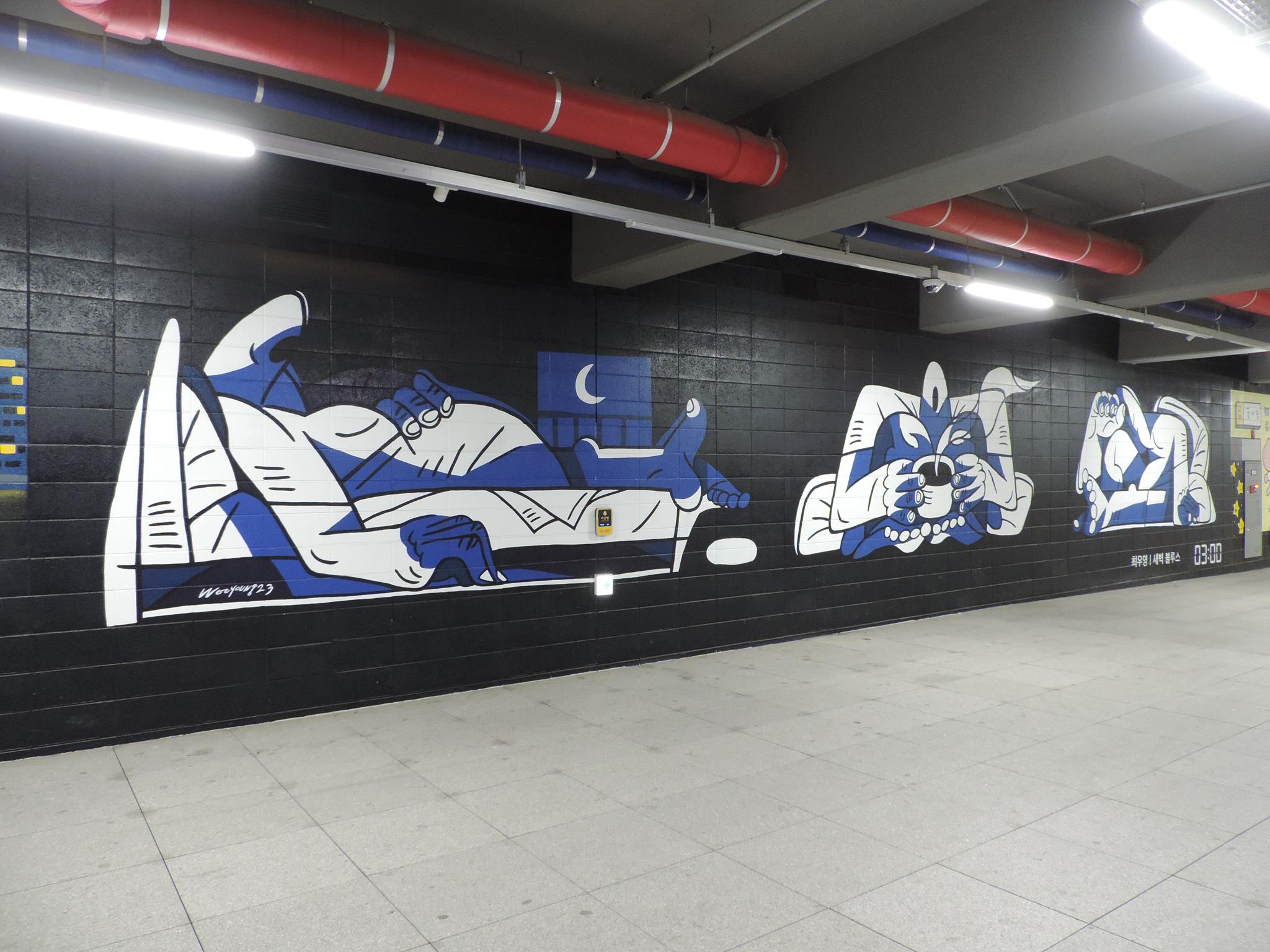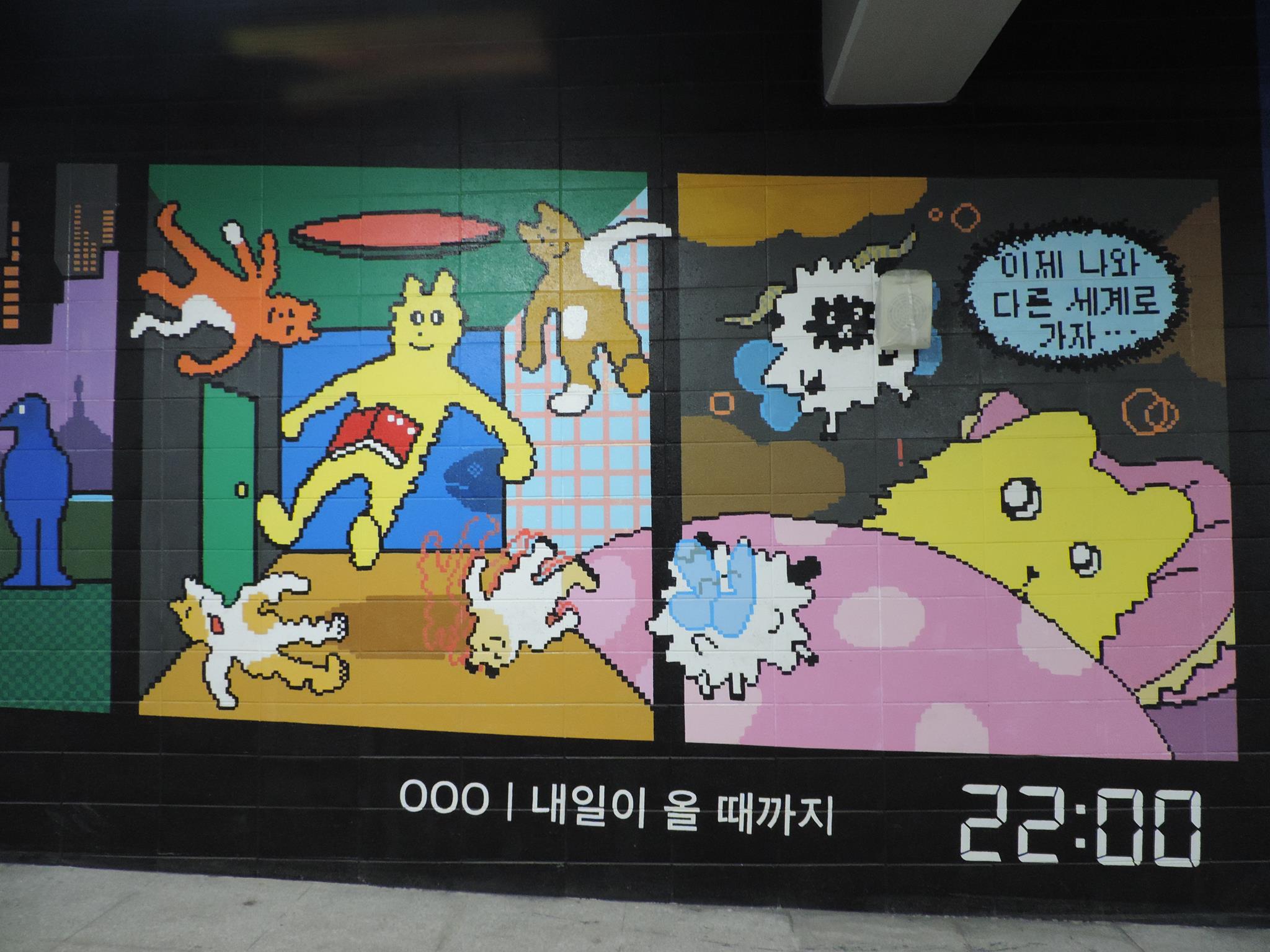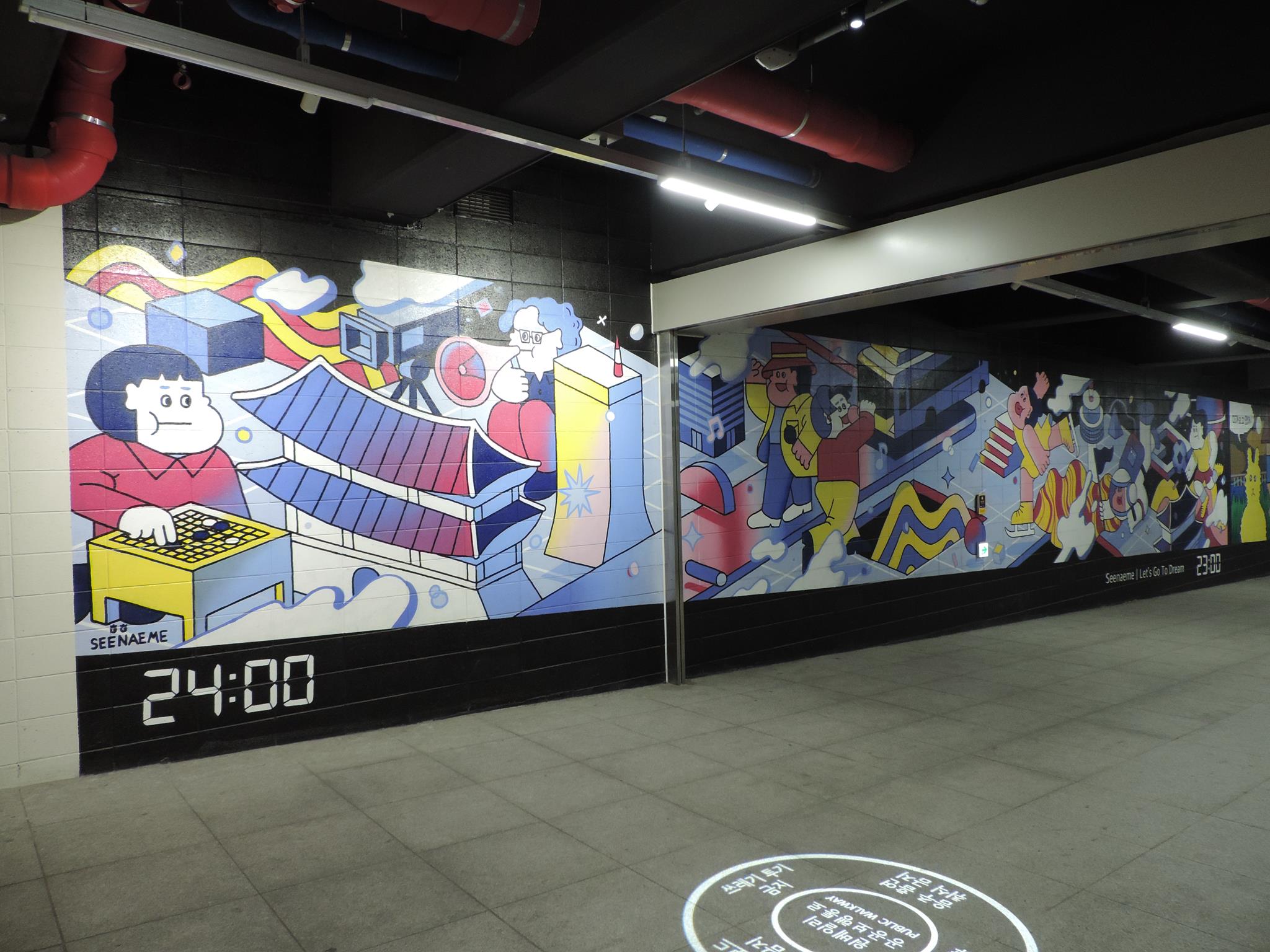 SOUTH KOREA: Seoul – GoTo Mall – Underground Urban Art – 24 Hours Project – Raemian One Bailey Streetart Gallery
