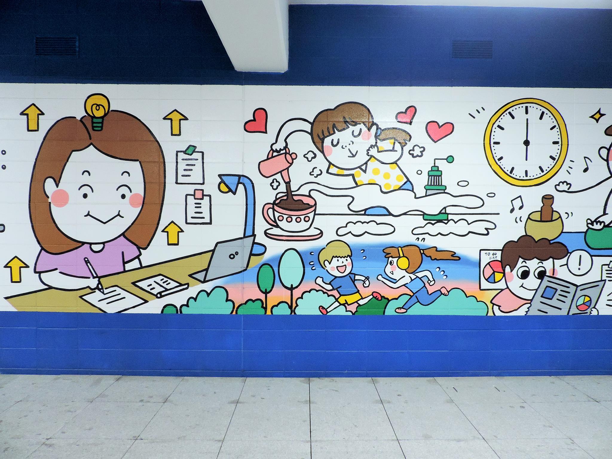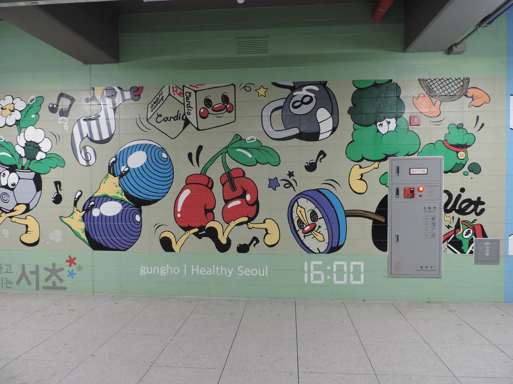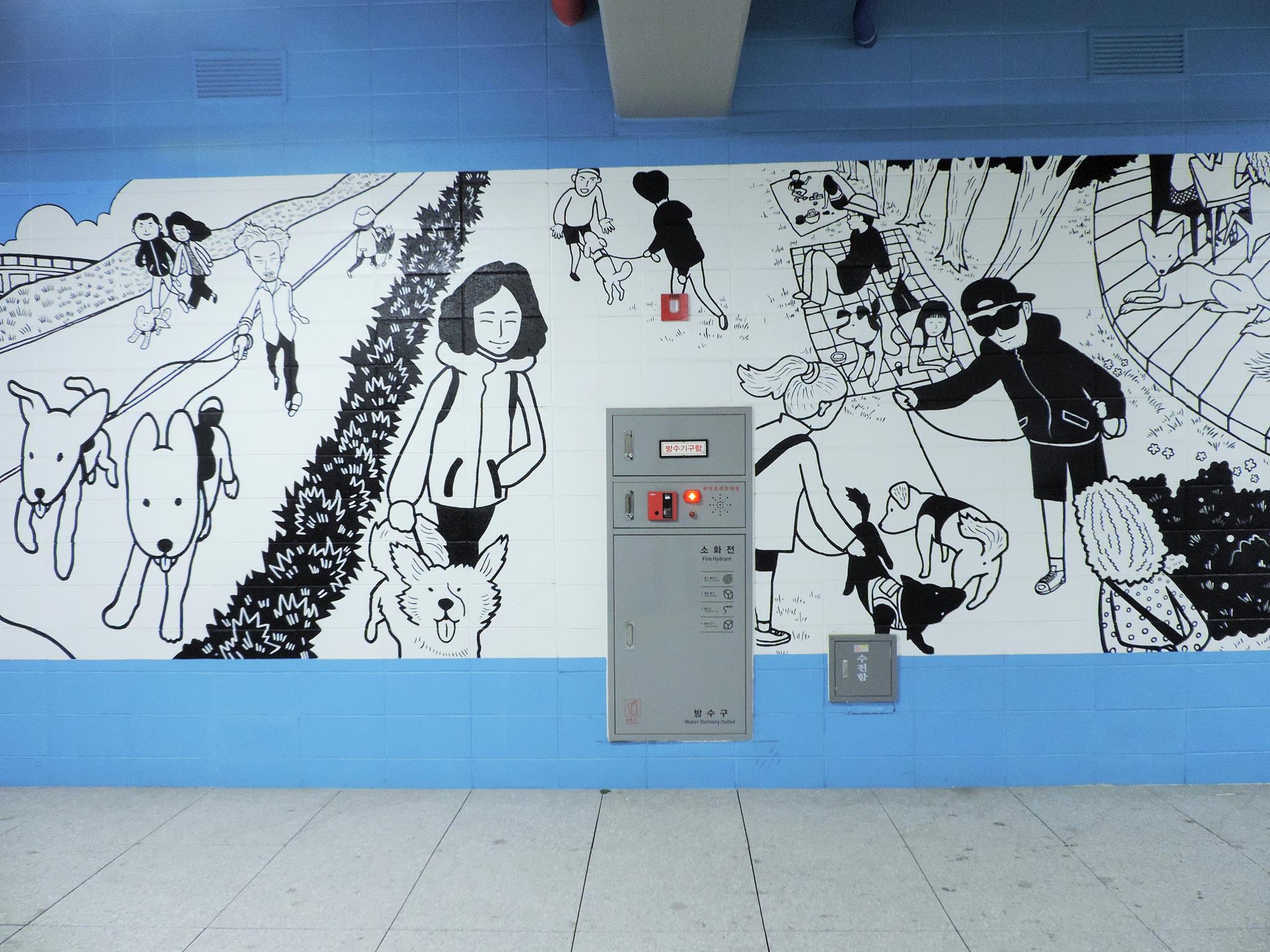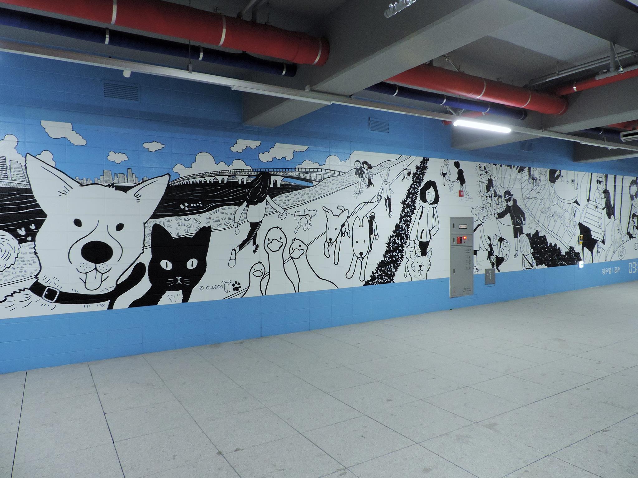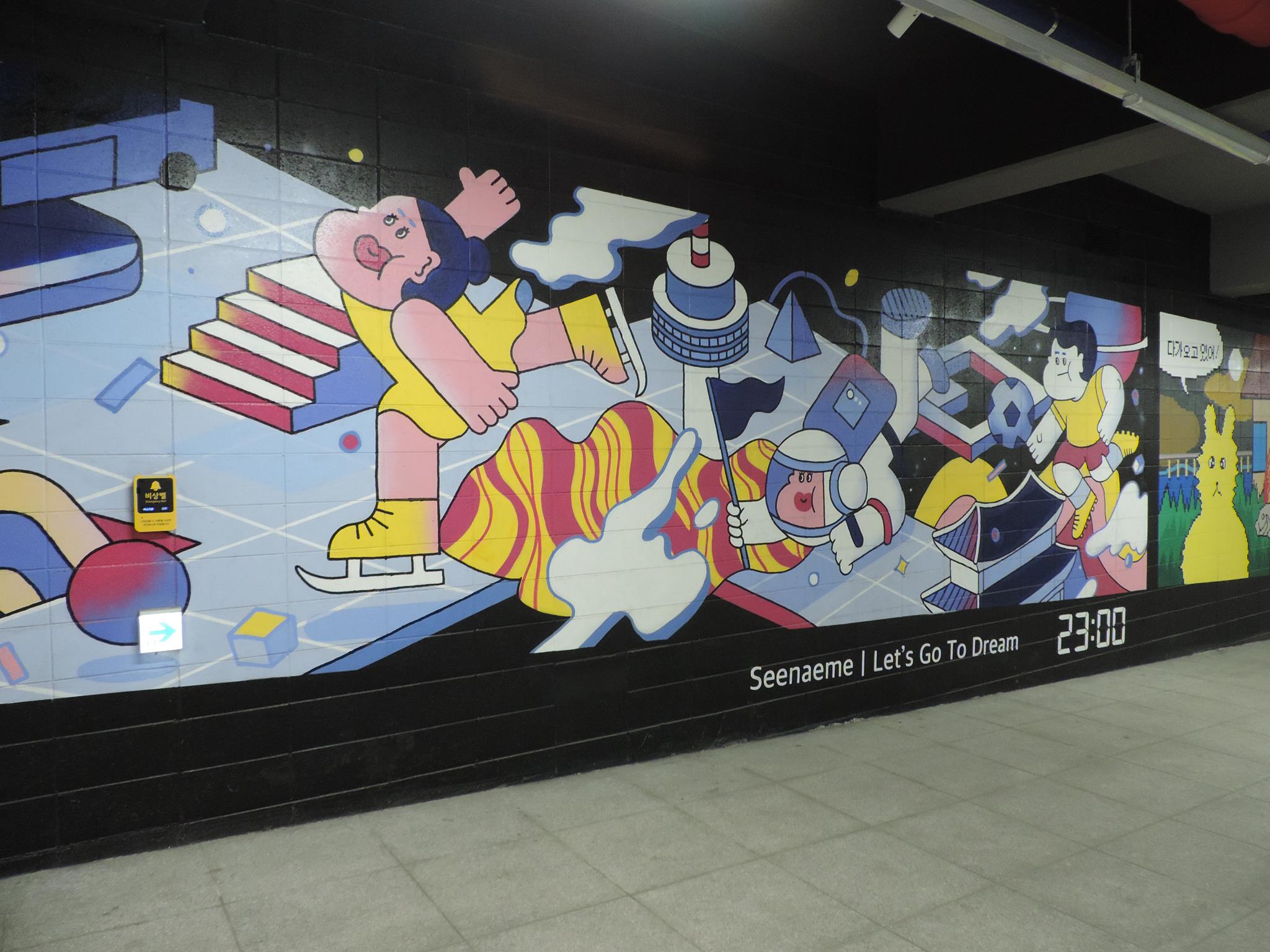 SOUTH KOREA: Seoul – GoTo Mall – Underground Urban Art – 24 Hours Project – Raemian One Bailey Streetart Gallery