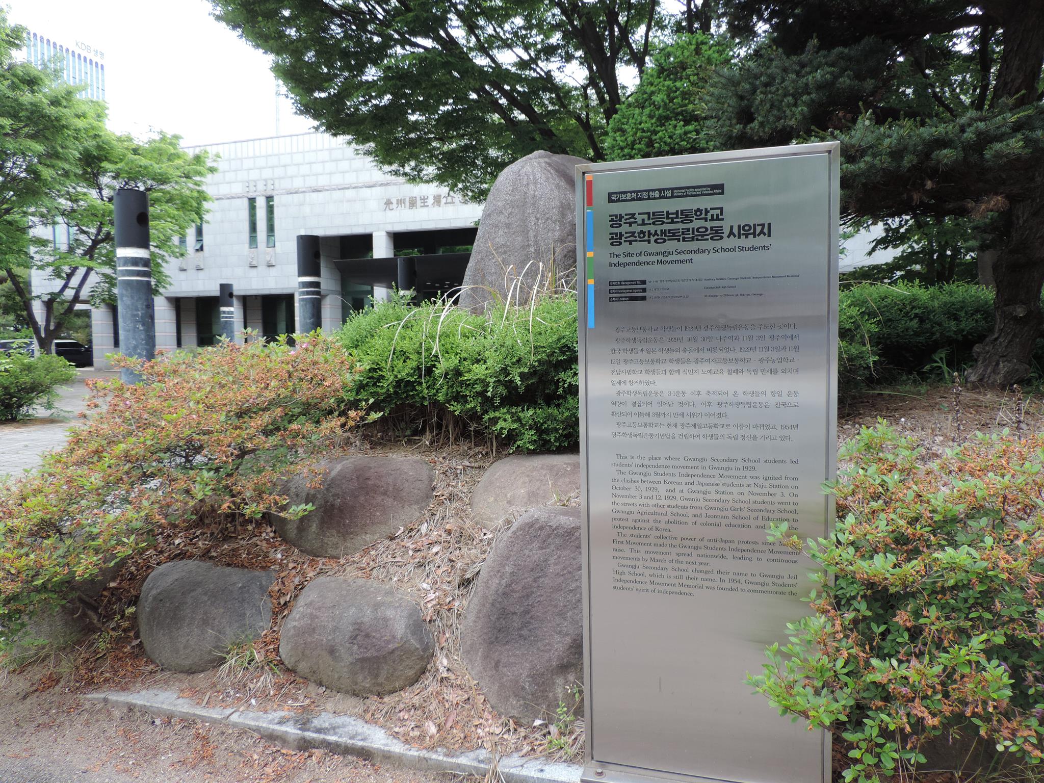 This is the place where Gwangju Secondary School students led the students‘ independence movement in Gwangju in 1929. The Gwangju Students Independence Movement was ignited from the clashes between Korean and Japanese students at Naju Station on October 30th in 1929, and at Gwangju Station on November 3rd. On November 3rd and 12th in 1929, Gwanju Secondary School students went to the streets with other students from Gwangju Girls‘ Secondary School, Gwangju Agricultural School, and Jeonnam School of Education to protest against the abolition of colonial education and st independence of Korea. The students‘ collective power of anti-Japan protests since Marc First Movement made the Gwangju Students Independence Movement raise. This movement spread nationwide, leading to continuous movements by March of the next year. Gwangju Secondary School changed their name to Gwangju Jeil High School, which is still their name. In 1954, Gwangju Students‘ Independence Movement Memorial was founded to commemorate the students‘ spirit of independence.