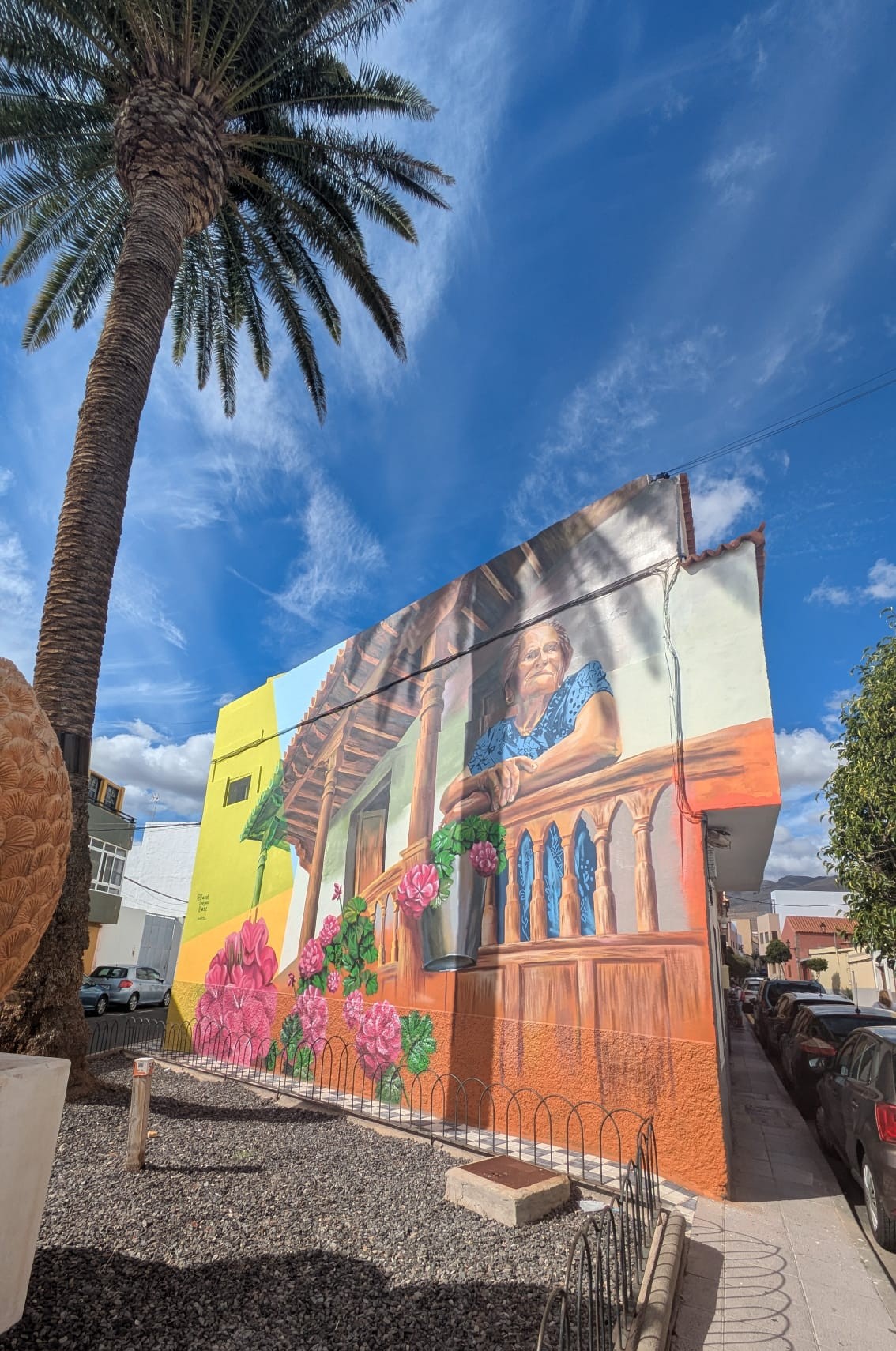 Agüimes is a historic town in the east of the Spanish island of Gran Canaria, founded in 1491 as a bishopric and with around 33.000 inhabitants today. It is known for its well-preserved architecture and as the cultural center of the region. Worth seeing are the historic old town with its numerous sculptures, the monumental Parroquia de San Sebastián church from the Classicist period, and the nearby Barranco de Guayadeque gorge with its inhabited cave houses and cave restaurants. Beautiful nature and erosion landscapes can be found in the Barranco de Las Vacas, which is often compared to Antelope Canyon due to its rock formations. And of course, there are also fantastic works of art in the urban space!