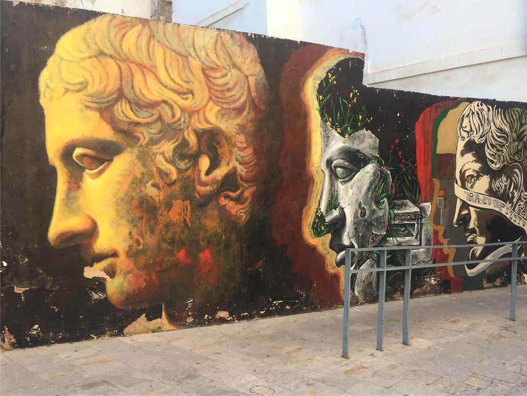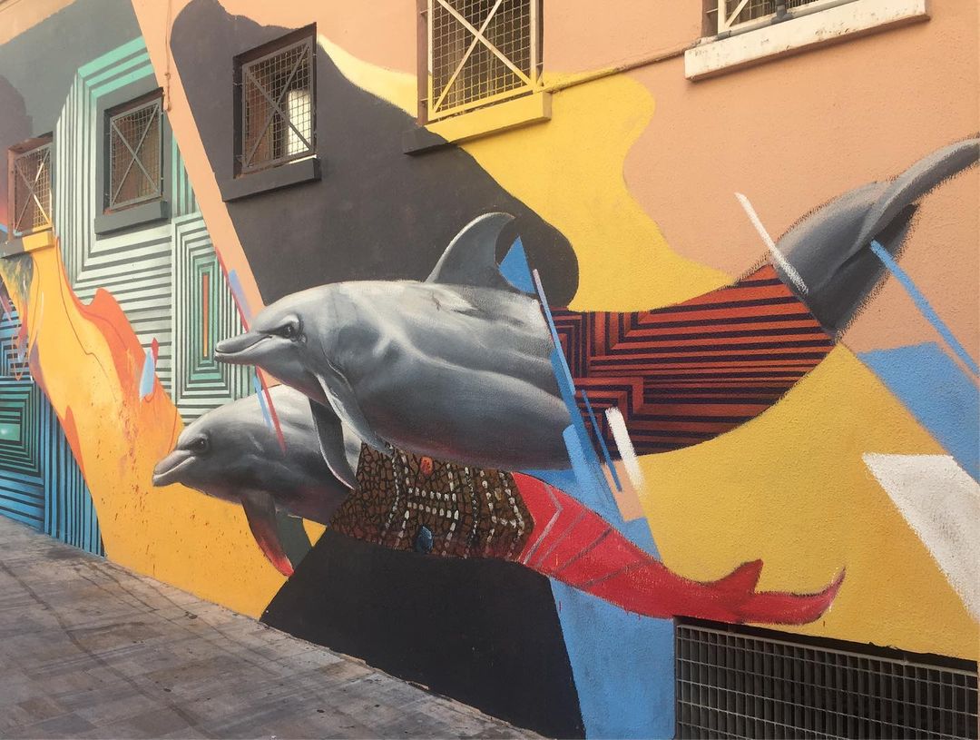 Cartagena is a port city with around 215,000 inhabitants and is located in the region of Murcia in south-eastern Spain. Worth seeing are the historic old town, which dates back to its foundation by the Carthaginians around 220 BC and a variety of historic buildings such as the second largest Roman theater on the Iberian Peninsula from the 1st century BC, the Casa de la Fortuna, which is decorated with colorful murals and mosaics, or the imposing town hall by architect Tomás Rico from 1907. The panoramic view from the castle hill is recommended as well, but there are also numerous gems of urban art in the streets. Especially during the great MUCHO MAS MAYO arts festival various events of different genres take place throughout the city, also every year new murals get created on the walls. The event is organized by the city council’s and youth departments and curated withe the help of local artist KRASER. These photos were taken by the world explorers Thomas Adventurer and Diana Beekvelt, also known as NOMADS ON WHEELS and they have been traveling around Spain with their VW LT28 van at that time. Here are the artworks they found in Cartagena.
