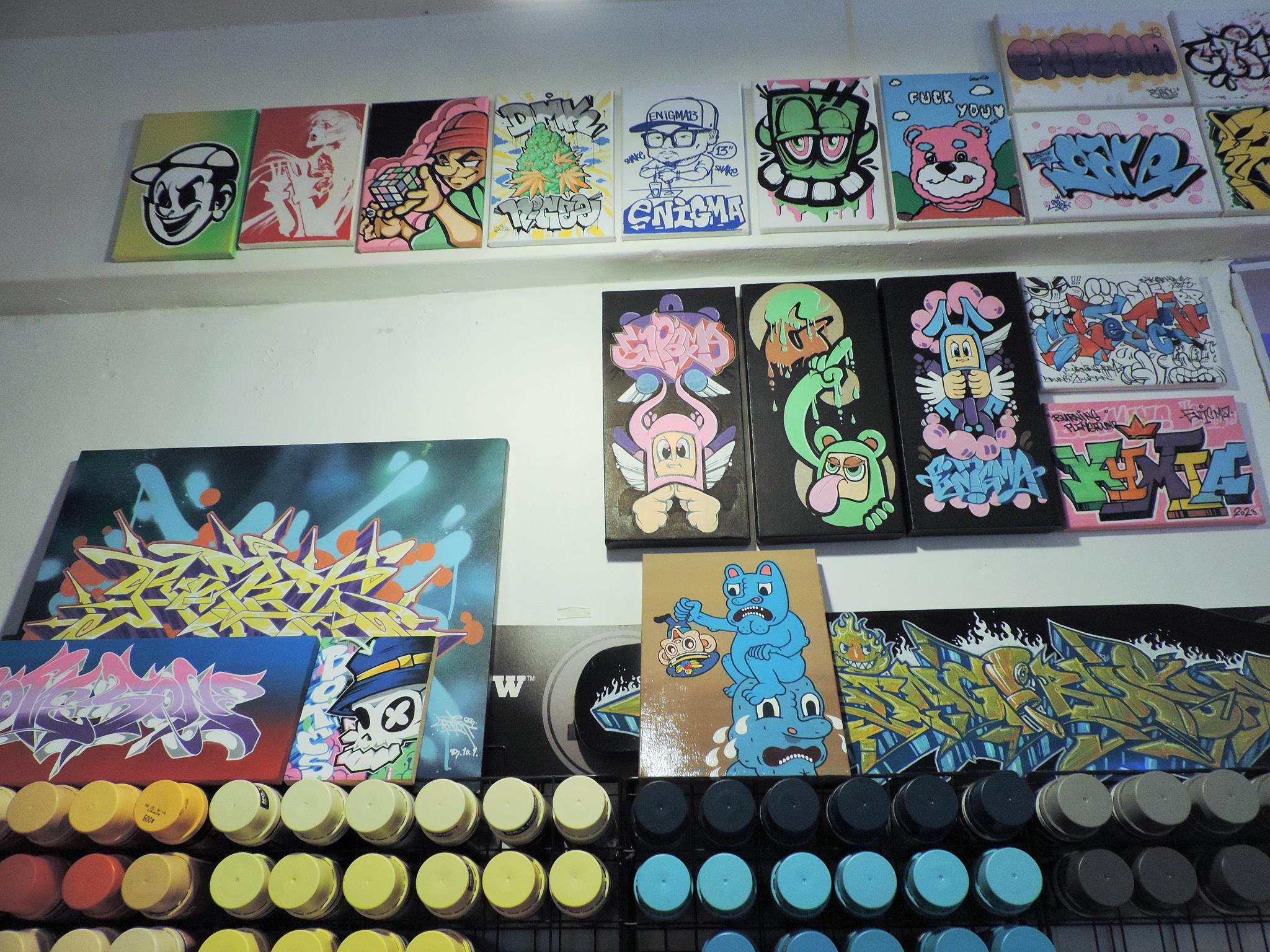 Tell us a bit more about the product range. You don’t just have spray cans, but also a lot of equipment and everything related to graffiti. You have books and magazines, as well as a collection of artwork by well-known writers.