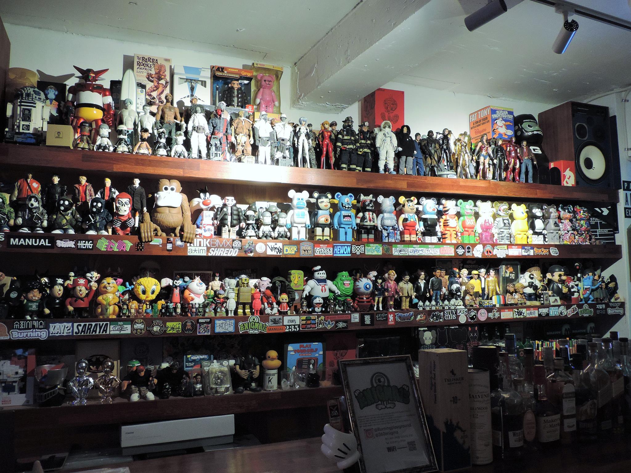I started collecting figures at the same time when I also started doing graffiti. Figures have had a lot of inspiration and influence on my style of drawing, and I exhibit and sell figures designed by various figure artists. However, only a small portion of the figures are for sale.