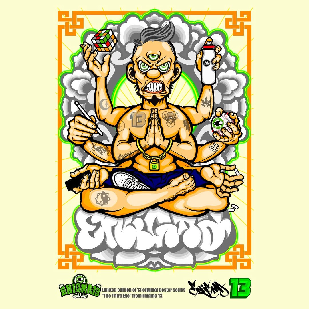Enigma means mystery and 13 means the first step into a new world. I just made up the meaning on my own and combined the name with the number. In some characters you can see the third eye, which can be seen as my signature. As I try to combine it in various forms, I get a lot of inspiration from religion, culture, and ancient murals. I also get a lot of inspiration from figures. I study another world that transcends reality and ideals.