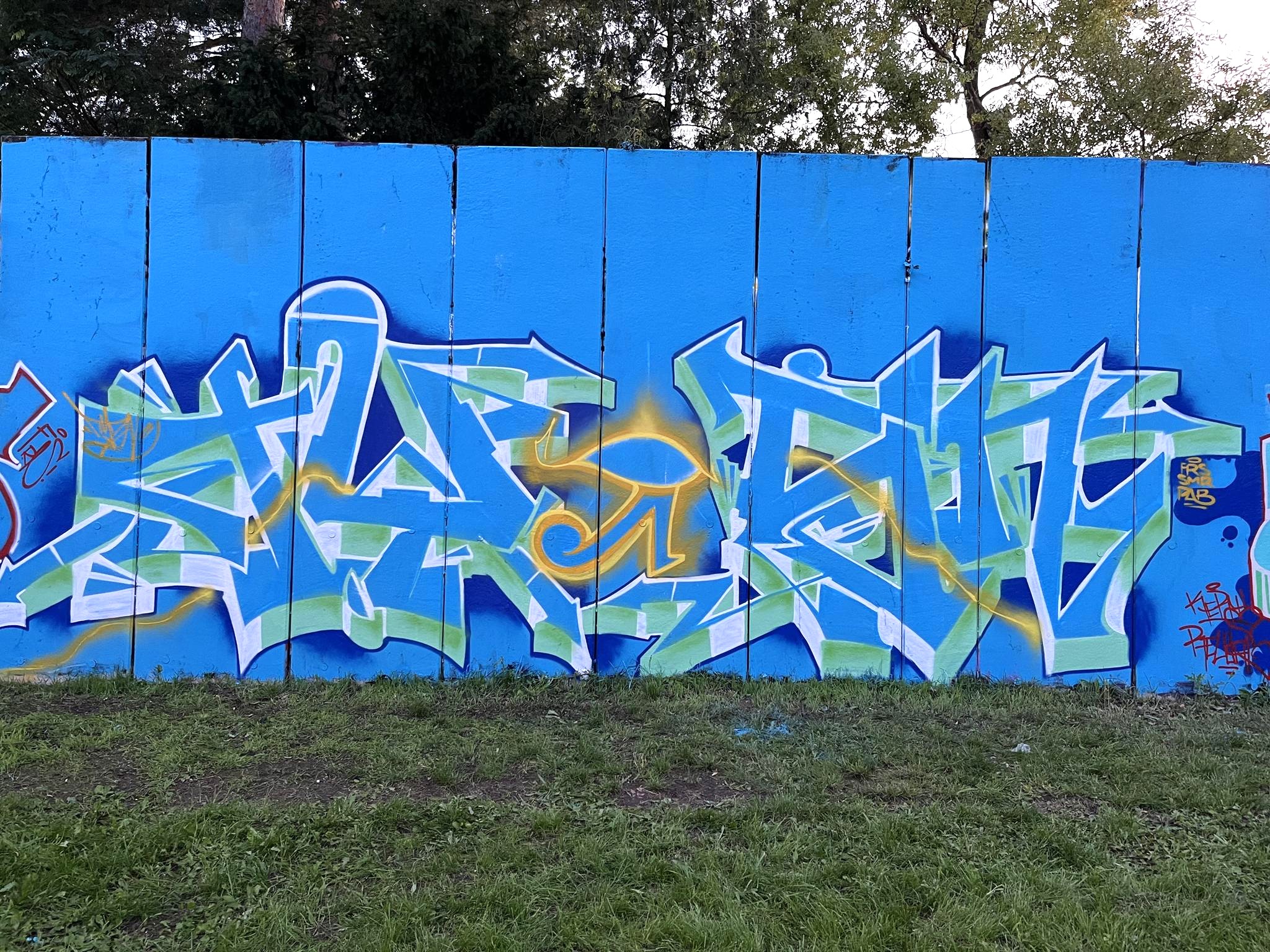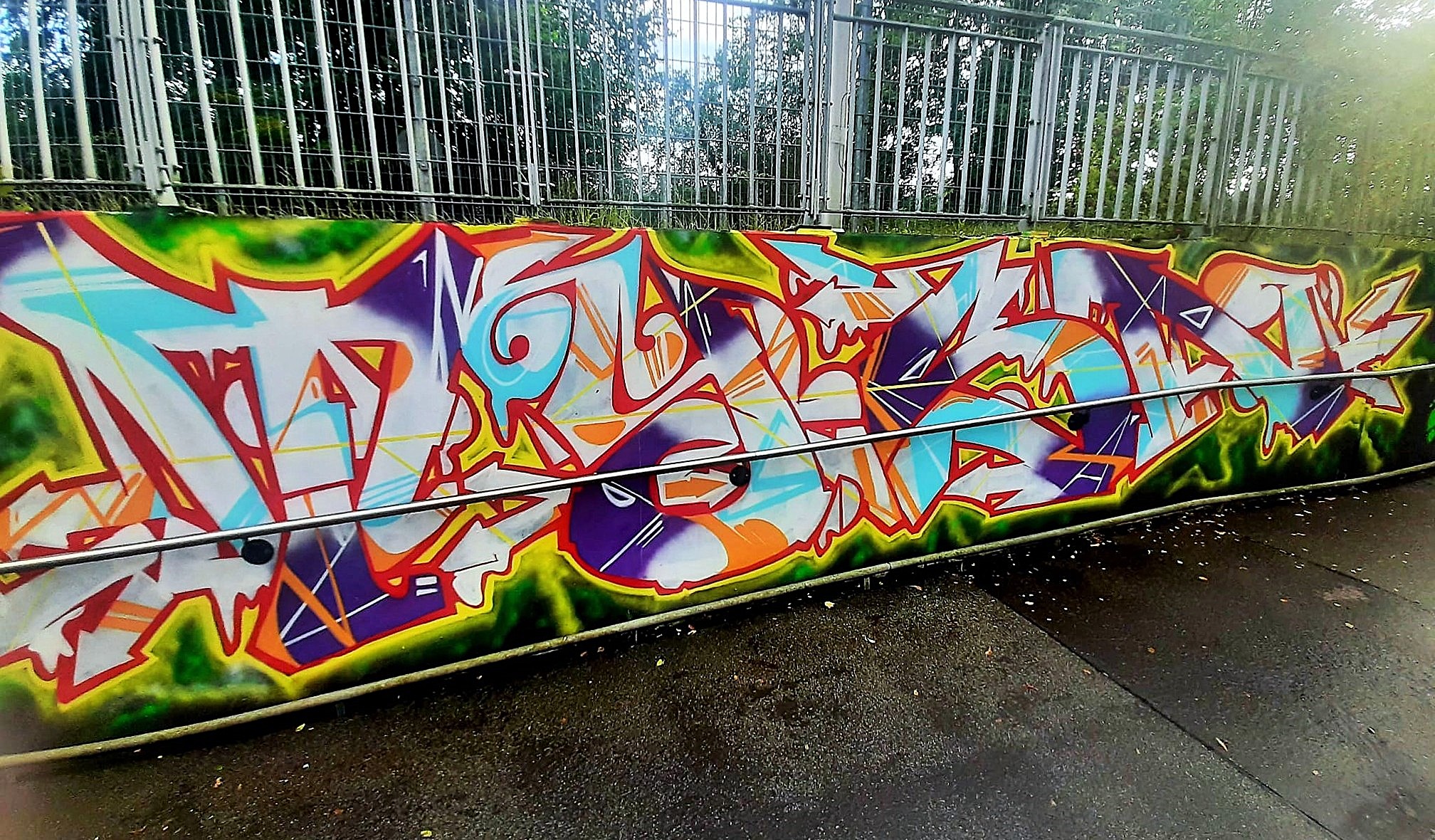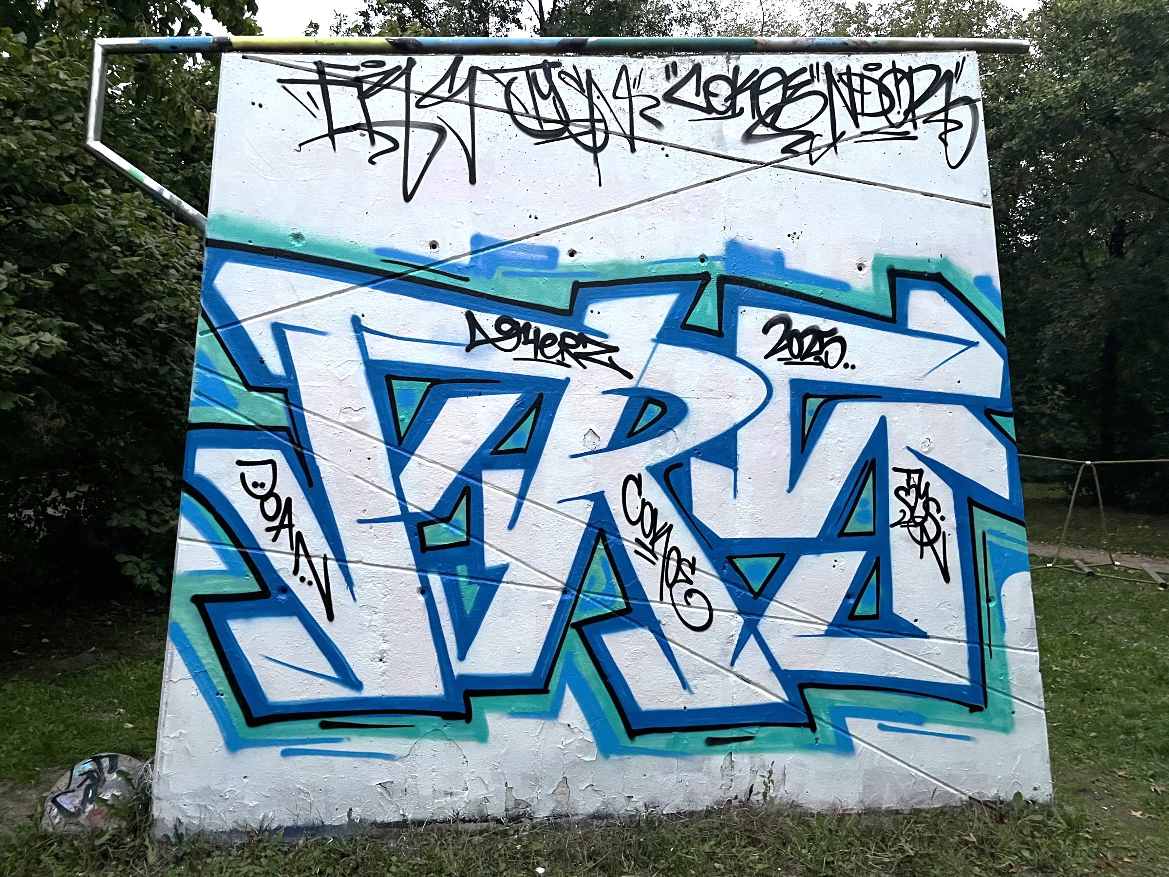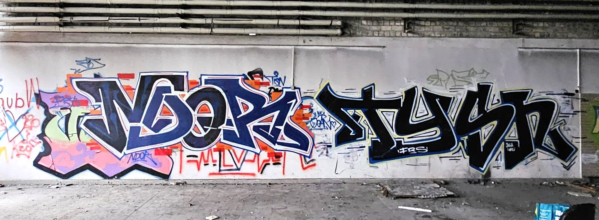 At the Neuenhagen S-Bahn station, we decorated the station with graffiti as part of an art project organized by the youth center Jugendwerkstatt Neuenhagen. The project was financed by the city of Neuenhagen and implemented as a non-profit initiative with the aim of enhancing public spaces and making the city more visually appealing. For me, it was an incredibly positive experience – it was a lot of fun and just felt really good to be part of something meaningful. There were many sprayers from different backgrounds on site, which made the exchange particularly exciting. Making contacts, inspiring each other, and coming together again – that’s what makes projects like this so special to me. We regularly carry out charitable work like this because we believe that graffiti and street art can make cities more vibrant and human.