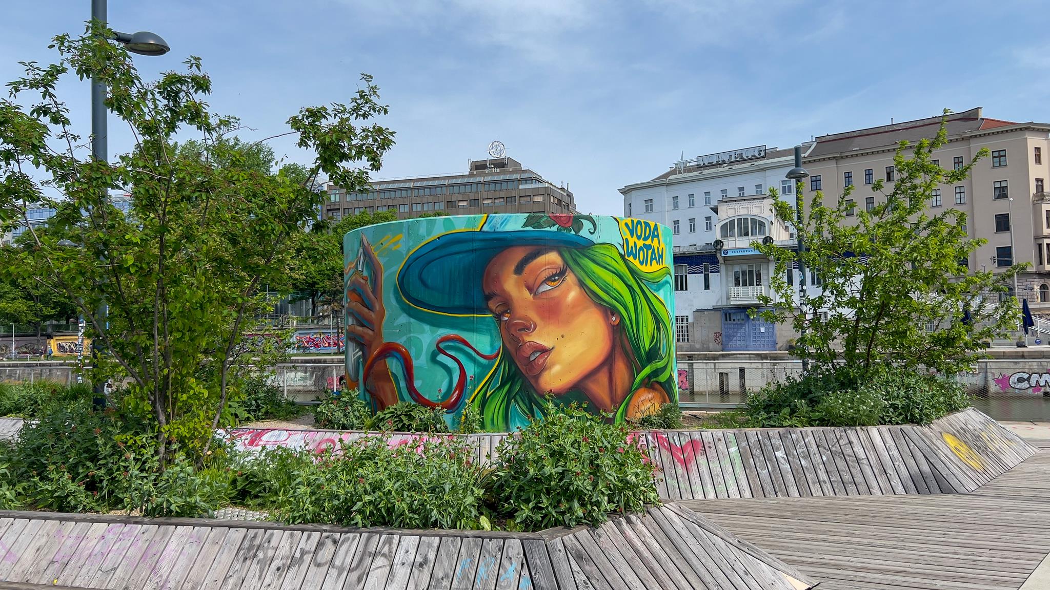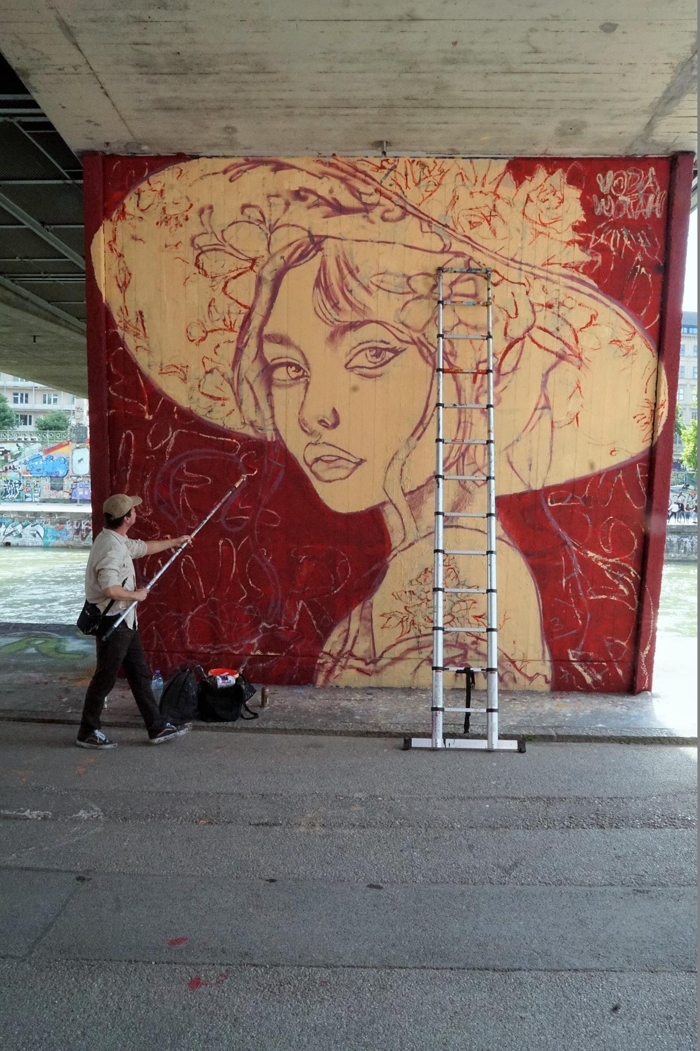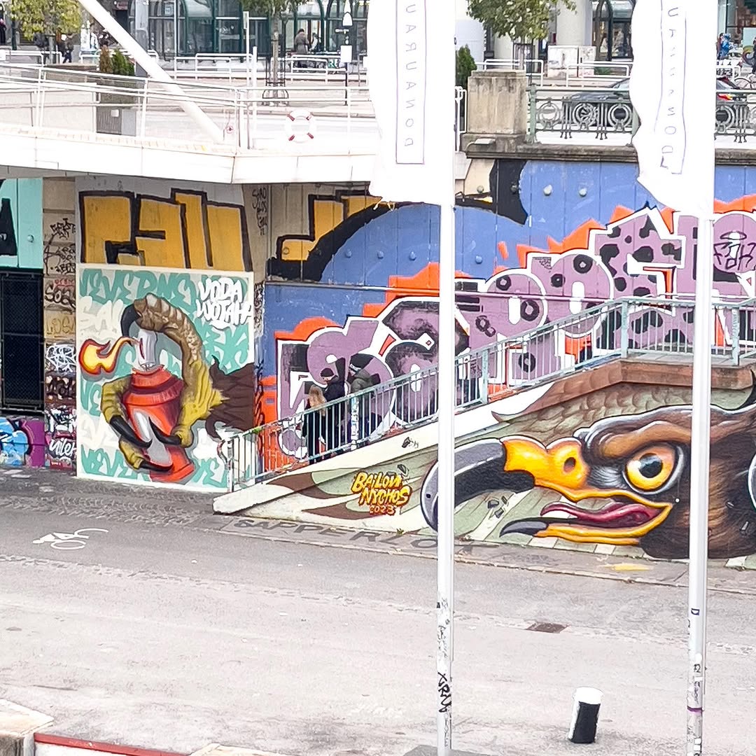 Tell us a bit more about Vienna. Where do you like to paint there and where else can people see your work besides the murals? You are certainly often at the famous Hall on the Danube Canal, aren’t you?