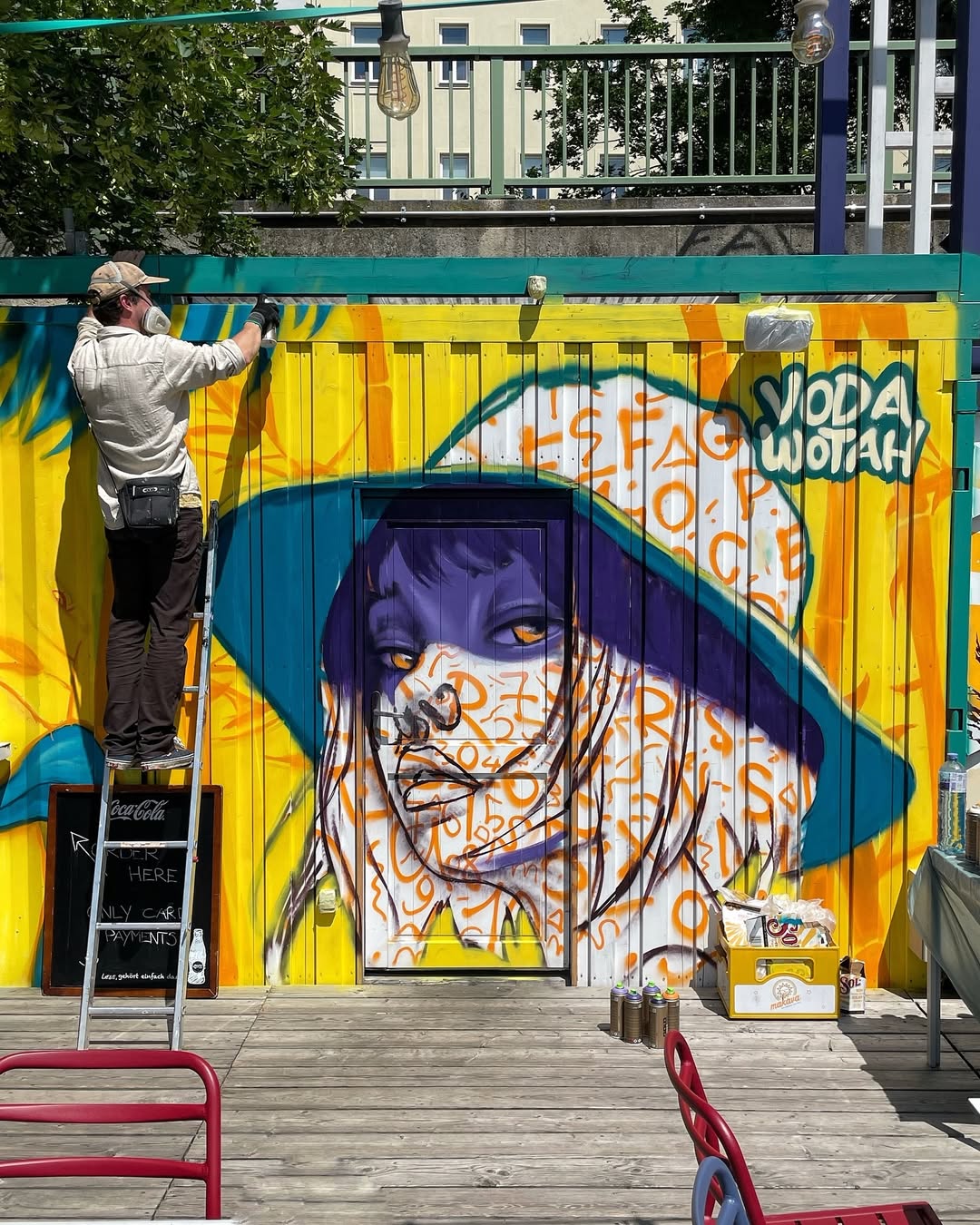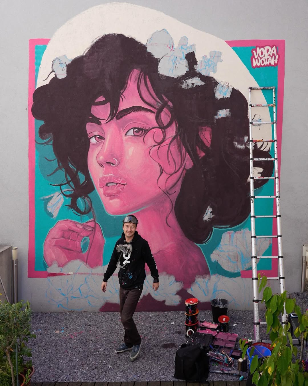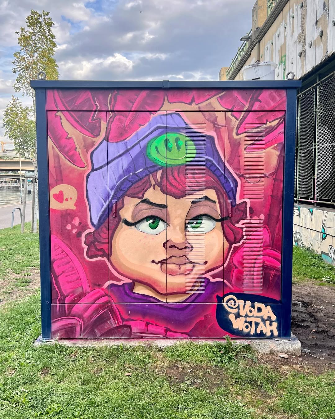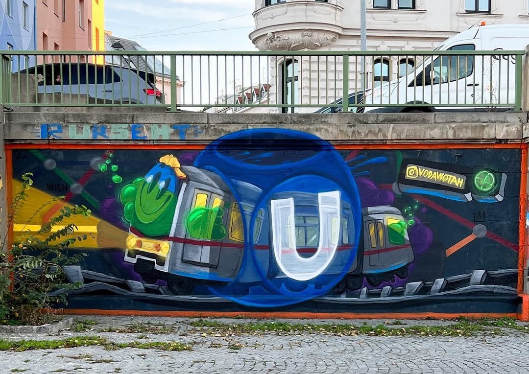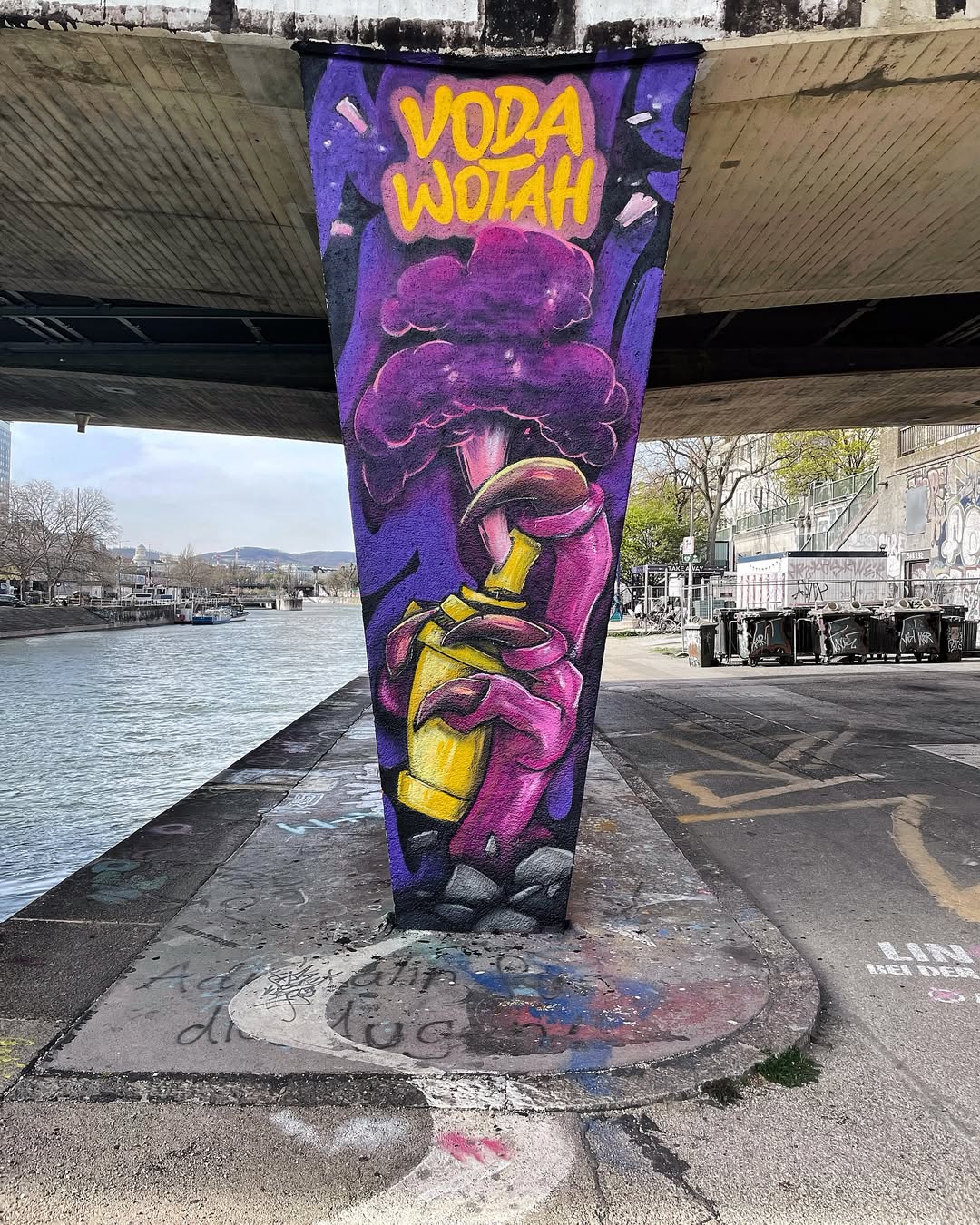 The artist MARTIN IVANOV, better known as VODAWOTAH, started with graffiti and streetart in 2008 in the Bulgarian city of Ruse. Meanwhile he lives in Vienna, Austria, where he regularly paints magnificent works on the Danube Canal and huge murals around the city or abroad. The colorful hobby has become a profession and he creates extensive commissioned works, but of course also continues to spray as a passion funtime. His fantastic works often feature comic style portraits, but also animal like characters or lively spray cans.