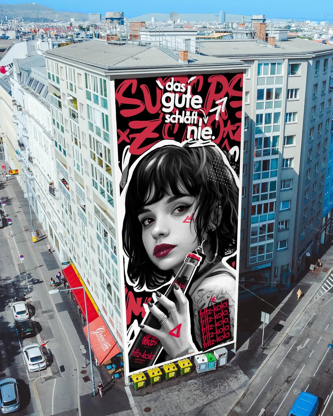 At the moment, I am just working project by project, focusing on each piece as it comes. But in the future, I am thinking about opening an out-of-home advertising agency. I believe that the mix of my street art style with my graphic design background creates something unique, and it can definitely be beneficial for many brands. Of course, I also have ideas for new large murals, and I am always looking forward to the next big wall to bring those concepts to life.