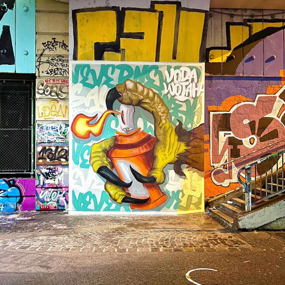 Over the years, my passion for graffiti and street art naturally evolved into a professional path. What started with curiosity and experimentation in the streets of Ruse eventually led me to study Graphic Design and Visual Communication, which helped me refine my visual language. After moving to Vienna, I began merging street art with design, which opened doors to larger-scale projects and collaborations. Step by step, I built a network and started working with brands, agencies, and festivals, creating commercial murals that still carry my artistic identity. It’s been a journey of growth—transforming a personal passion into a creative profession with impact.