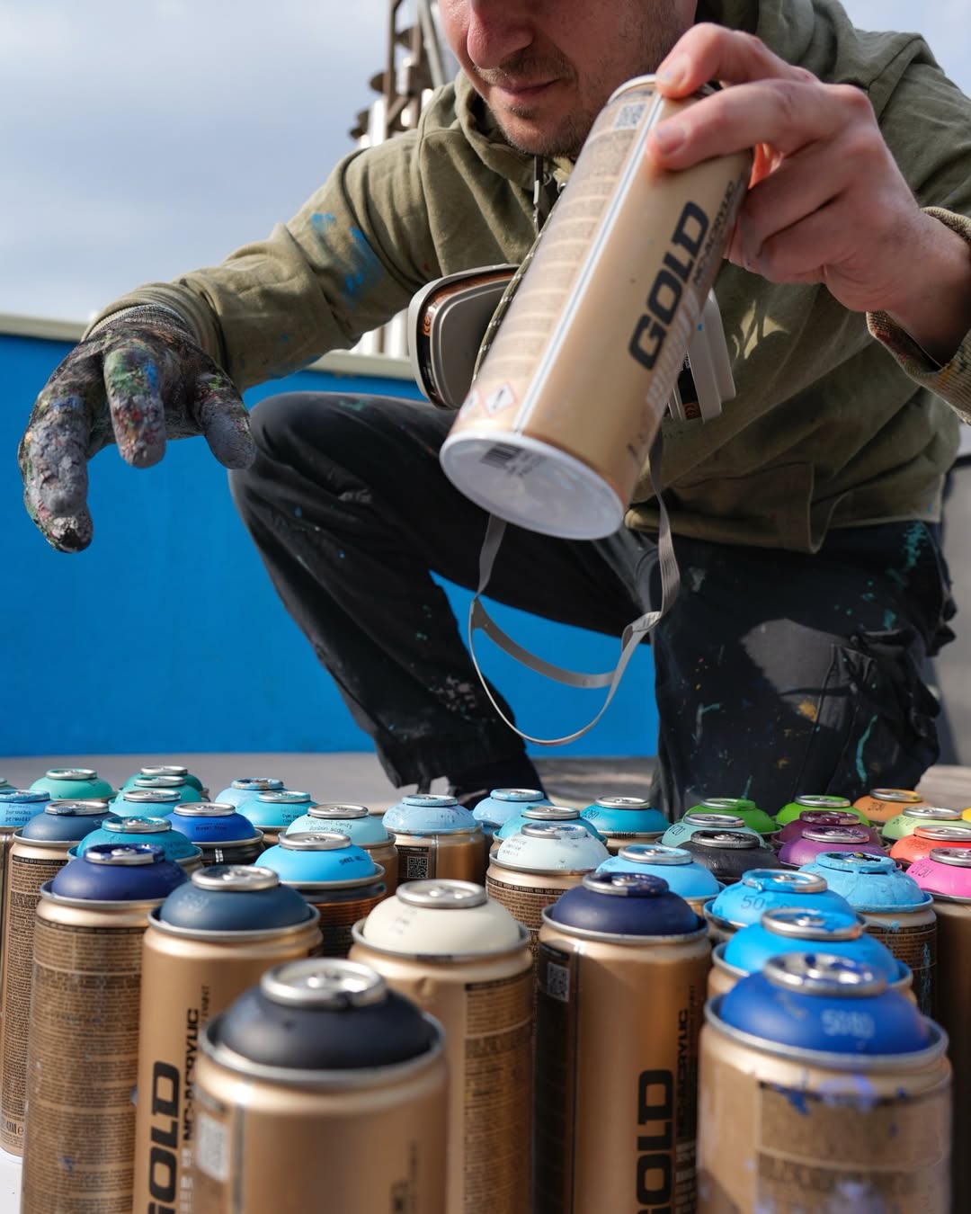 Your works you create are often in bold and bright colors, also they often radiate something warm and positive. Do you only paint with spray cans or do you also use other tools and colors? A large mural is certainly different to a smaller graffiti.