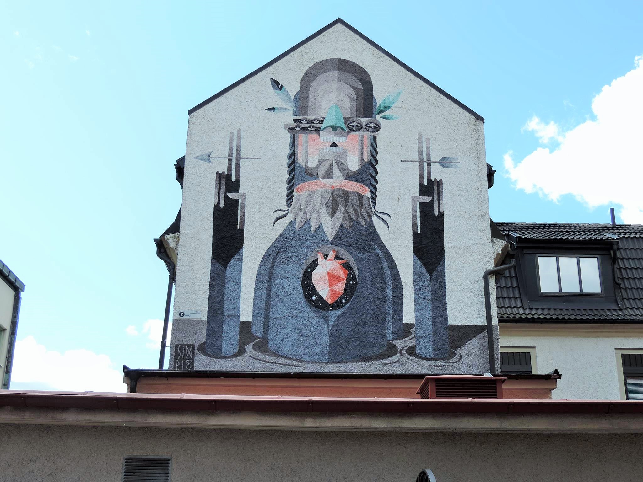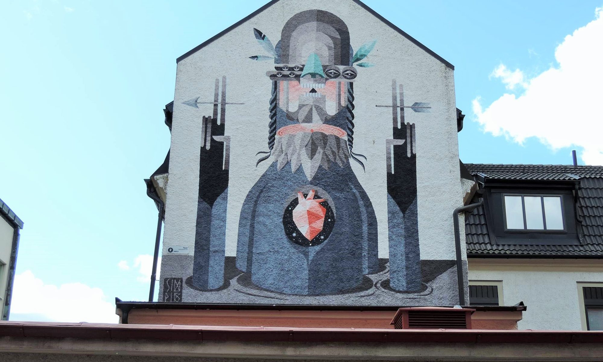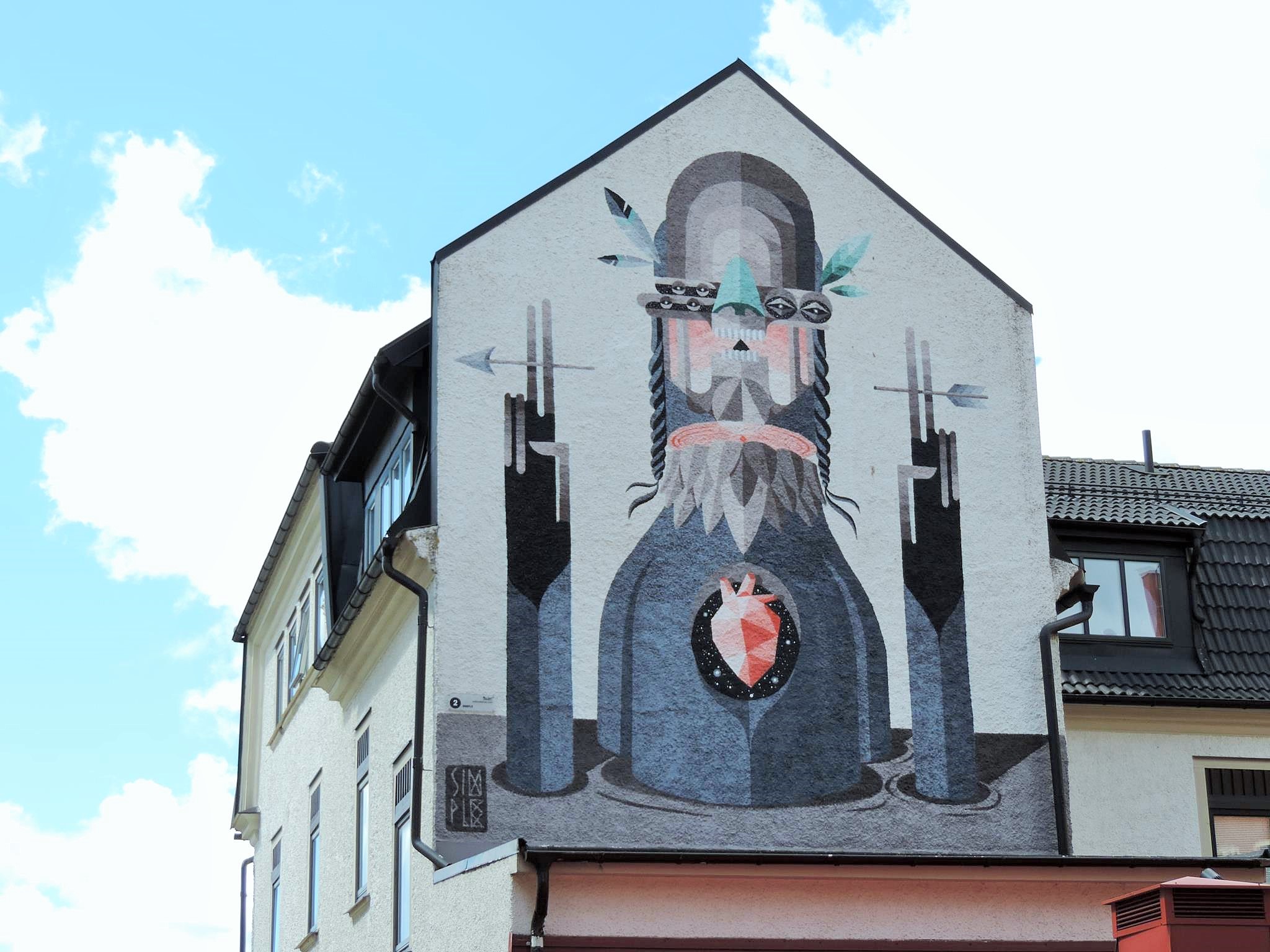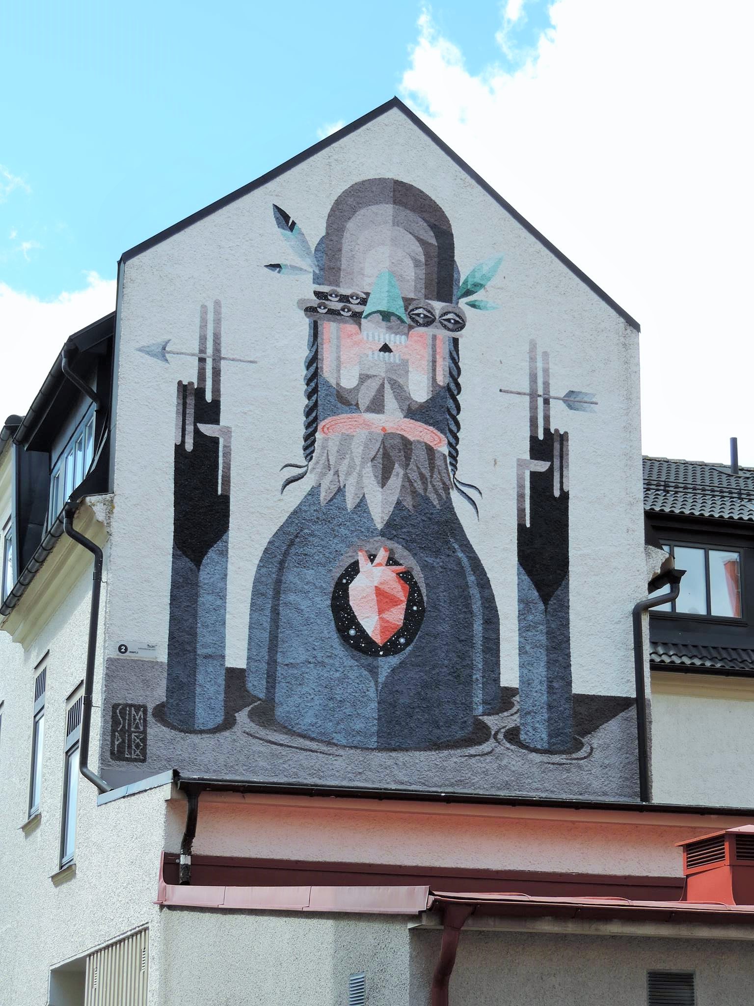 Street artist and illustrator SIMPLE describes himself as an „ordinary German guy“ living in Gothenburg. He lets his art be influenced by his surroundings. His technique is to mix distinct lines, surrealism and geometric figures, usually painted on chipboard and other leftover building materials, but also on large-scale facades. He exhibits all over the world, from Buenos Aires and Berlin to New York.
