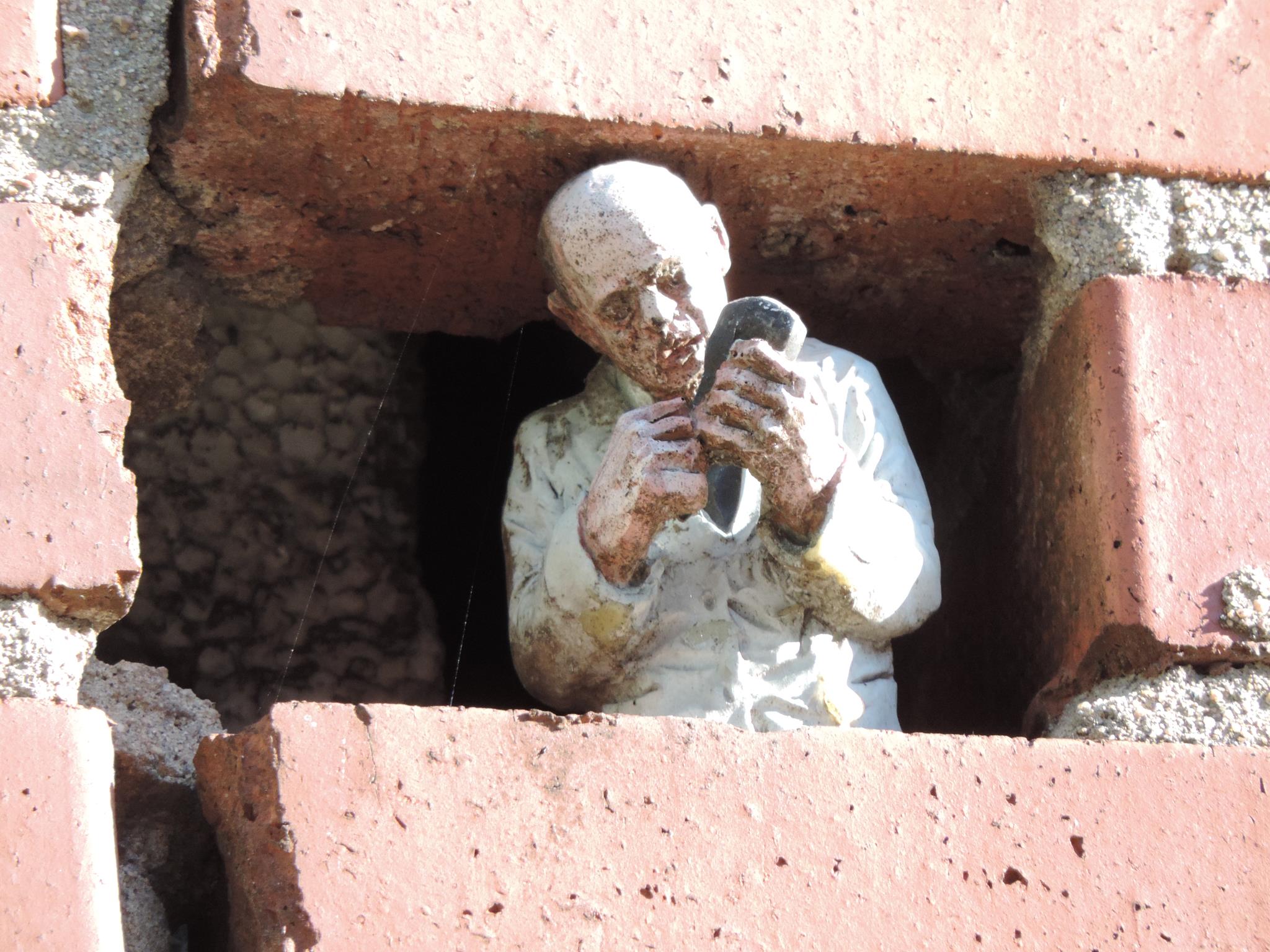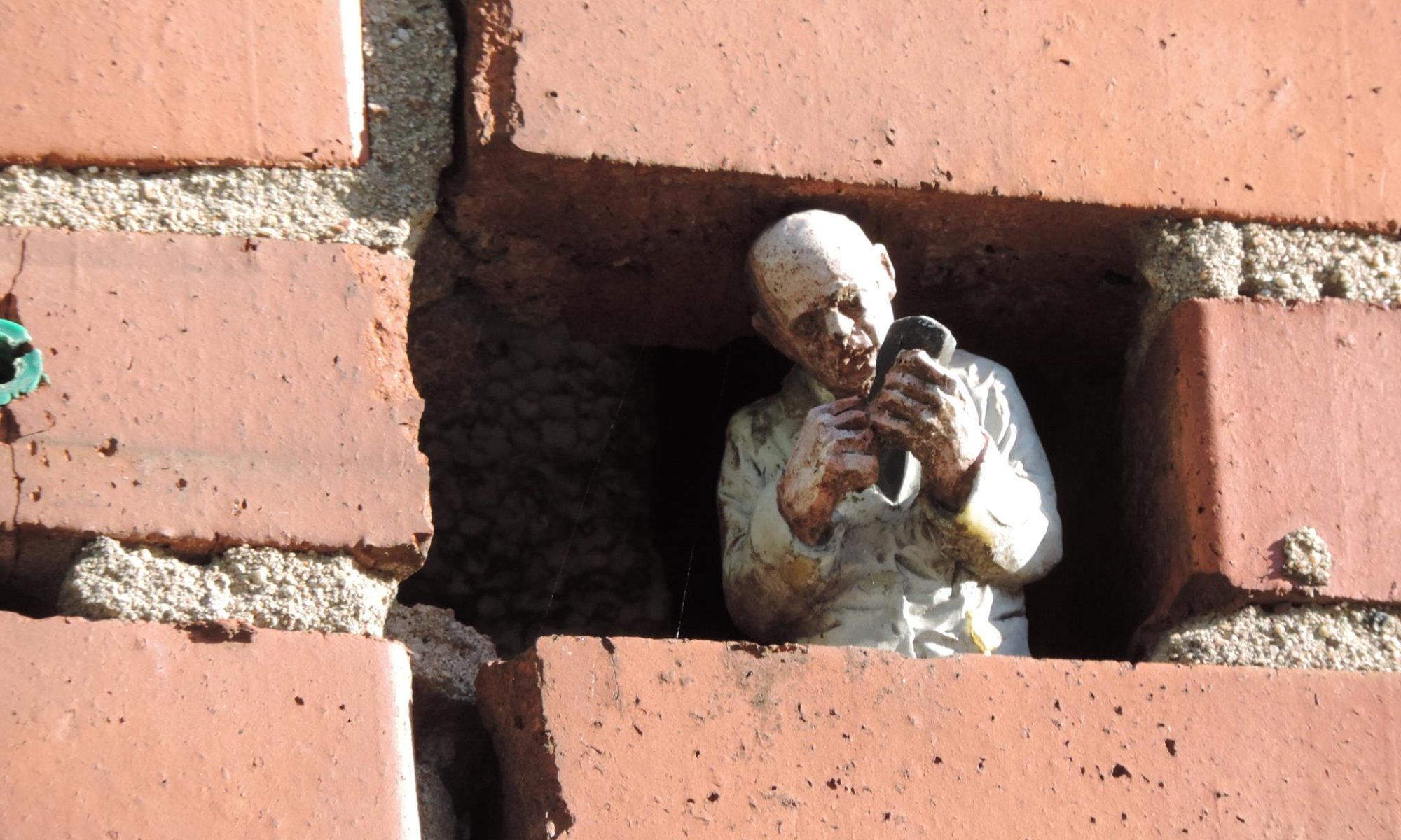 The Spanish artist ISAAC CORDAL creates small miniature sculptures of people in everyday situations, whether bored, frustrated, sad or happy. He places them in initially inconspicuous places, such as on unobtrusive walls and street corners in Borås. During our visit, we took a photo of one of the figures and struck up a conversation with a passer-by who has lived in the city for a long time and was totally fascinated by this figure, because although he has walked past this corner umpteen times, he hadn’t noticed it. So take a closer look at your surroundings, there is always something to discover. ISAAC CORDAL has created several small sculptures for the urban art festival NO LIMIT in 2014, others can be found at Allégatan 21, Lilla Brännerigatan 7, Österlånggatan 12 and Österlånggatan 15.