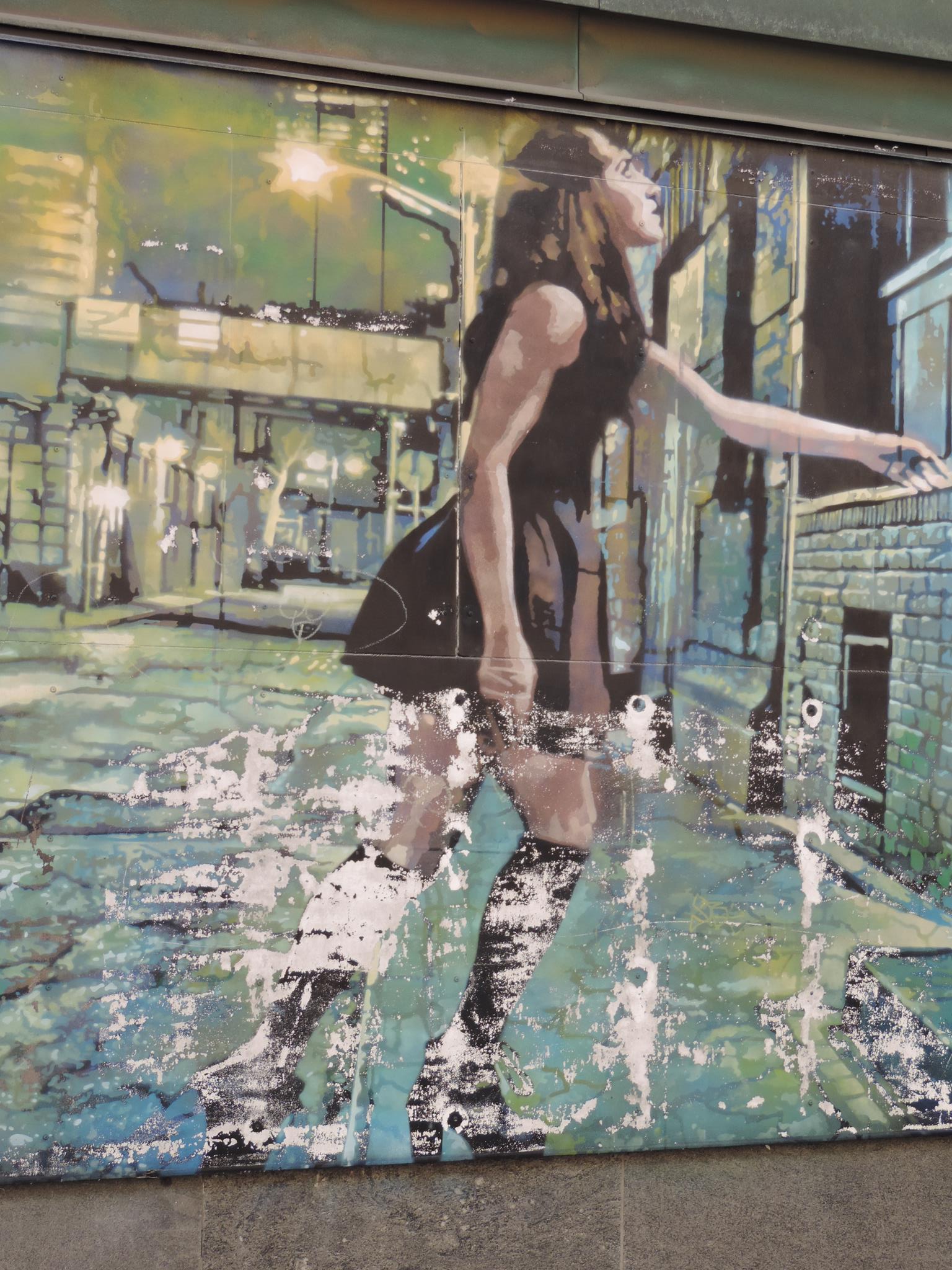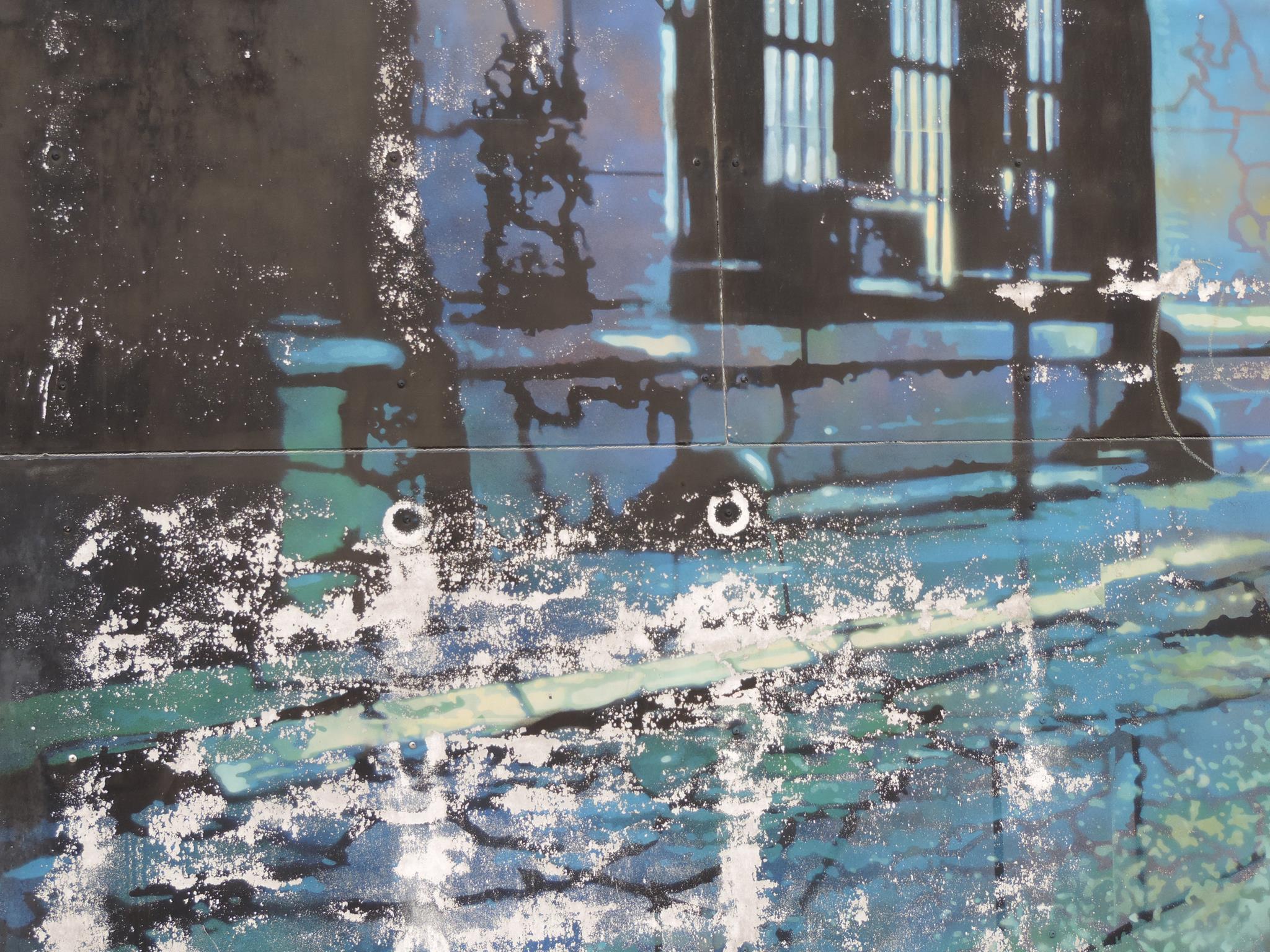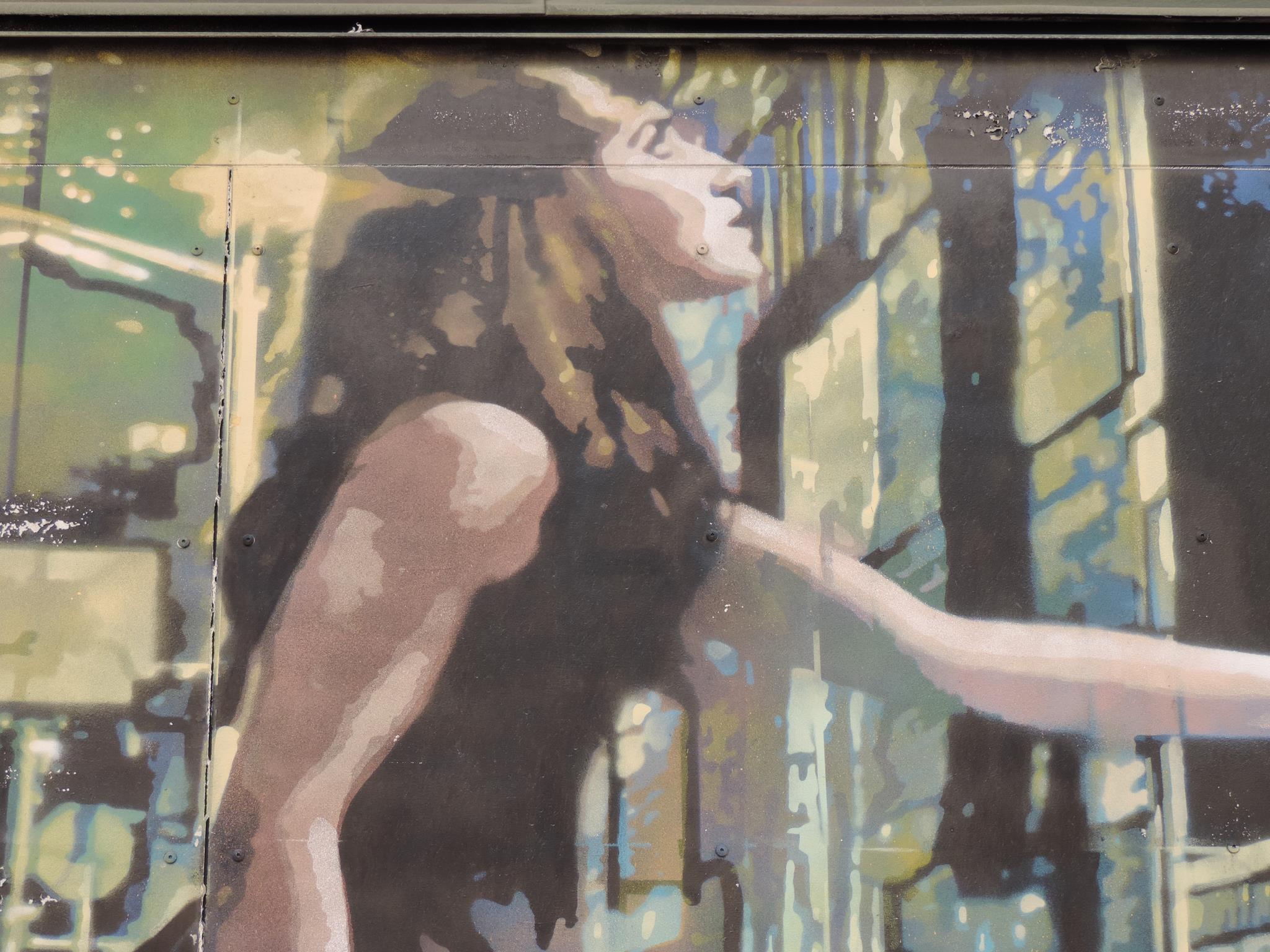 New York-based LOGAN HICKS is known for his photorealistic stencil paintings. The artist’s works are largely inspired by the environment around the site. With his masterful ability to approach light, he transforms ordinary architectural scenes into metaphorical and thoughtful images. For LOGAN HICKS, patterns are an extension of light, hiding reality in the same way that trees cast shadows on the forest floor. In the summer of 2024, the LOGAN HICKS mural was replaced by a new work created by THIAGO MARTINS DE MELO as part of Borås Art Biennial 2024.