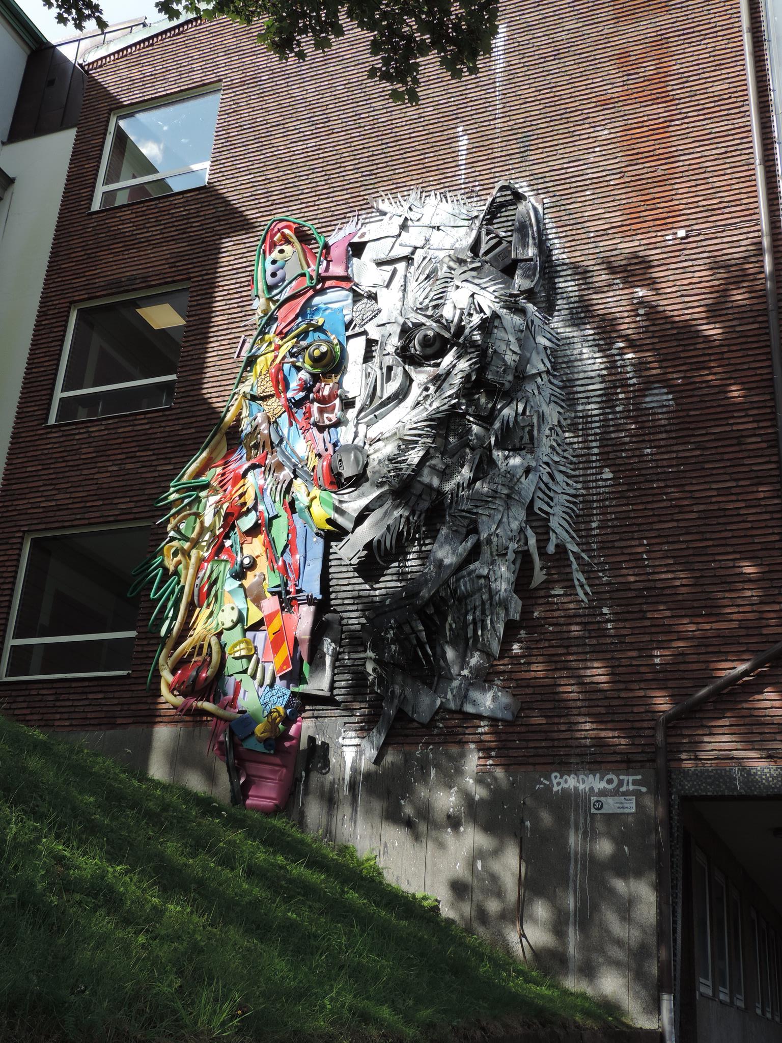 Artist ARTUR BORDALO, better known as BORDALO II, was born in 1987 in Lisbon. He spent his youth hanging out with illegal graffiti artists, but also watching his grandfather paint watercolors. The impressions of both worlds laid the foundation for his own art form. ‚Big Trash Animals‘ is a series of artworks that aim to draw attention to production waste, non-recycled materials, pollution and the overall impact on the planet. The works are built from used materials found in the wilderness, abandoned factories, random locations or through companies that have undergone a recycling process.
